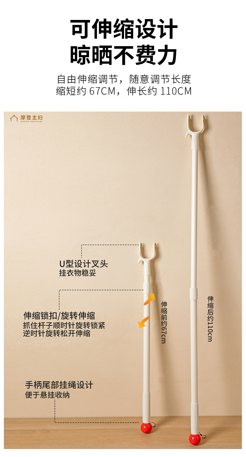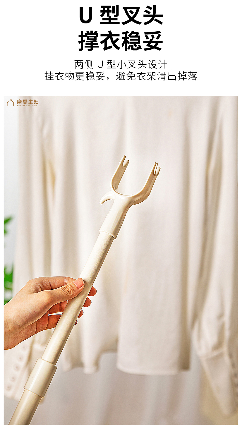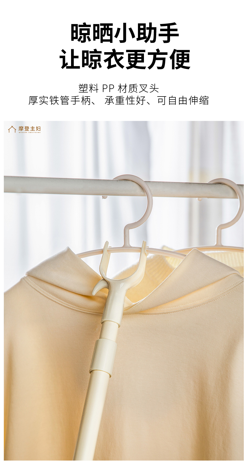 摩登主妇撑衣杆家用可自由伸缩晾衣杆叉丫晒挂取衣服加长款挑衣杆