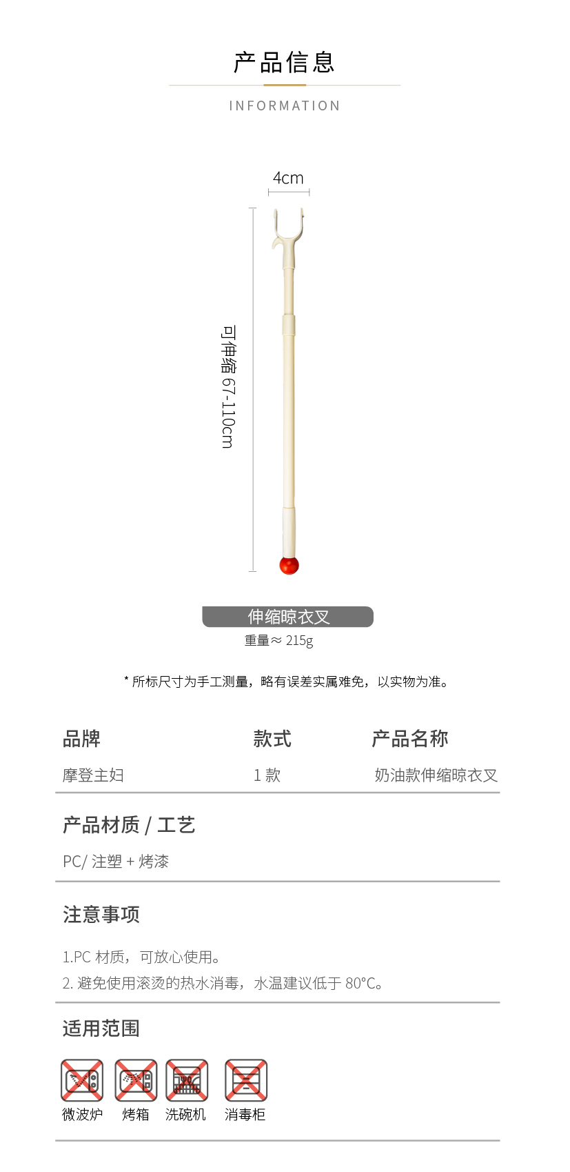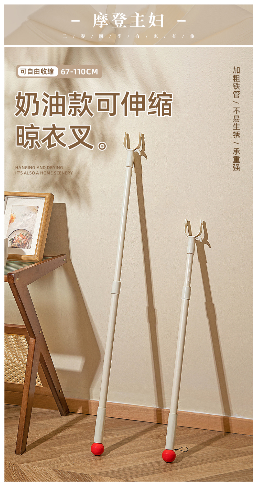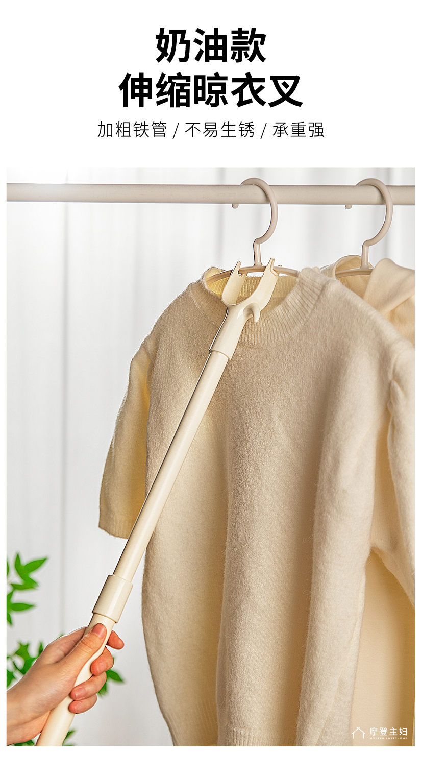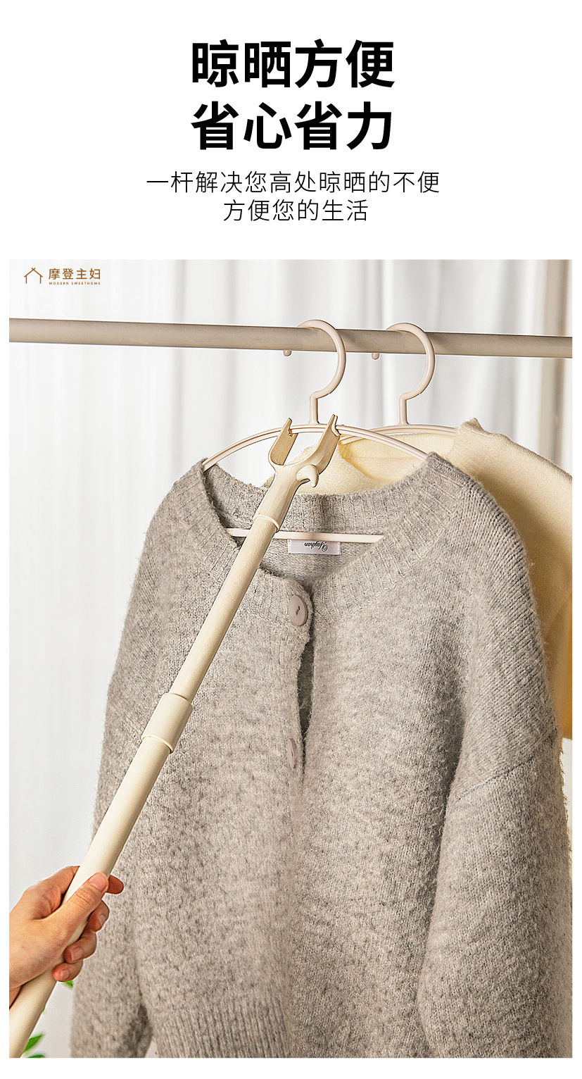 摩登主妇撑衣杆家用可自由伸缩晾衣杆叉丫晒挂取衣服加长款挑衣杆