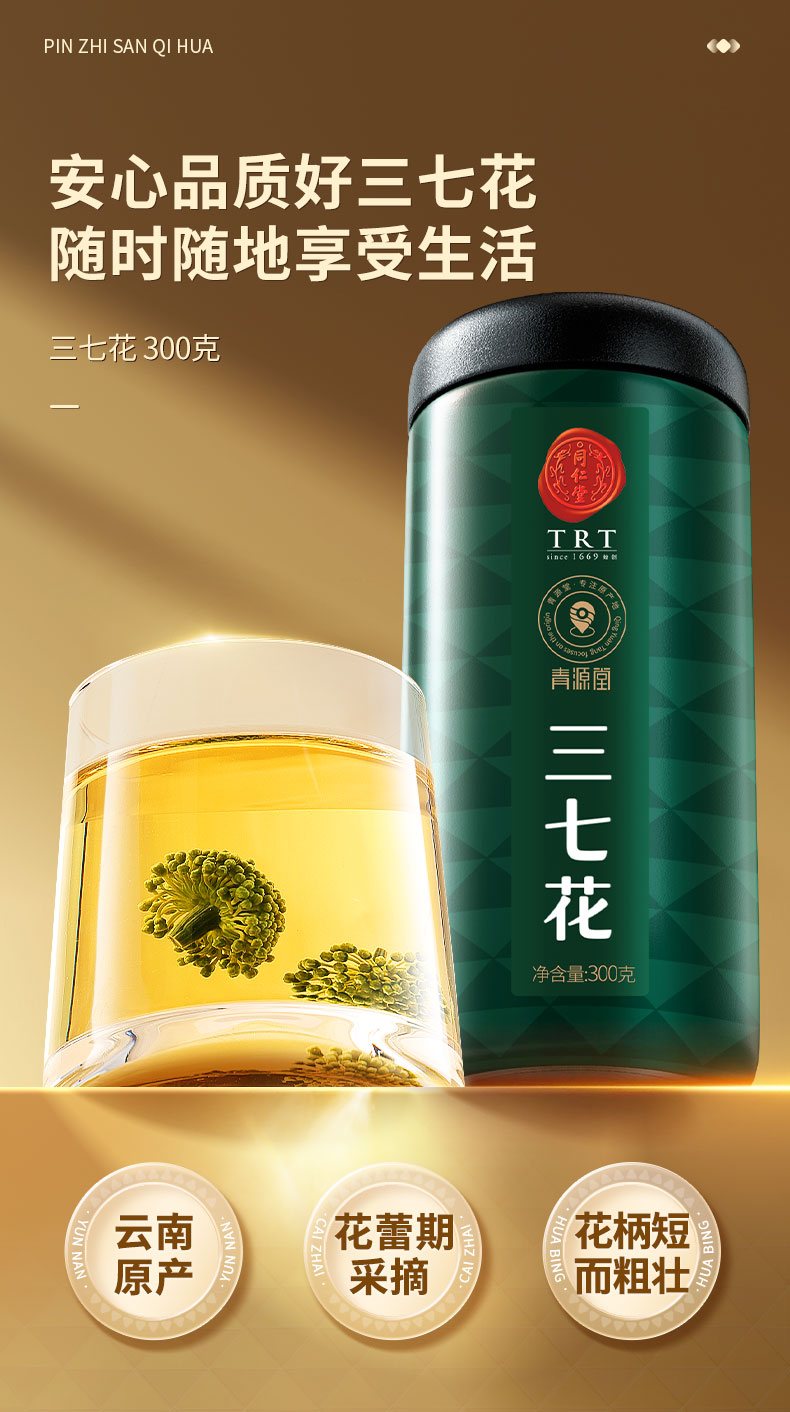 【正宗同仁堂品牌】北京同仁堂 青源堂 三七花300克(150克*2) 色泽自然 味苦清香 口感柔和 花蕾密集不松散SY