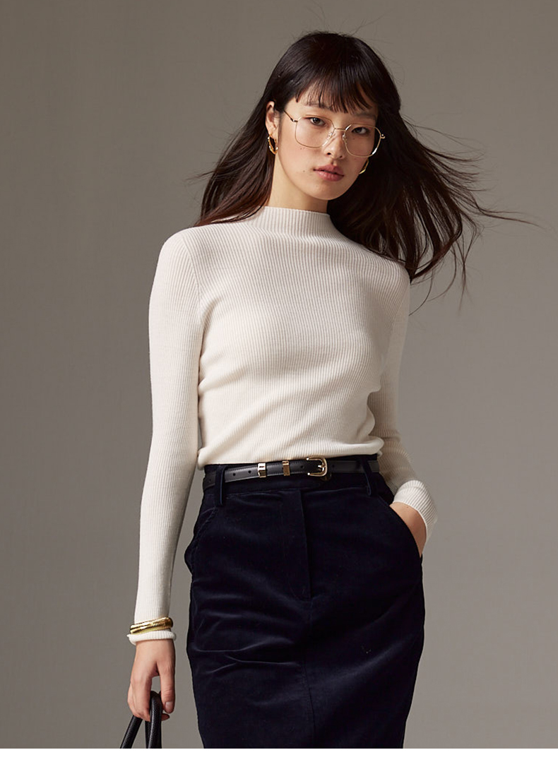 IN AND ON可机洗绵羊毛 三种领型无缝一体堆堆领/半高领/圆领针织打底衫
