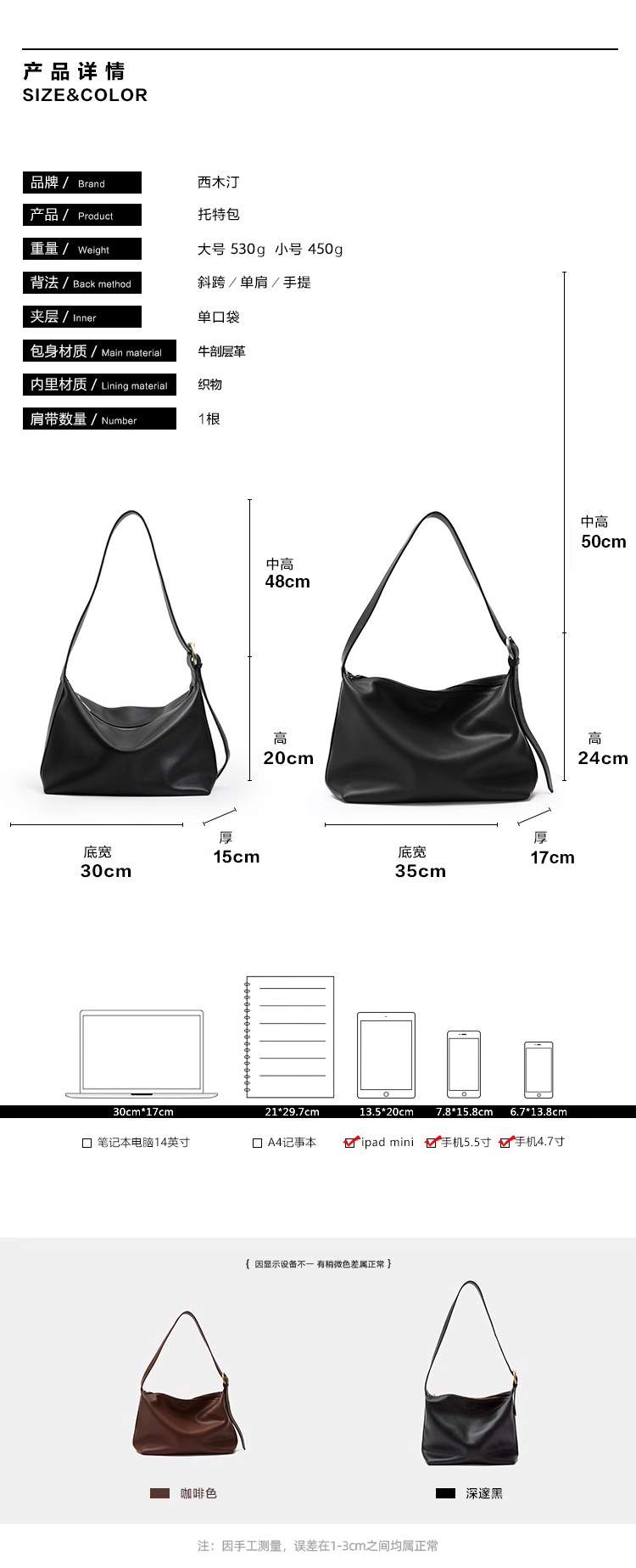 西木汀 软糖咖啡 牛皮托特包女大容量单肩通勤包小众斜挎包包