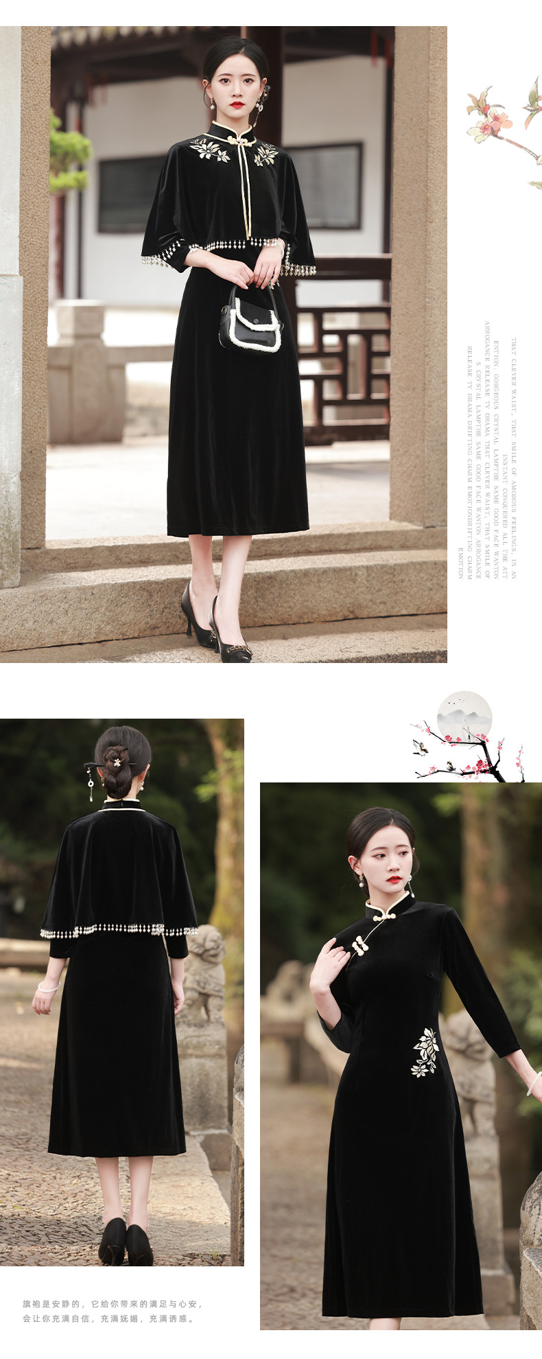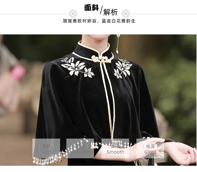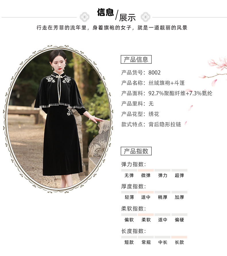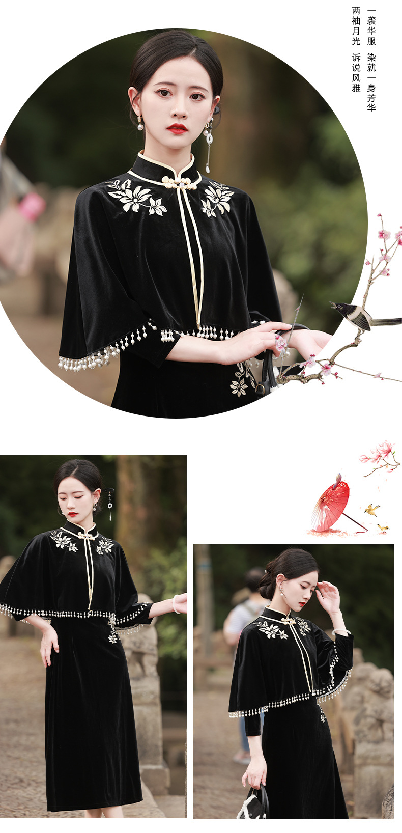 改良复古丝绒旗袍套装,秋季新款气质民国风绣花斗篷旗袍裙BJS-8002