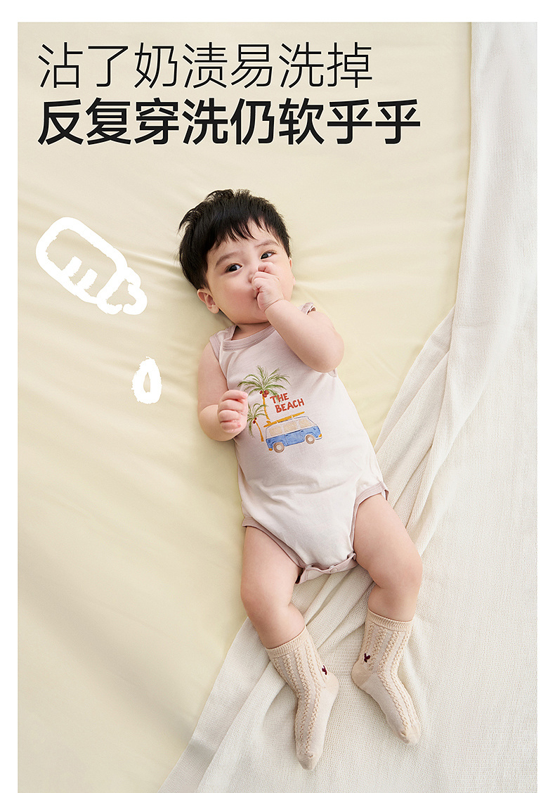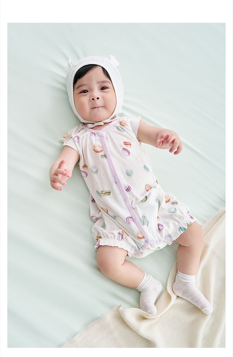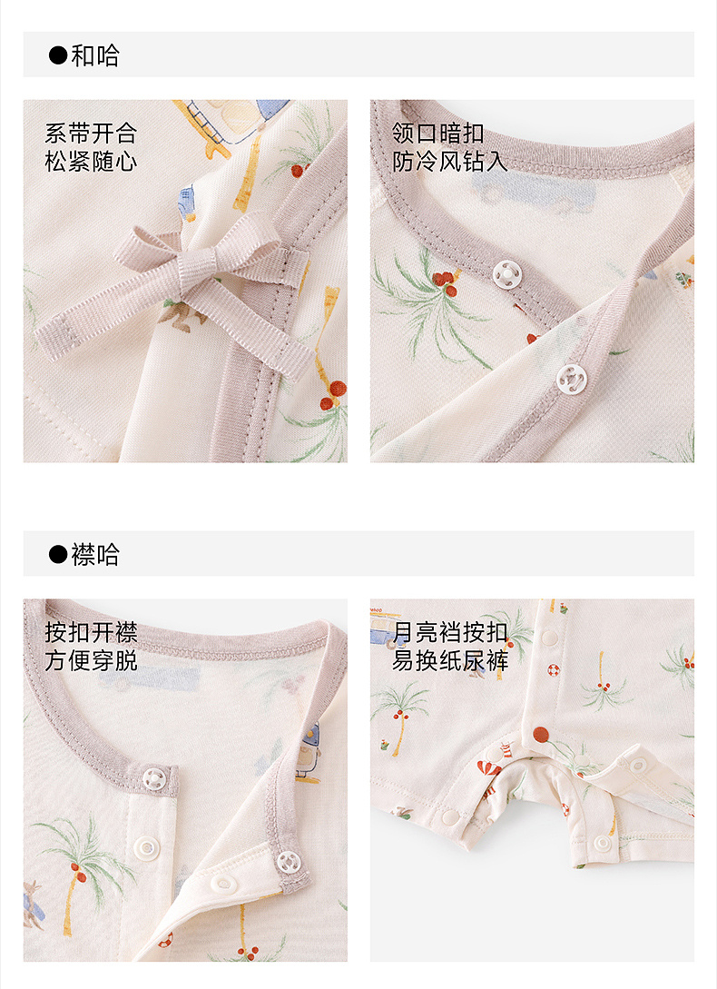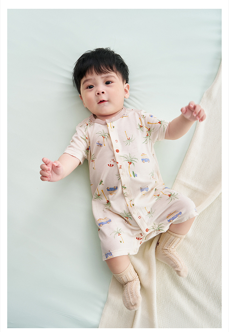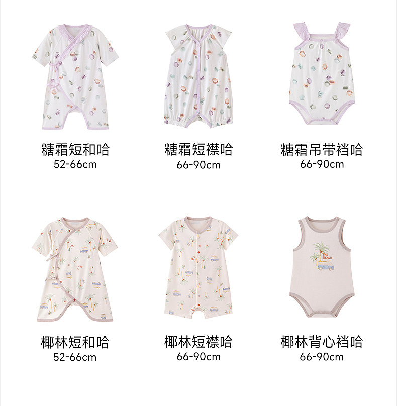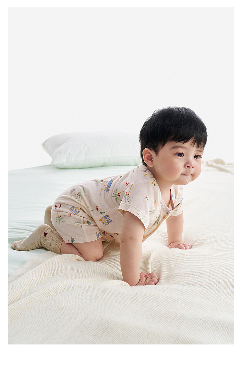 【10A抗菌防螨小茶柔】英氏婴儿哈衣男宝宝女宝宝夏季短袖爬爬服背心连体衣