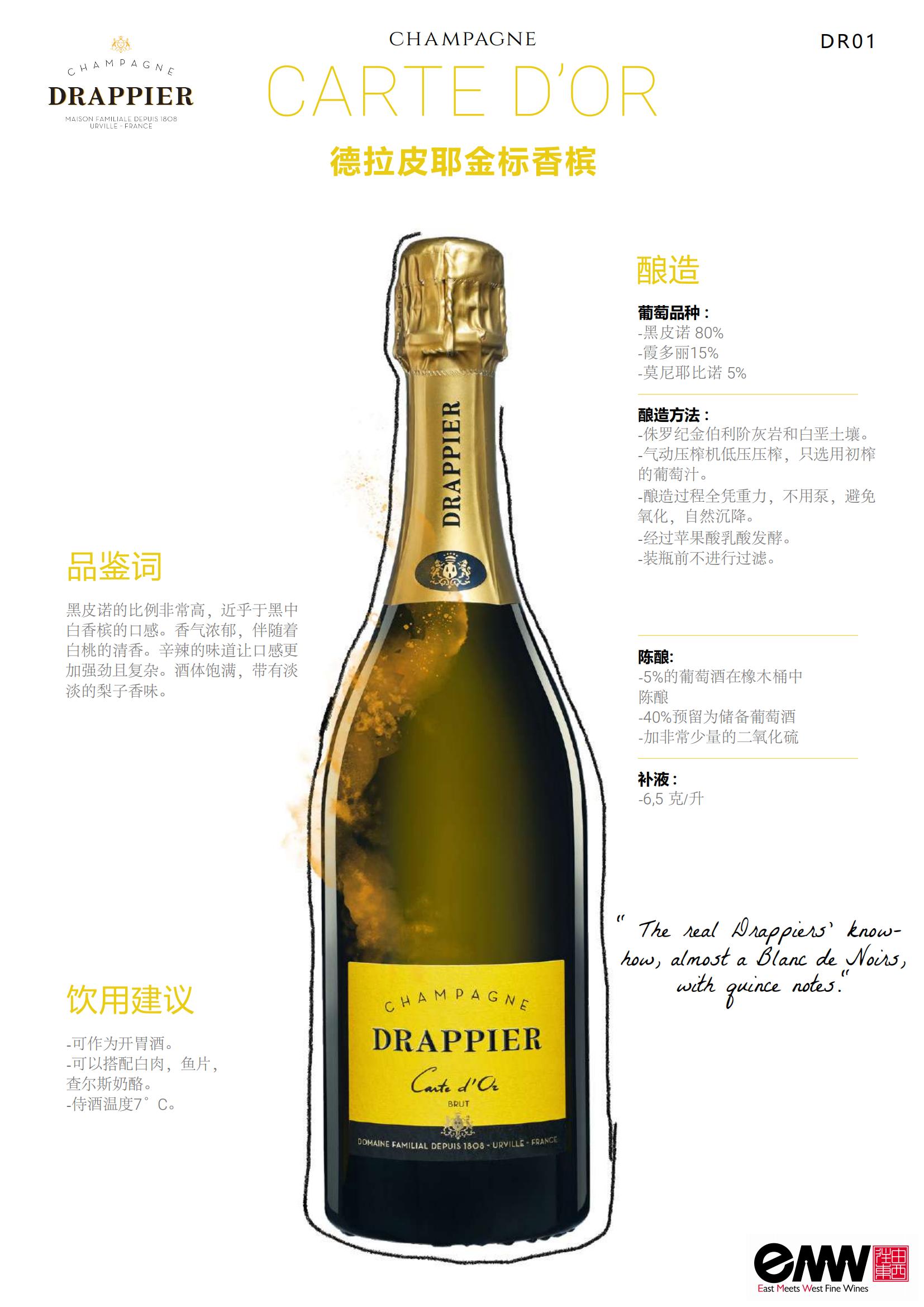 WS 92 德拉皮耶金标香槟起泡葡萄酒 Champagne Drappier Carte d‘Or Brut NV