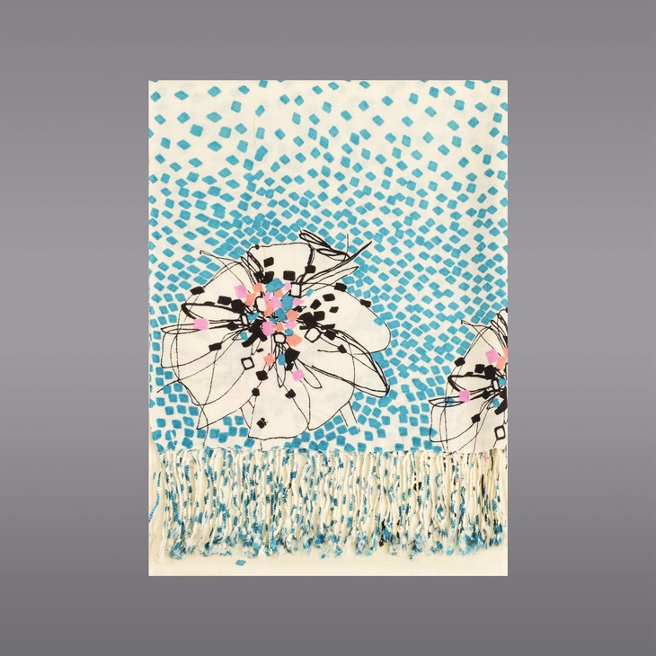 CESARE BRUNI品牌,精纺羊毛抽象花卉流苏披肩 CFW1202011