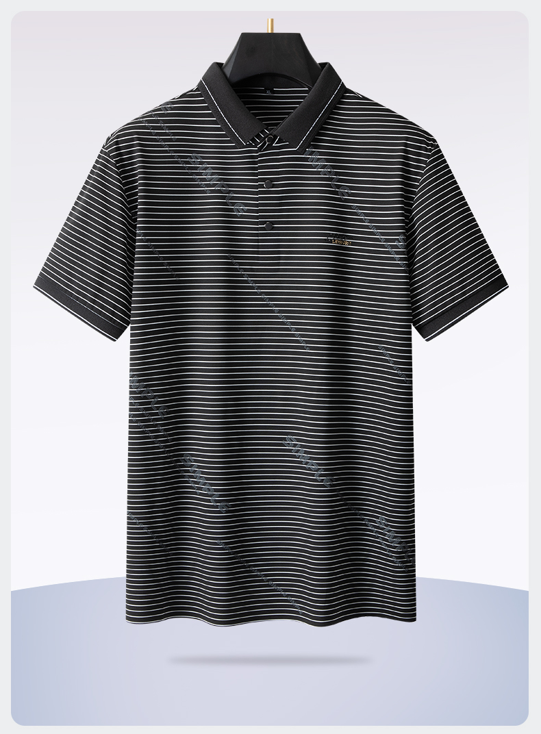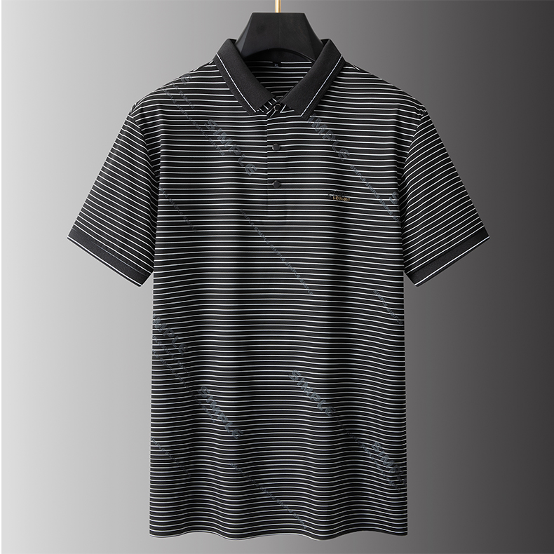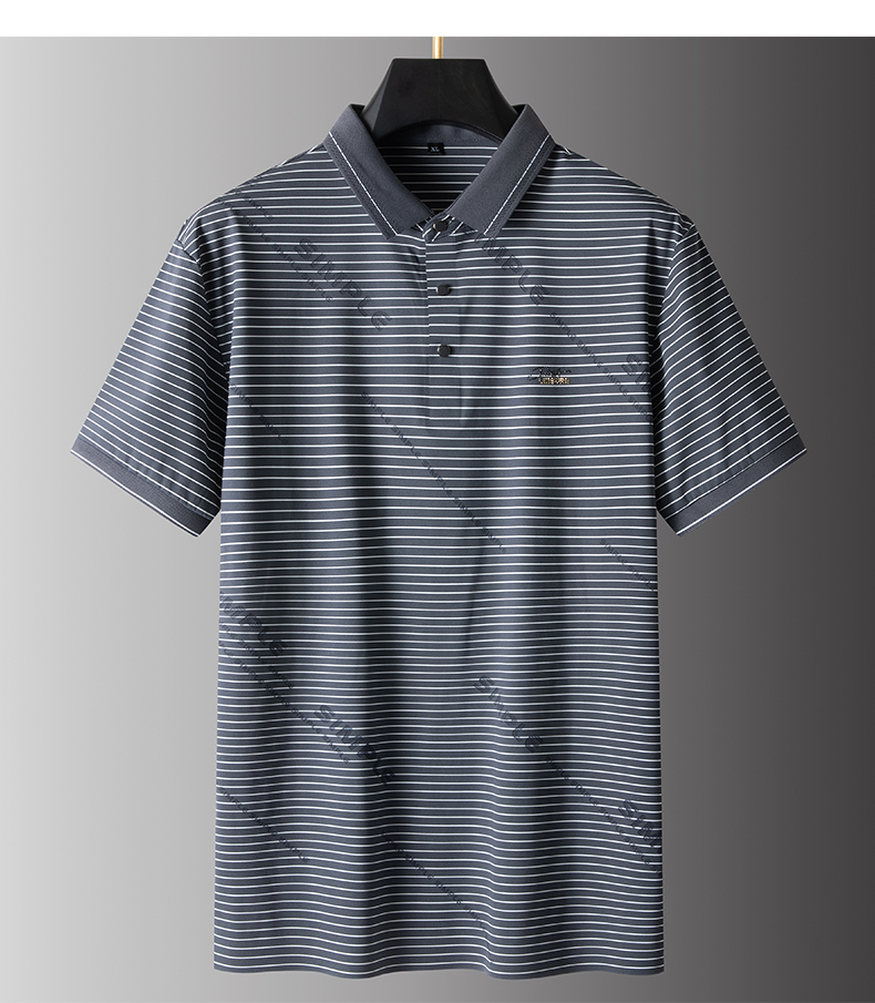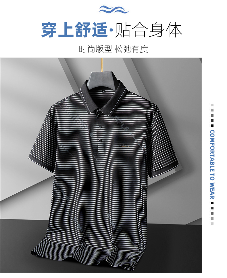 【Q】【冰丝高弹】【新款DPS】大依优型大码男装短袖POLO衫翻领冰丝高弹横条纹加肥加大透气吸汗夏季上衣半袖t恤夏装