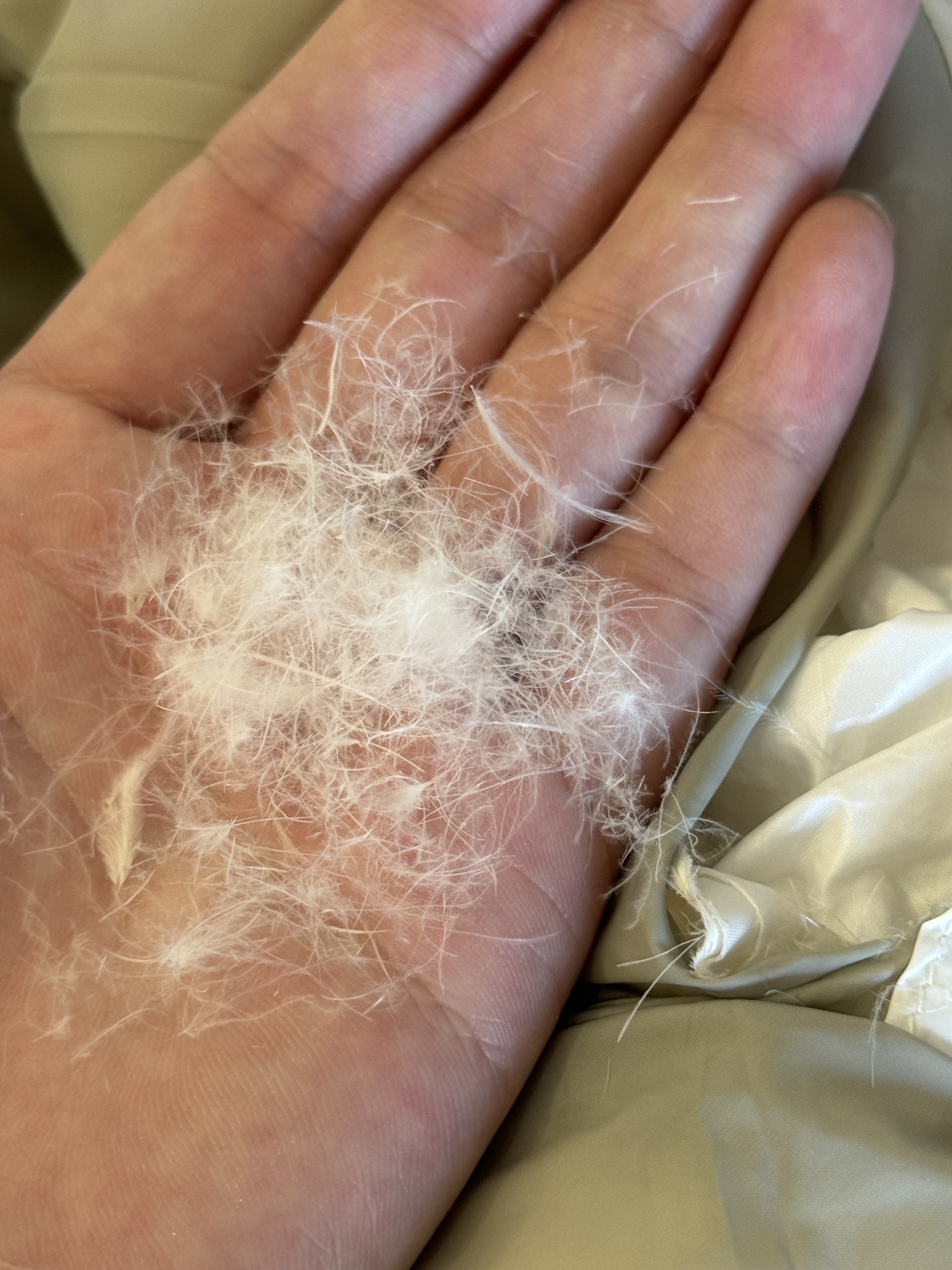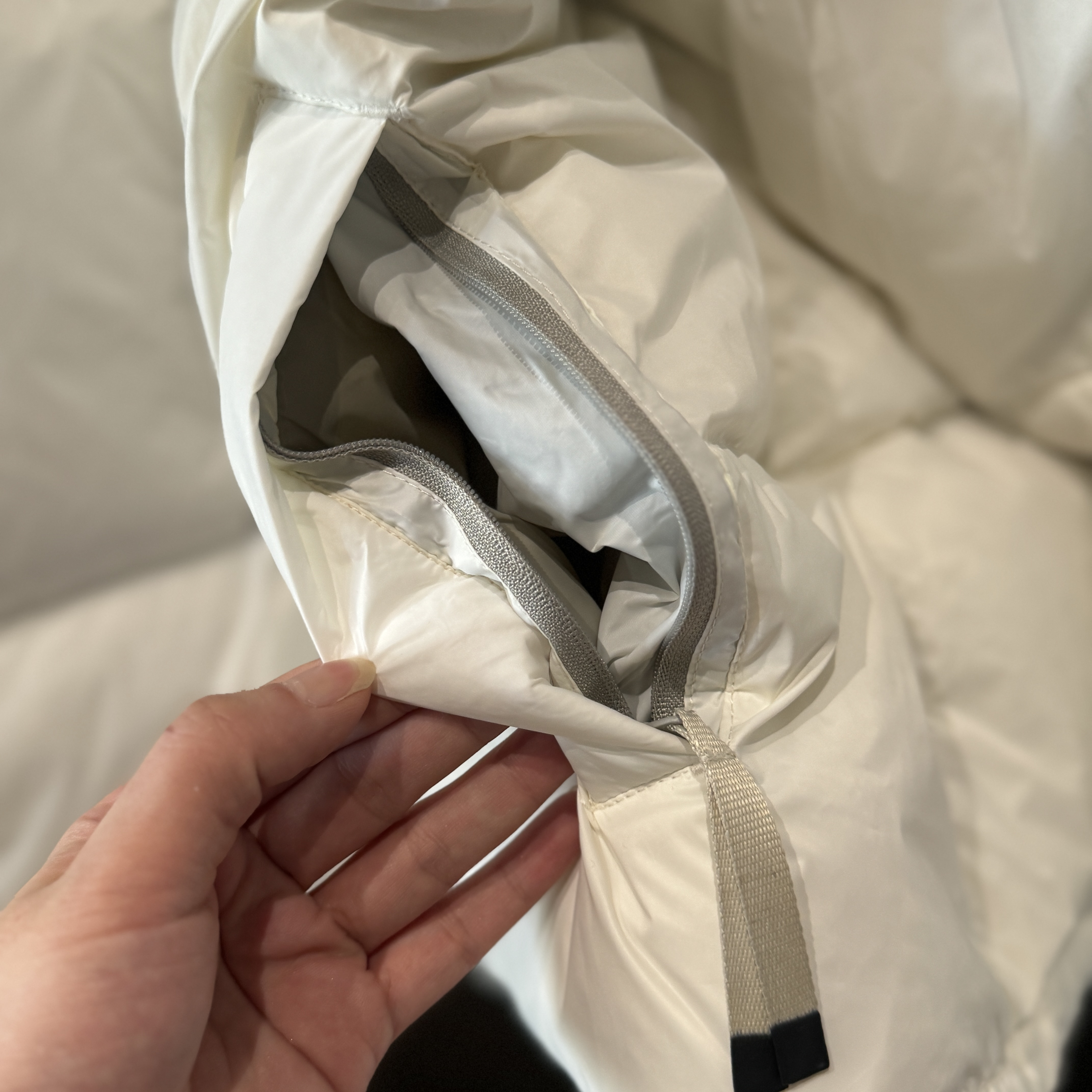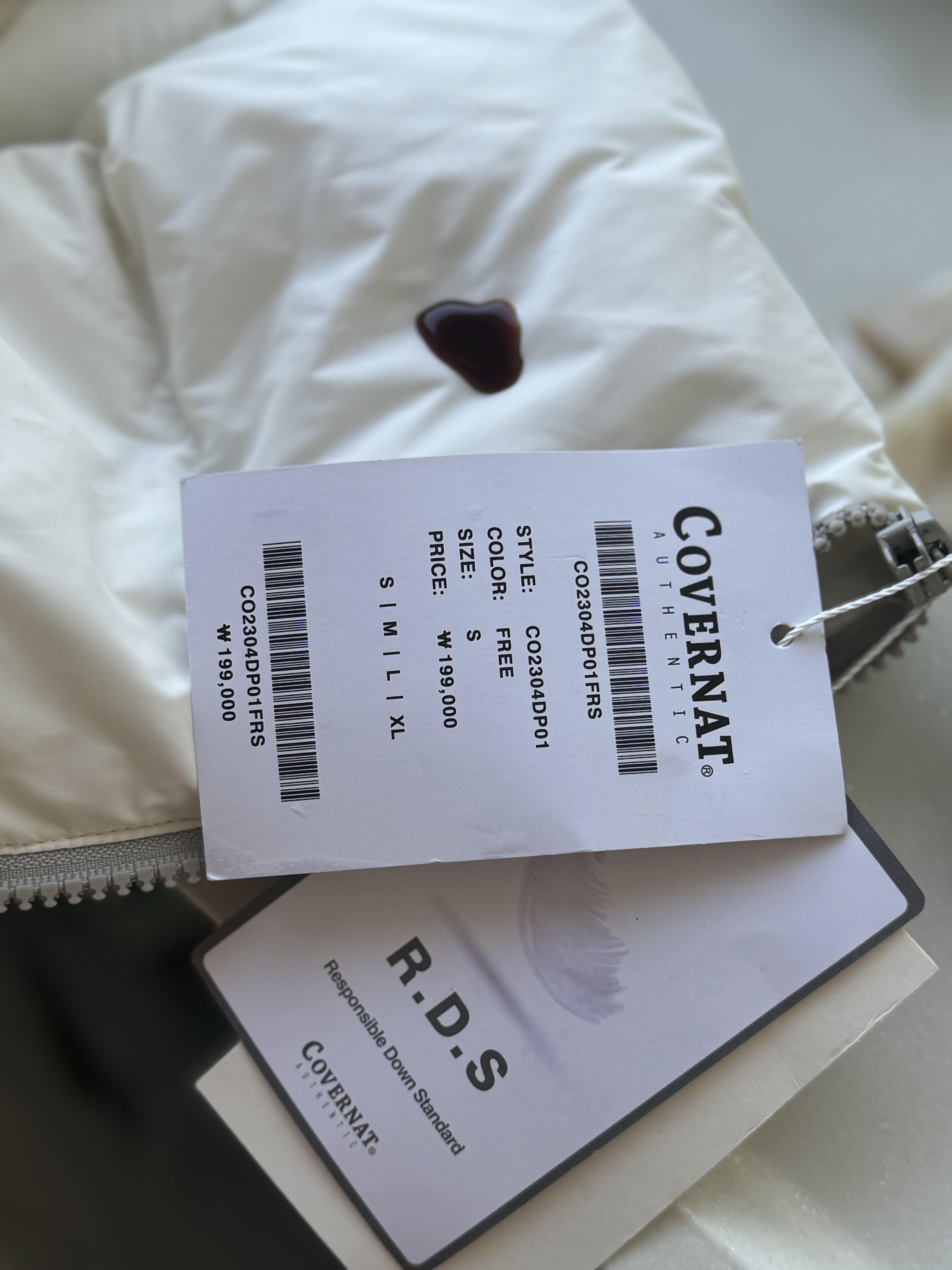 核心‼️防泼水面料:酱油污渍一擦即净,米白色也能任性穿。精准充绒:318g高充绒量,-15℃极寒锁温。防钻绒工艺:内部绗缝加固,剪刀实测绒朵蓬松饱满。品牌吊牌齐全:韩文原版吊牌+RDS认证标签,zheng品保障‼️