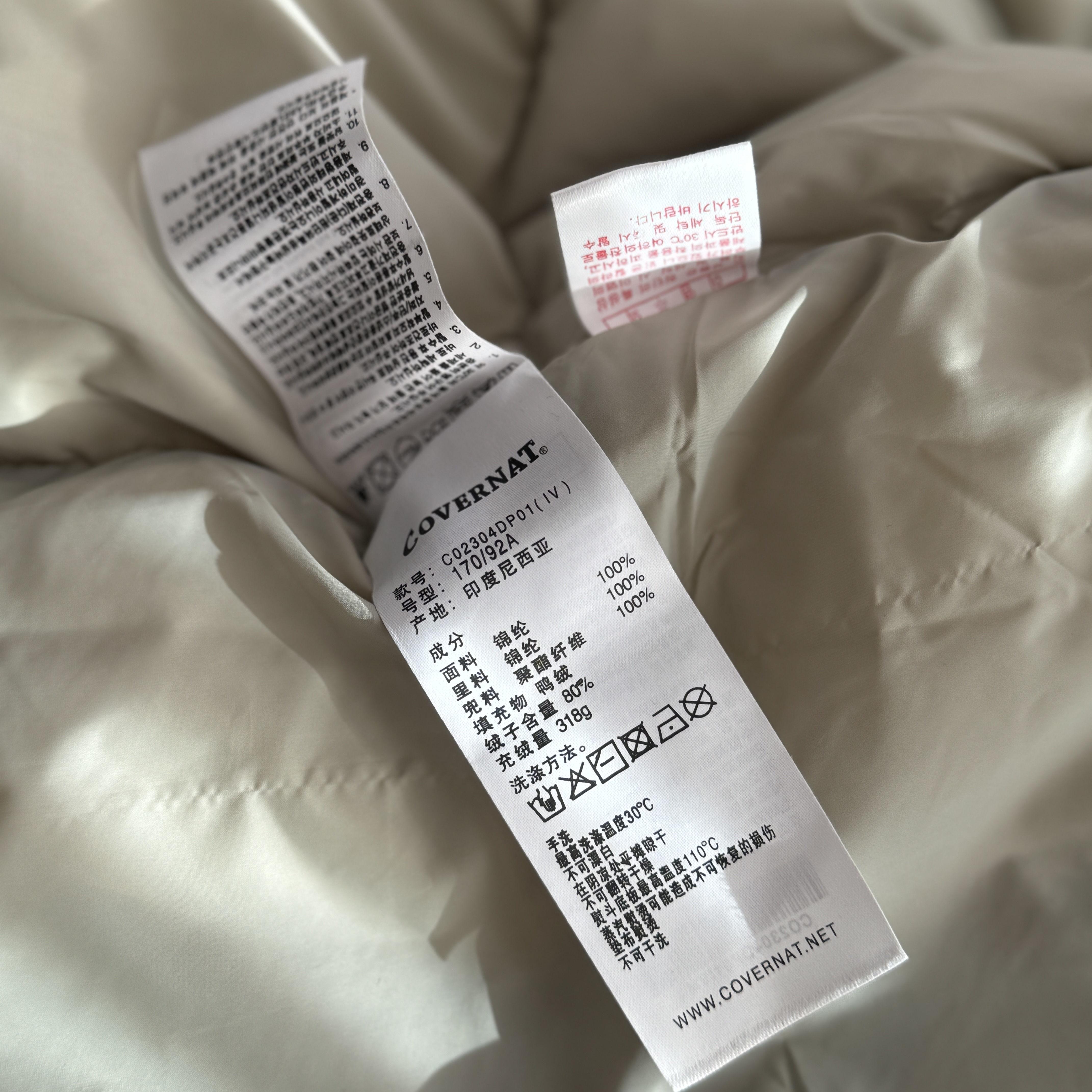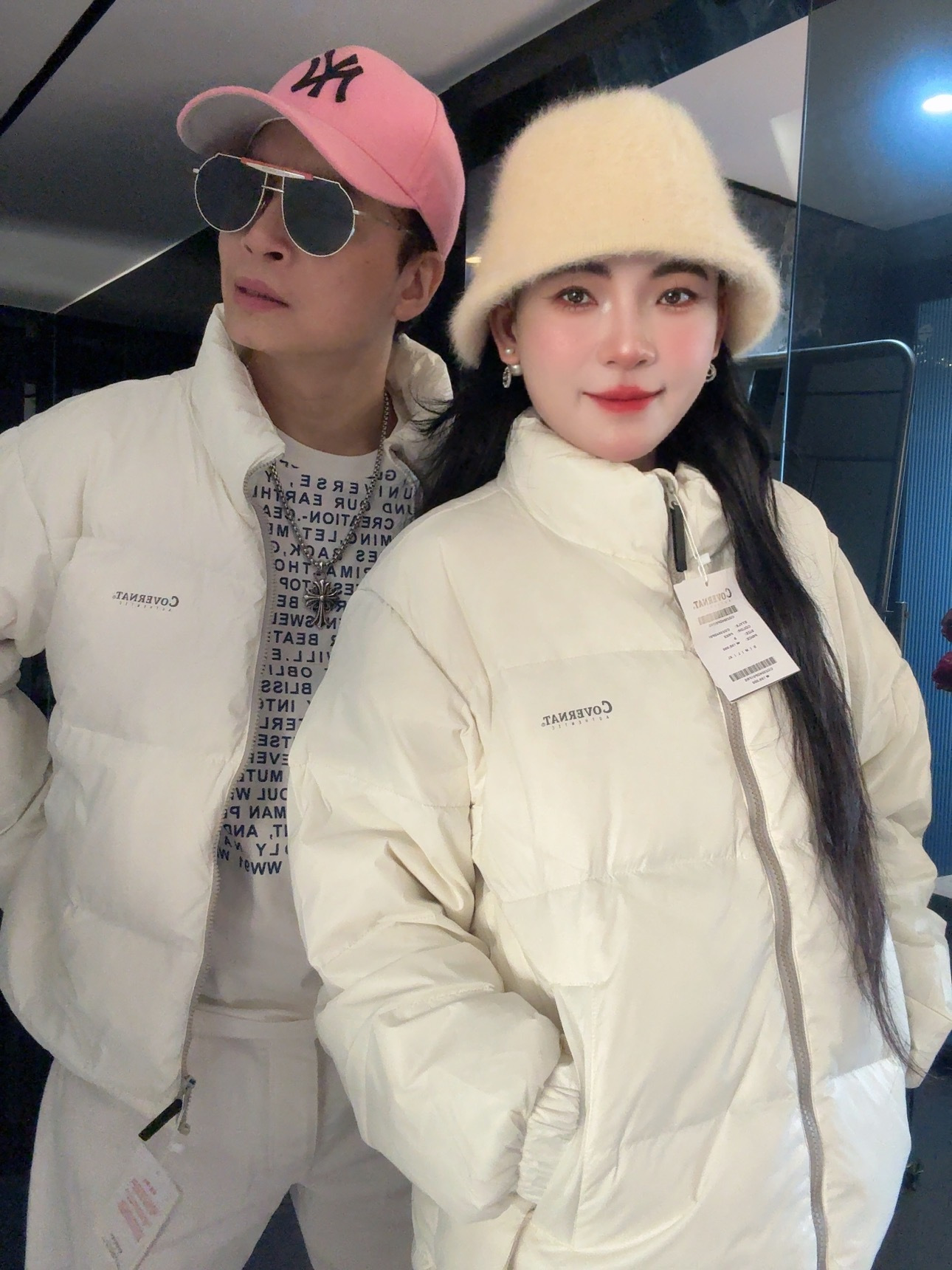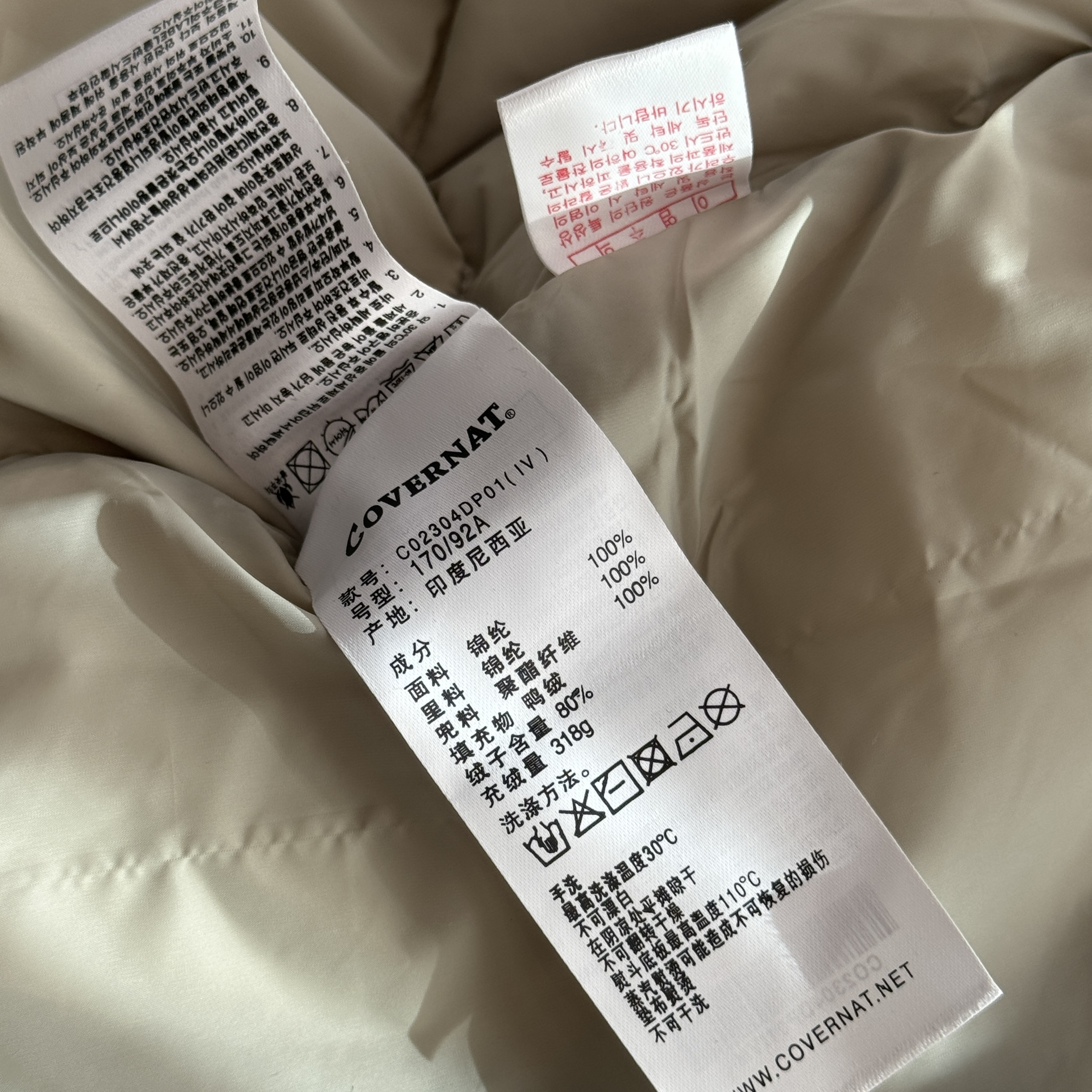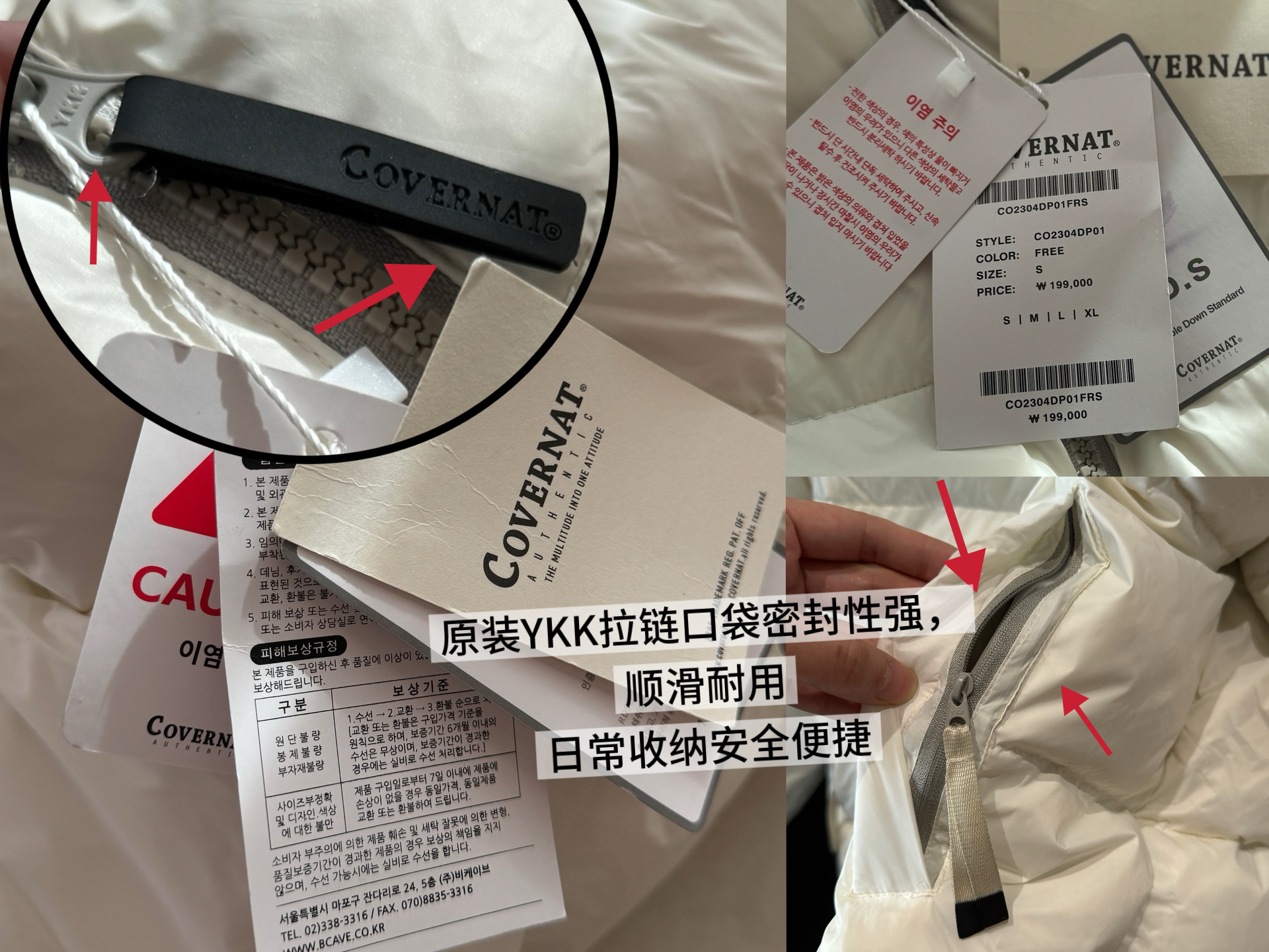 【COVE&RNAT FW24 韩系短款羽绒服|318g精品白鸭绒填充|HYBE爱豆同款热销榜第1名!王旭东、韩星私服同款,短款立领设计+徽标字母点缀,男女同款百搭不挑人。象牙白高级显白,冬季穿搭轻松拿捏氛围感!1. 定制LOGO拉链头+YKK顺滑拉链:拉链头刻印"COVERNAT"品牌标识,搭配国际品质YKK拉链,顺滑不卡顿。
