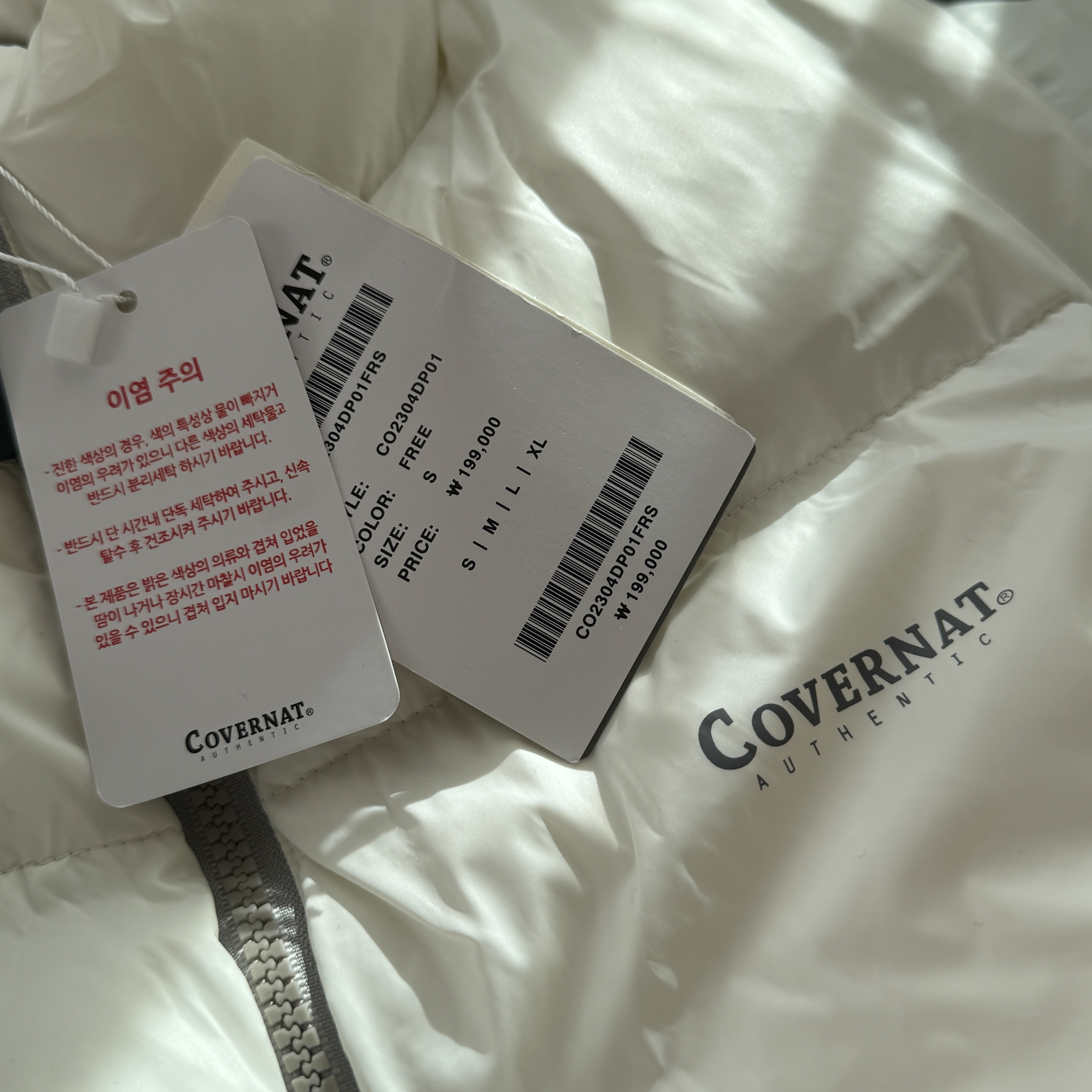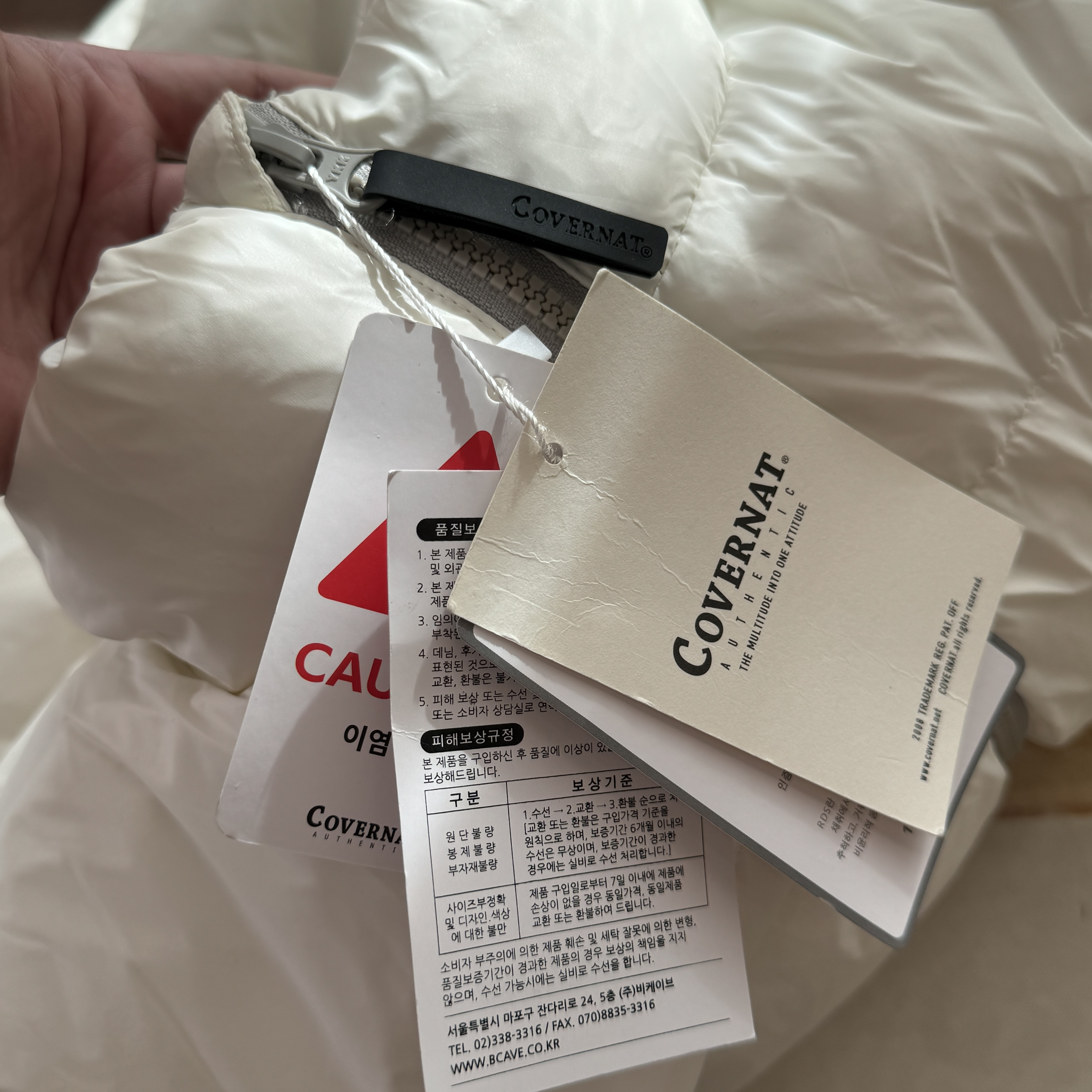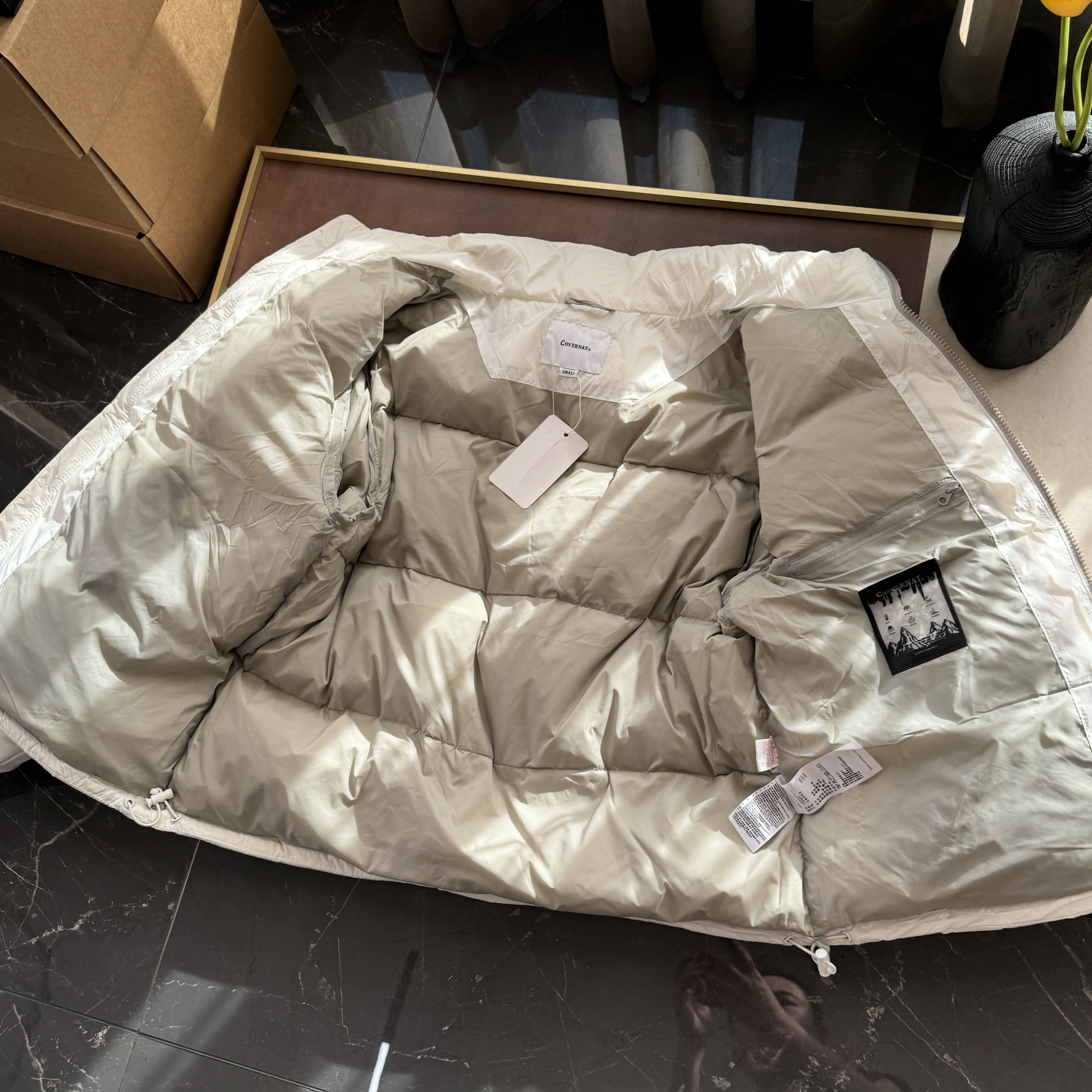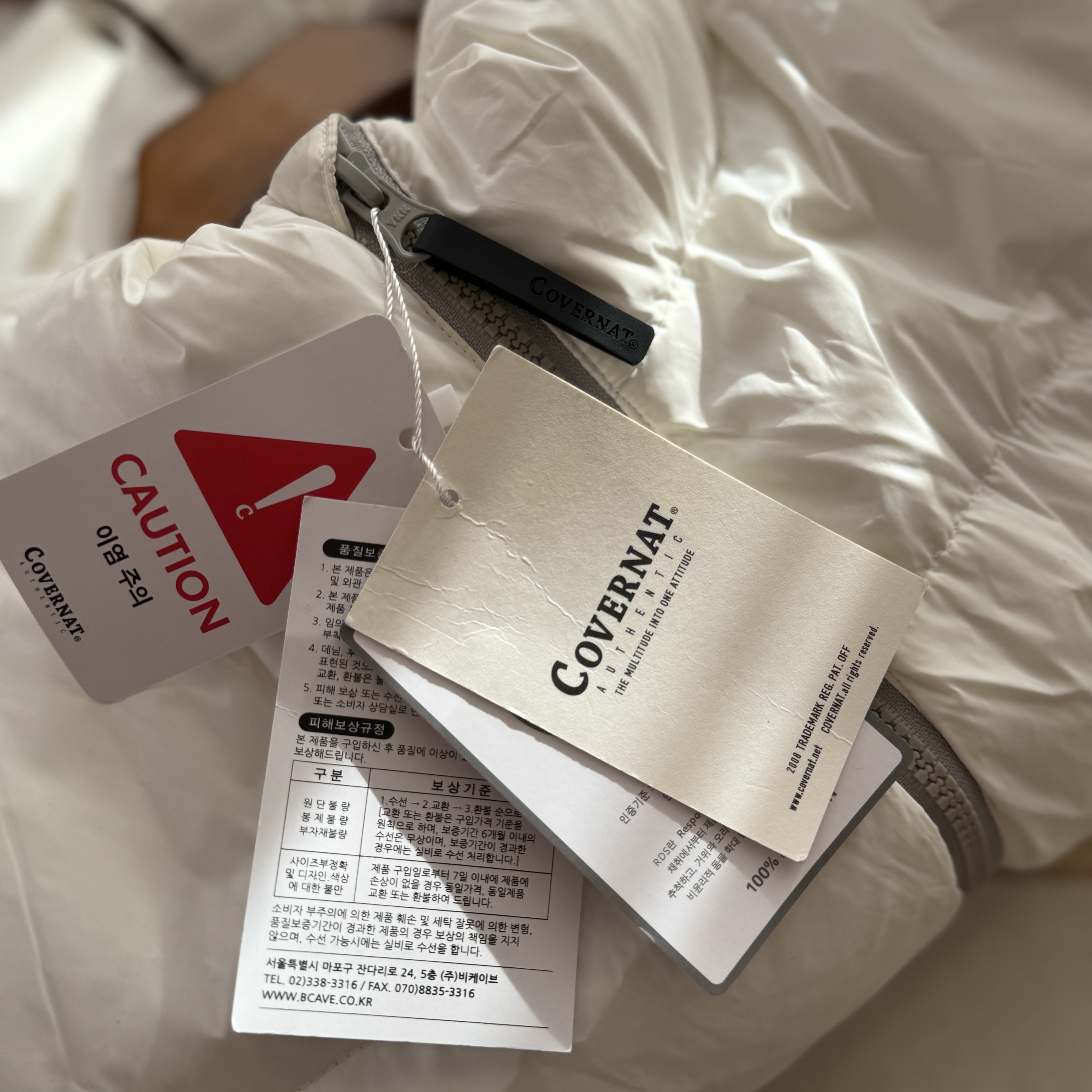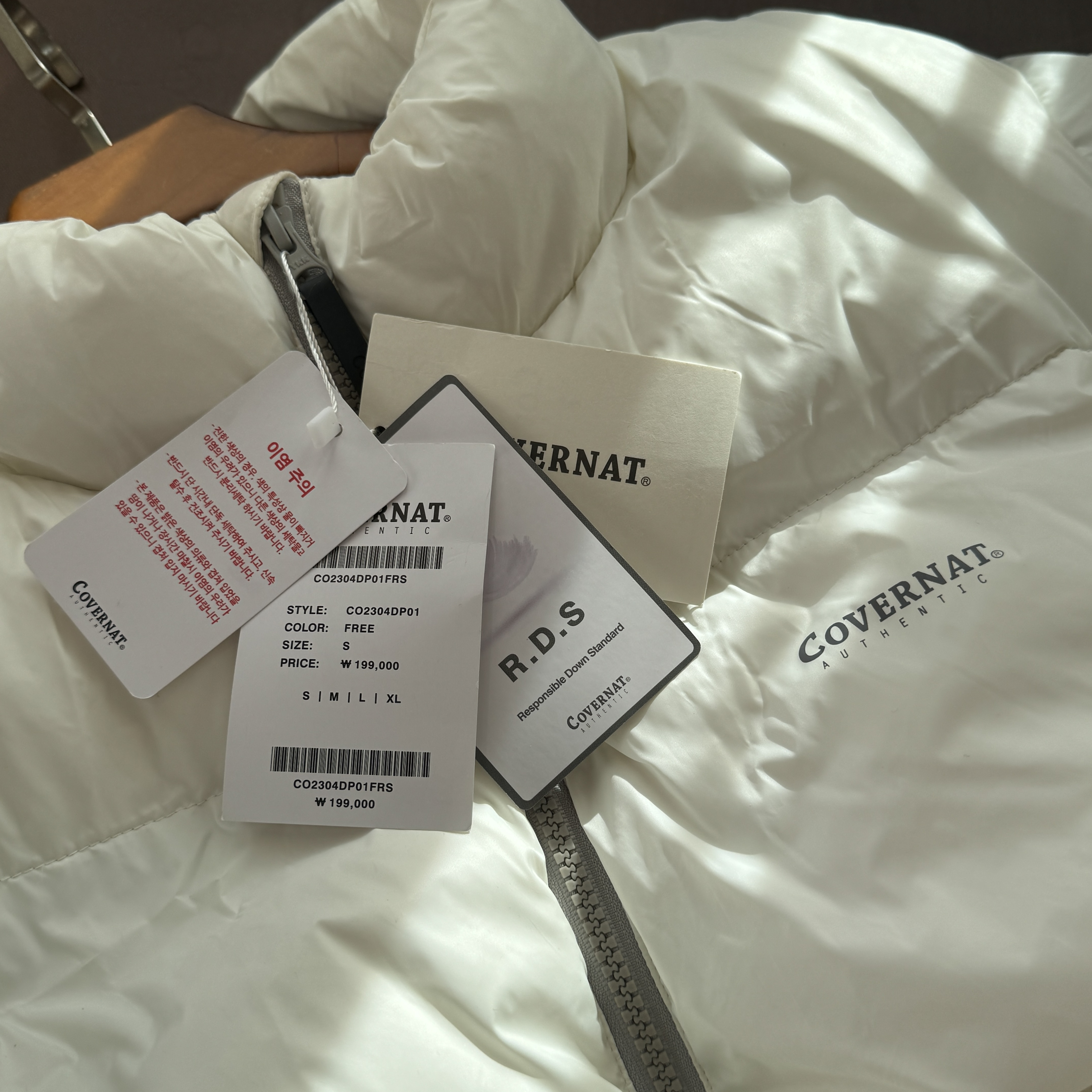 【COVE&RNAT FW24 韩系短款羽绒服|318g精品白鸭绒填充|HYBE爱豆同款热销榜第1名!王旭东、韩星私服同款,短款立领设计+徽标字母点缀,男女同款百搭不挑人。象牙白高级显白,冬季穿搭轻松拿捏氛围感!1. 定制LOGO拉链头+YKK顺滑拉链:拉链头刻印"COVERNAT"品牌标识,搭配国际品质YKK拉链,顺滑不卡顿。