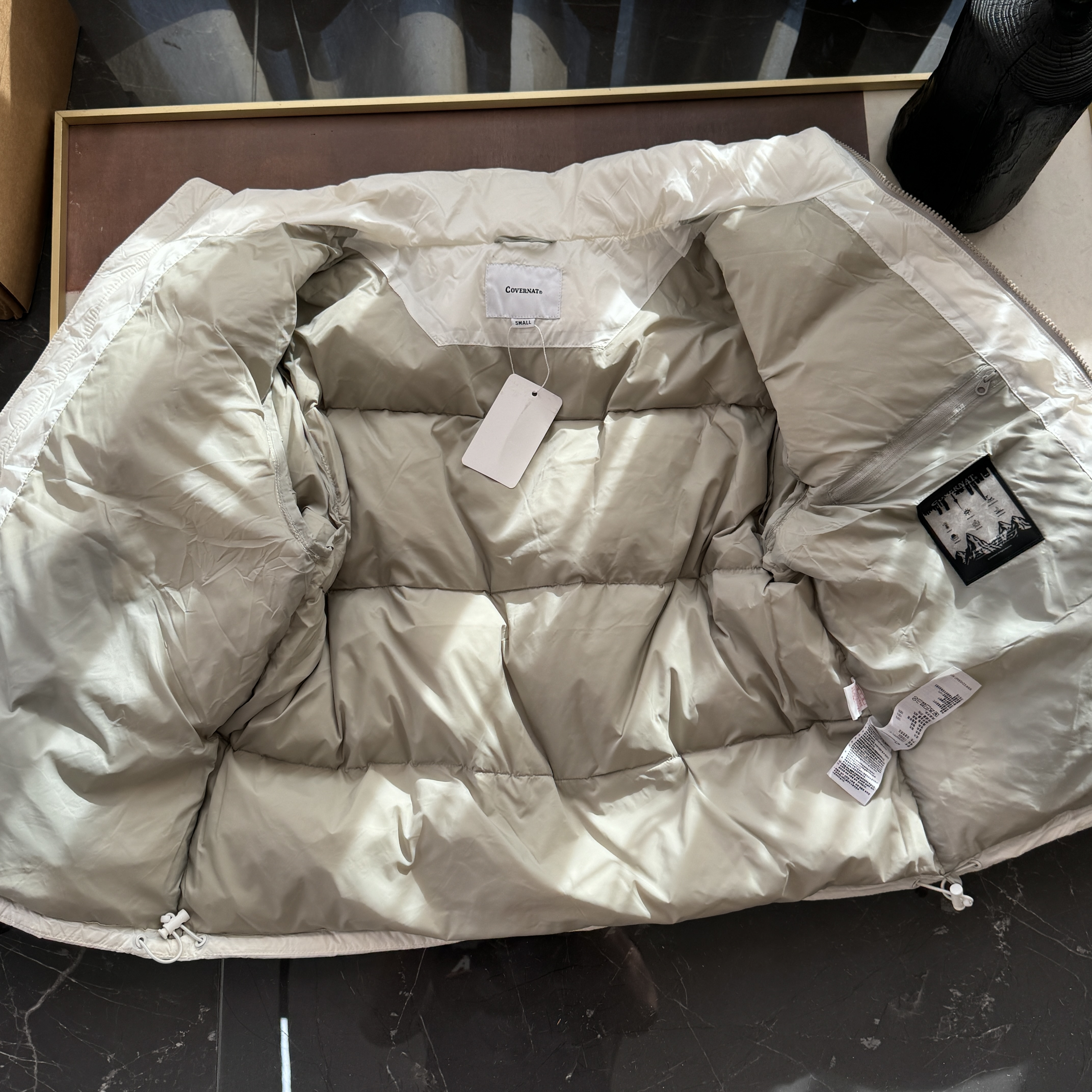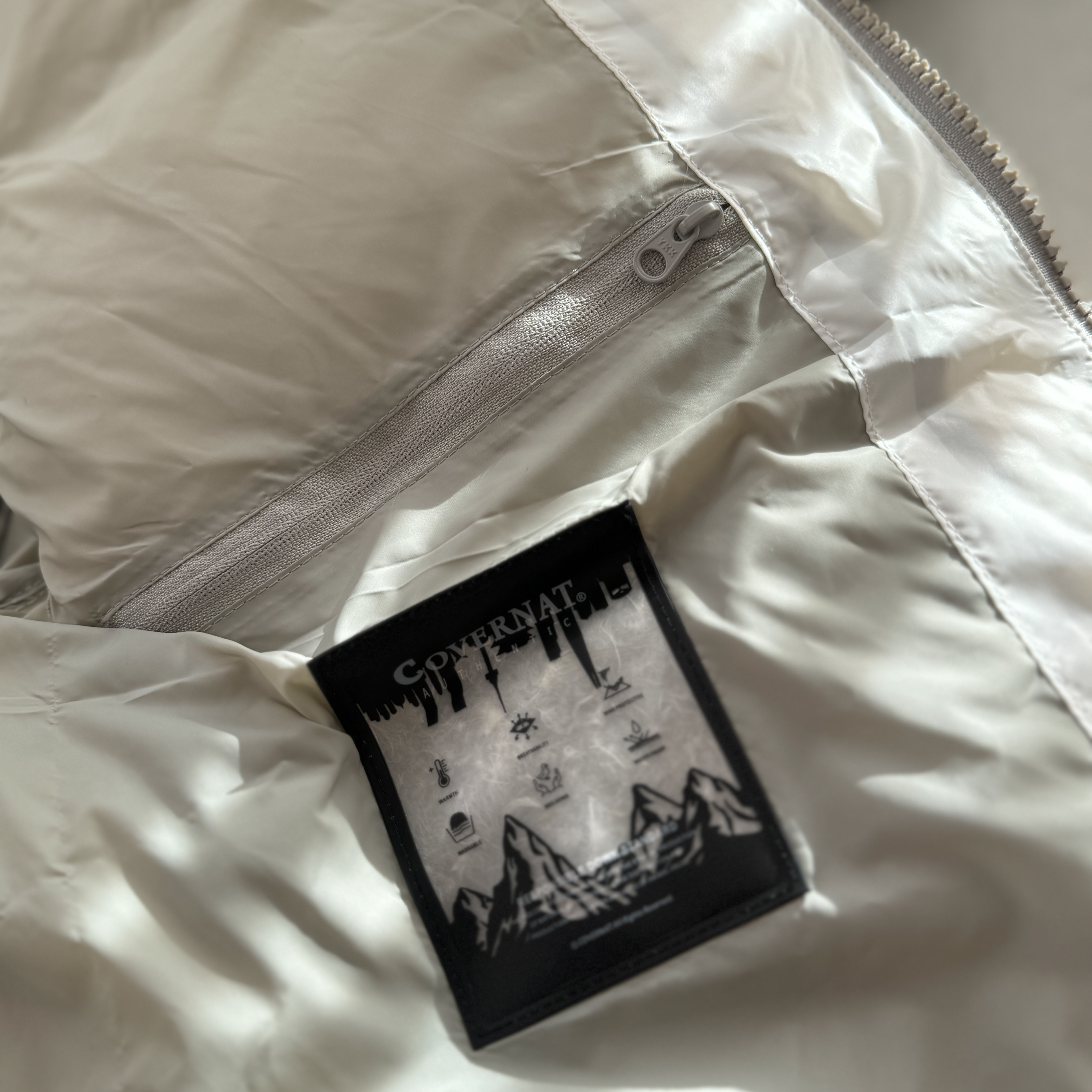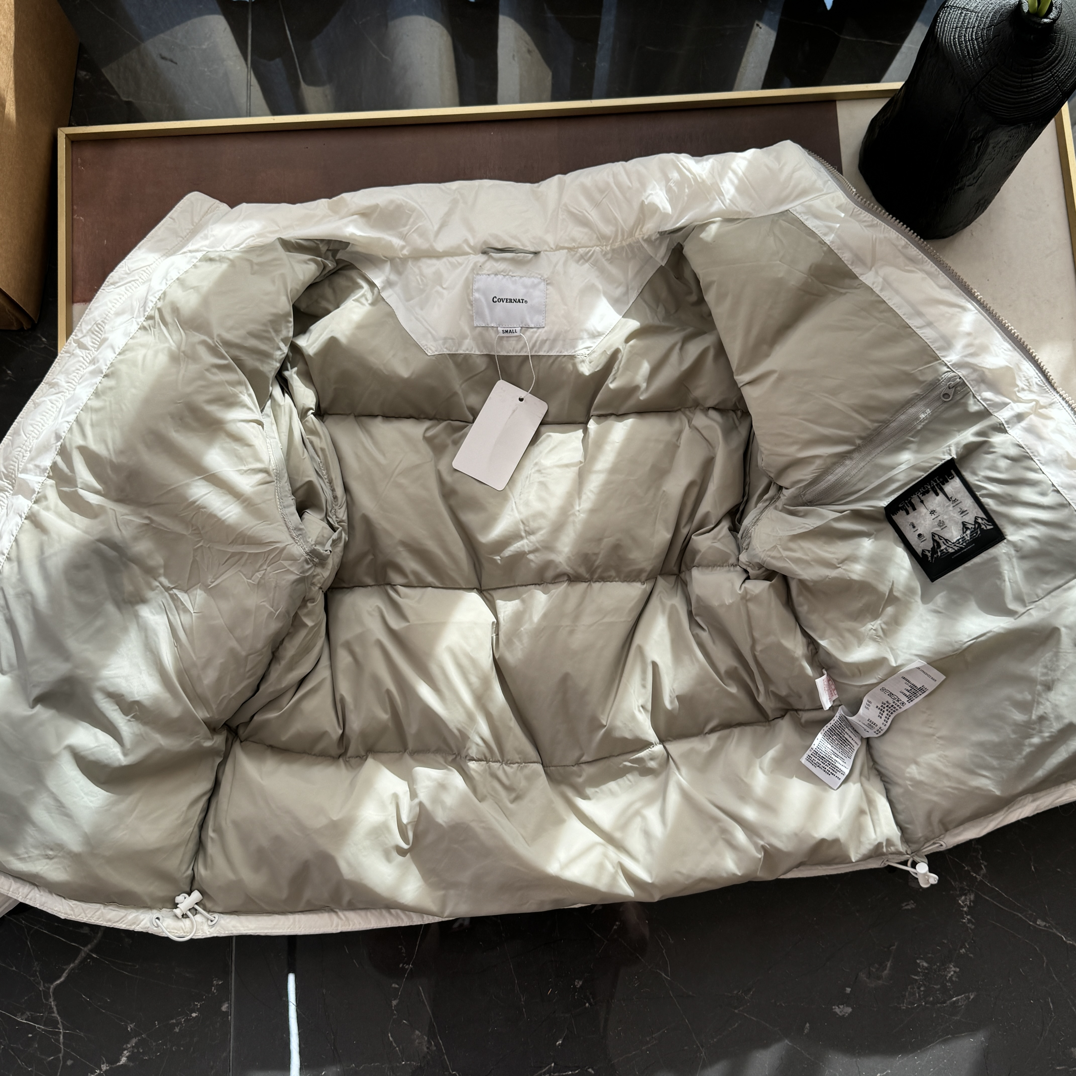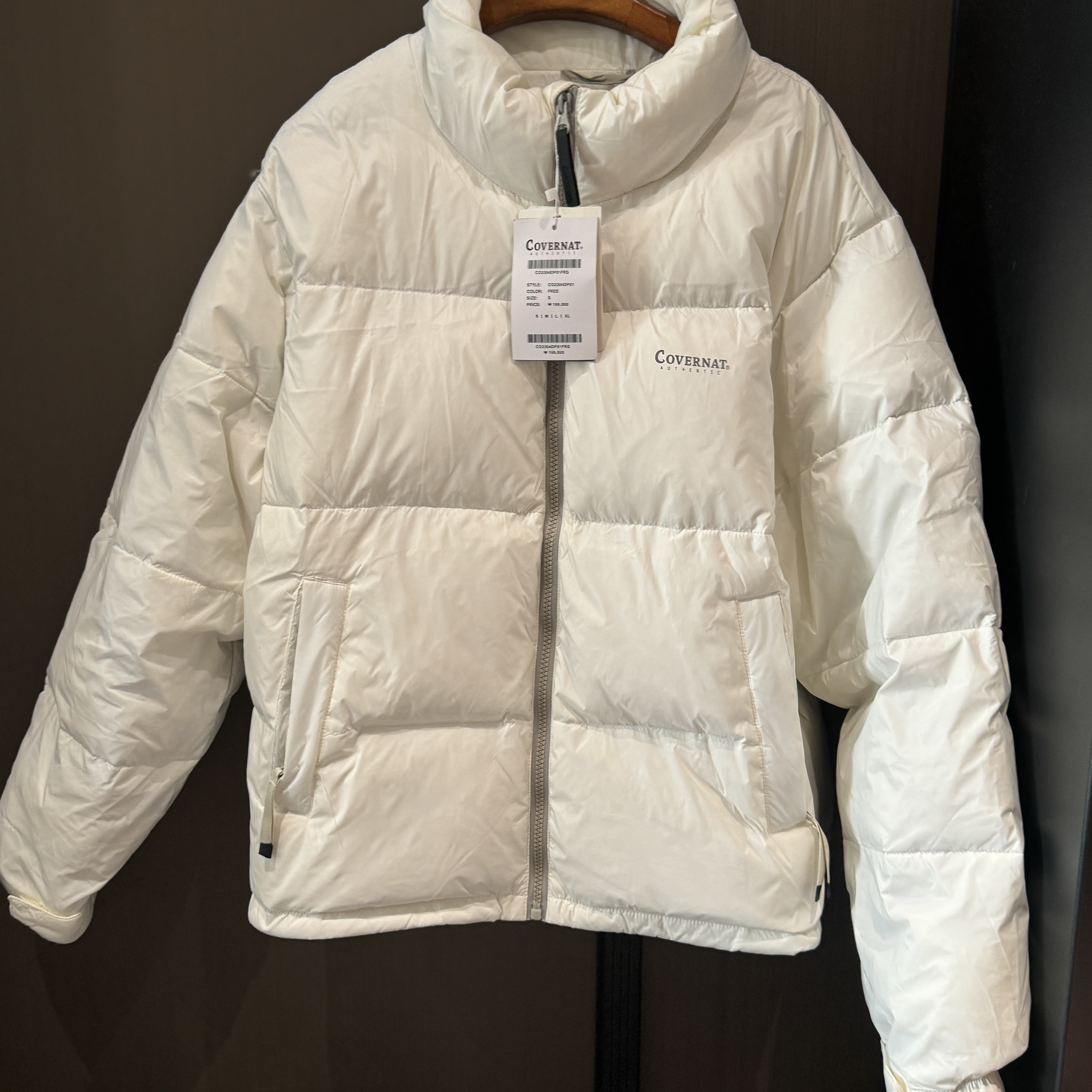 【COVE&RNAT FW24 韩系短款羽绒服|318g精品白鸭绒填充|HYBE爱豆同款热销榜第1名!王旭东、韩星私服同款,短款立领设计+徽标字母点缀,男女同款百搭不挑人。象牙白高级显白,冬季穿搭轻松拿捏氛围感!1. 定制LOGO拉链头+YKK顺滑拉链:拉链头刻印"COVERNAT"品牌标识,搭配国际品质YKK拉链,顺滑不卡顿。