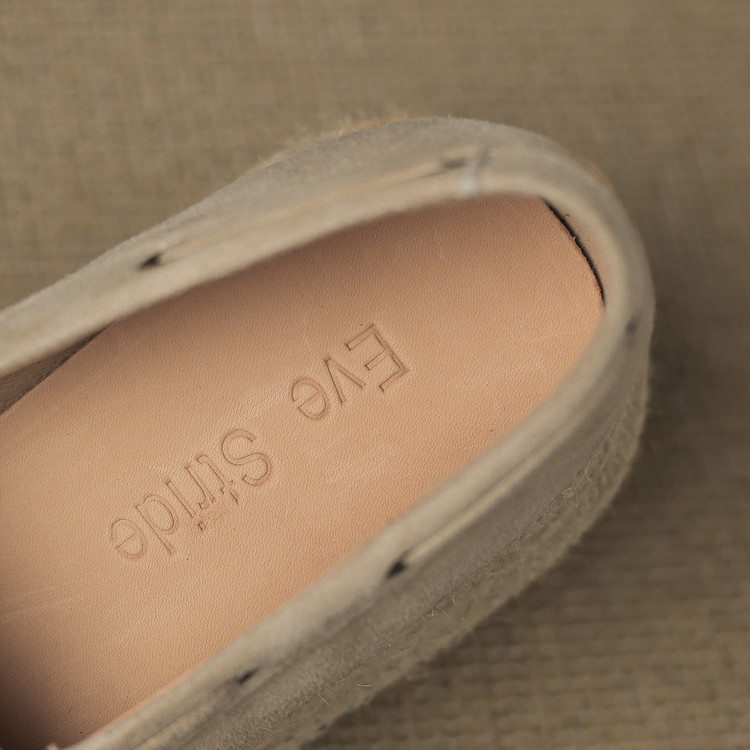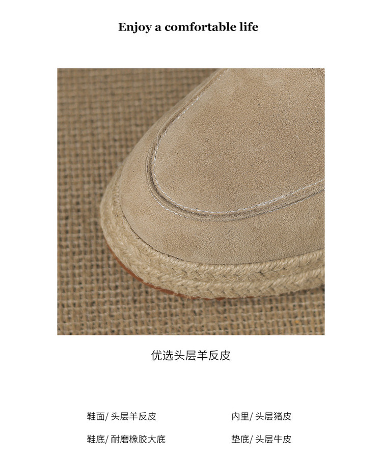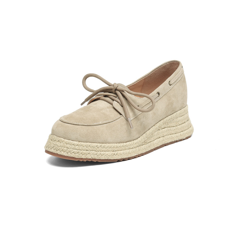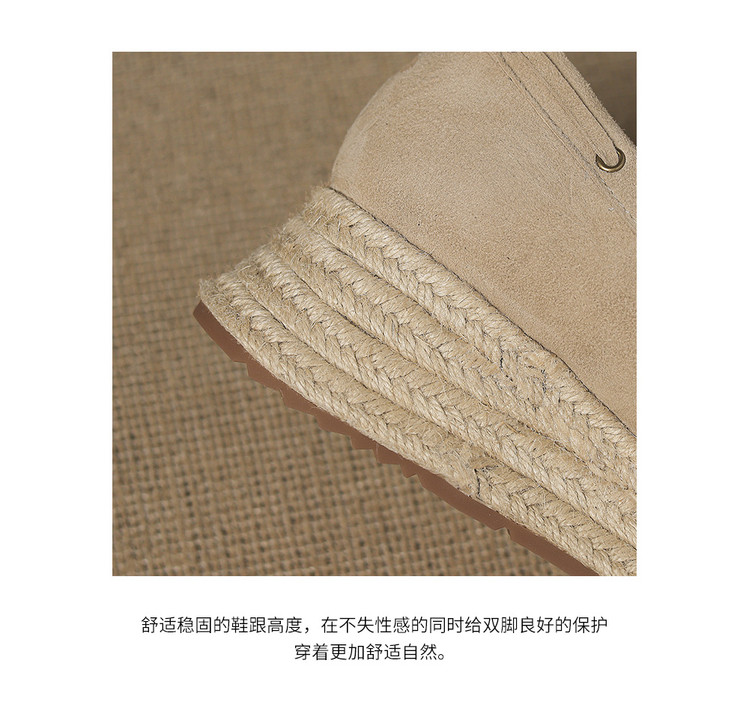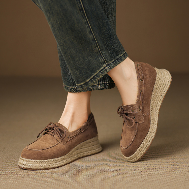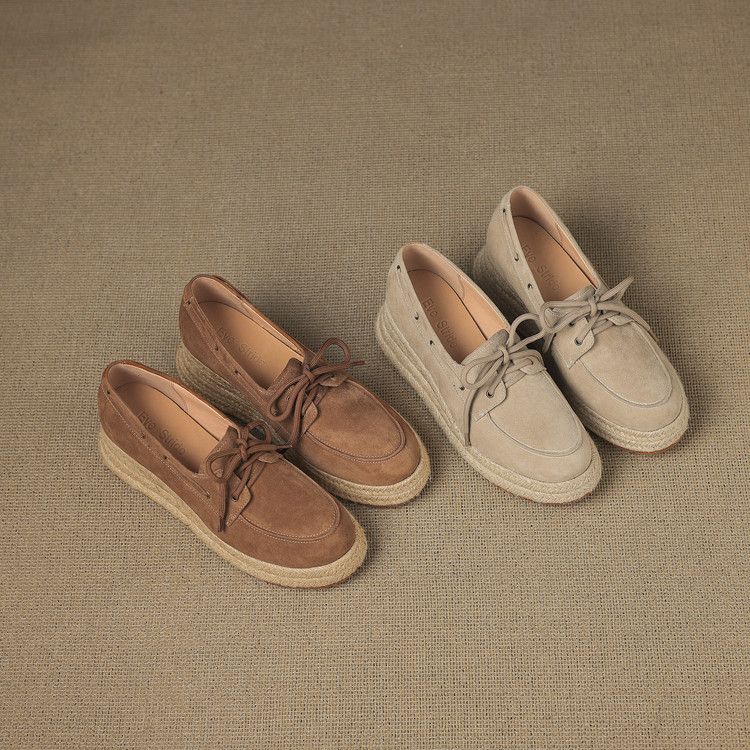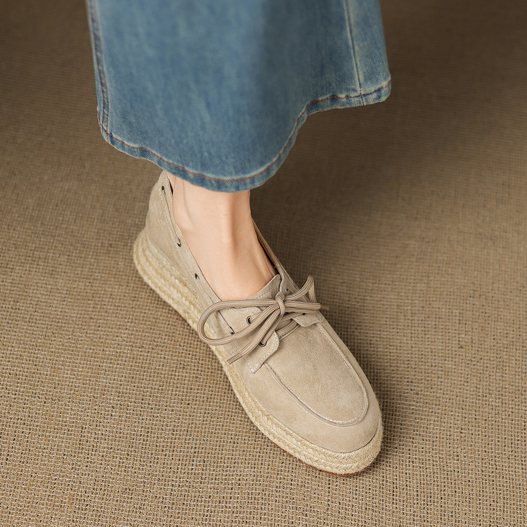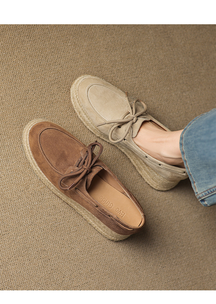 【预售5天】5cm复古磨砂真皮草编厚底单鞋女秋季新款圆头渔夫鞋系带乐福鞋MT&MD5291