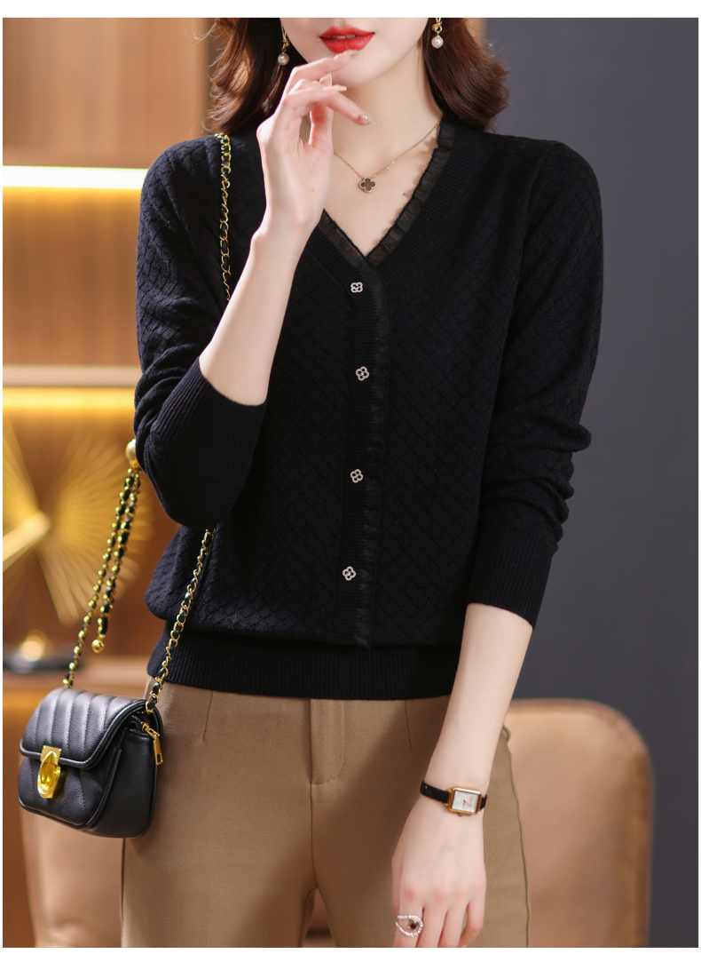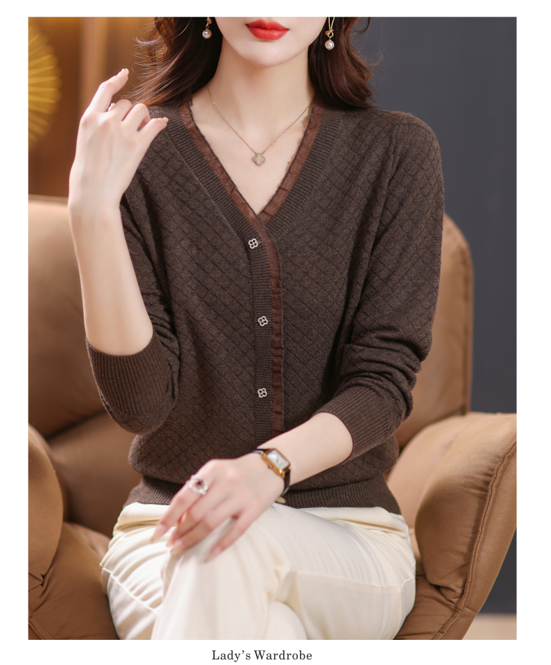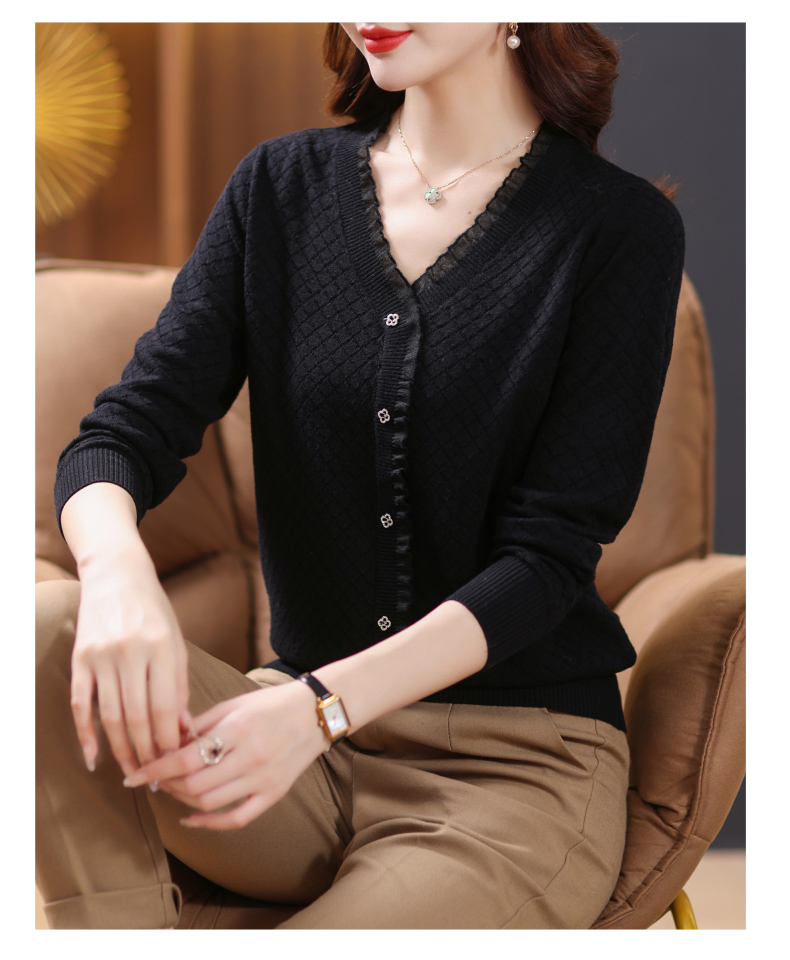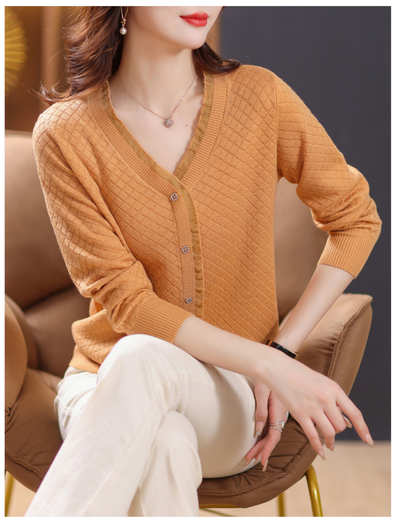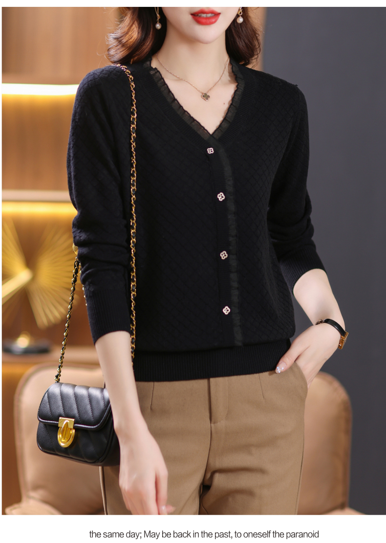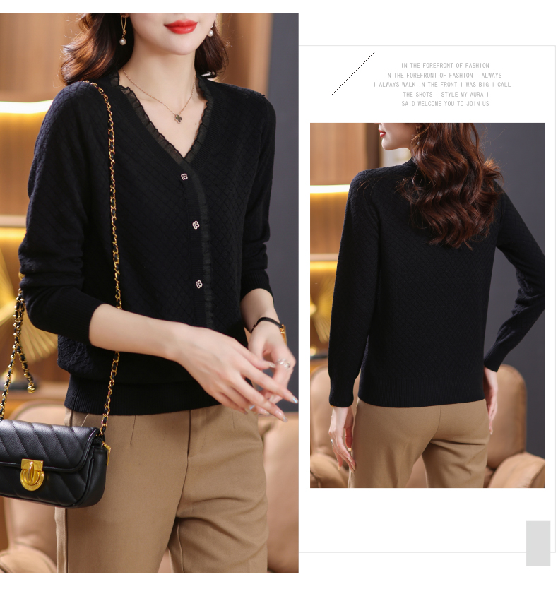 高级感蕾丝花边宽松毛衣打底衫,好看的针织衫上衣厚CC-XFY-3317