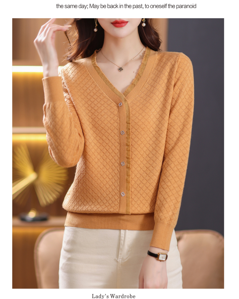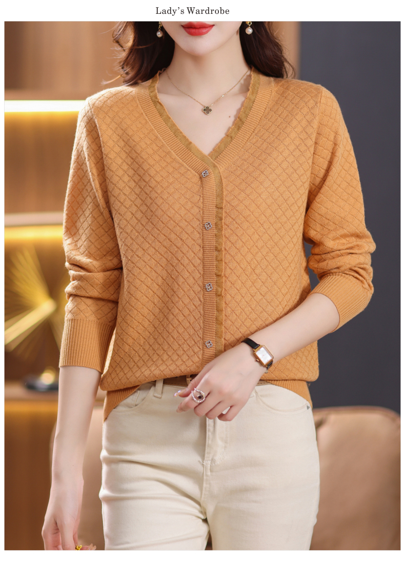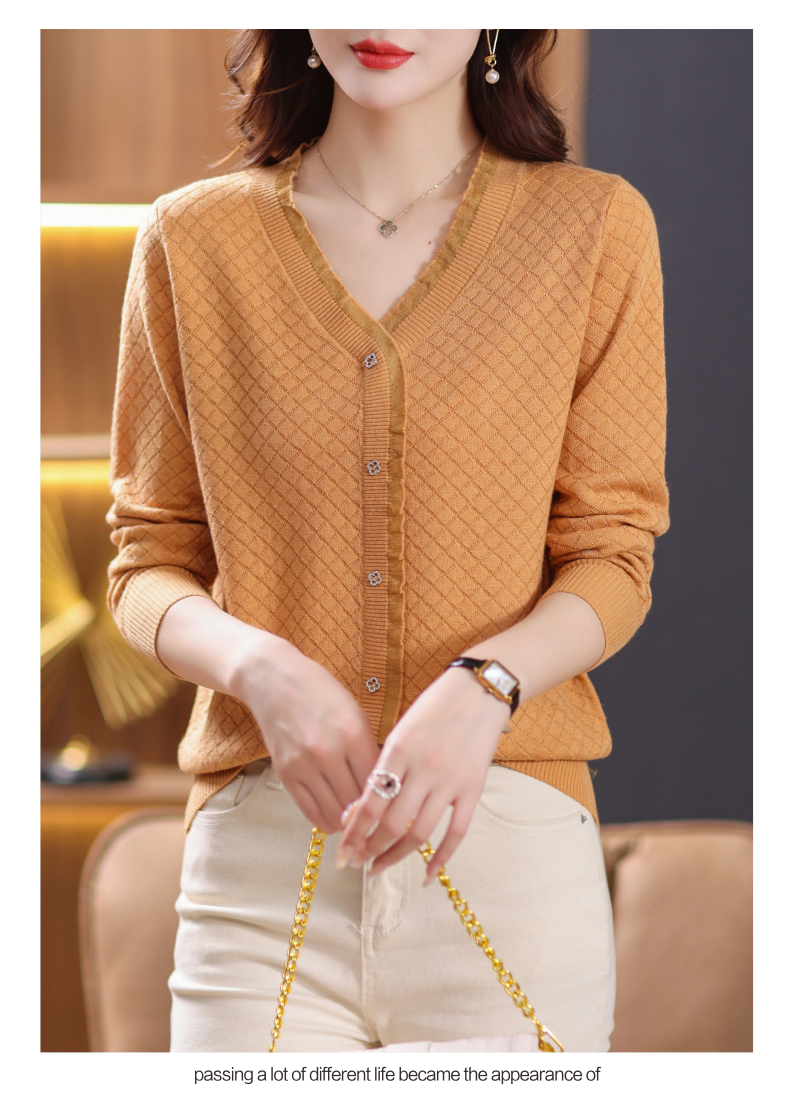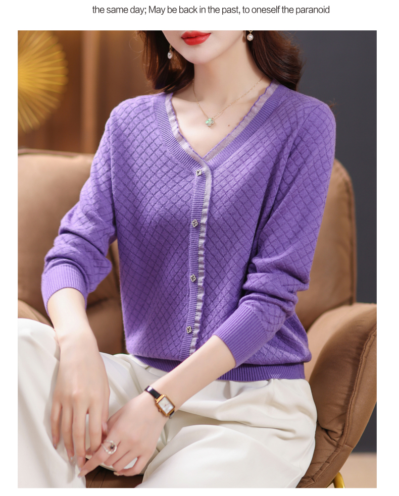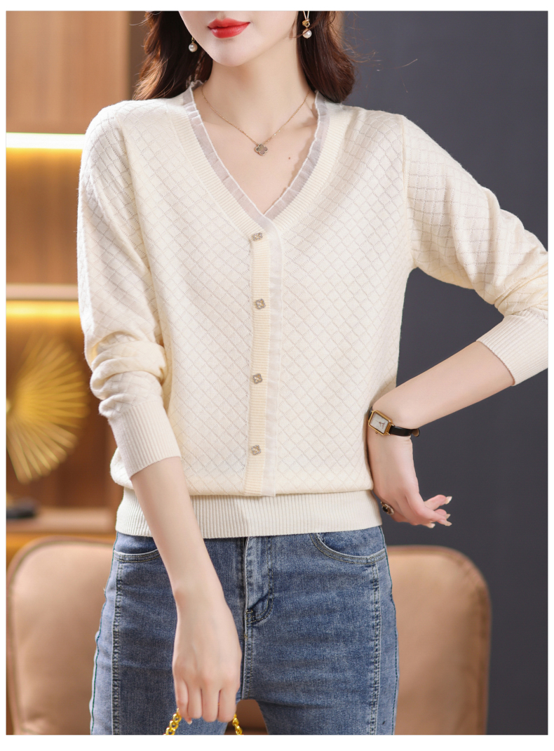 高级感蕾丝花边宽松毛衣打底衫,好看的针织衫上衣厚CC-XFY-3317
