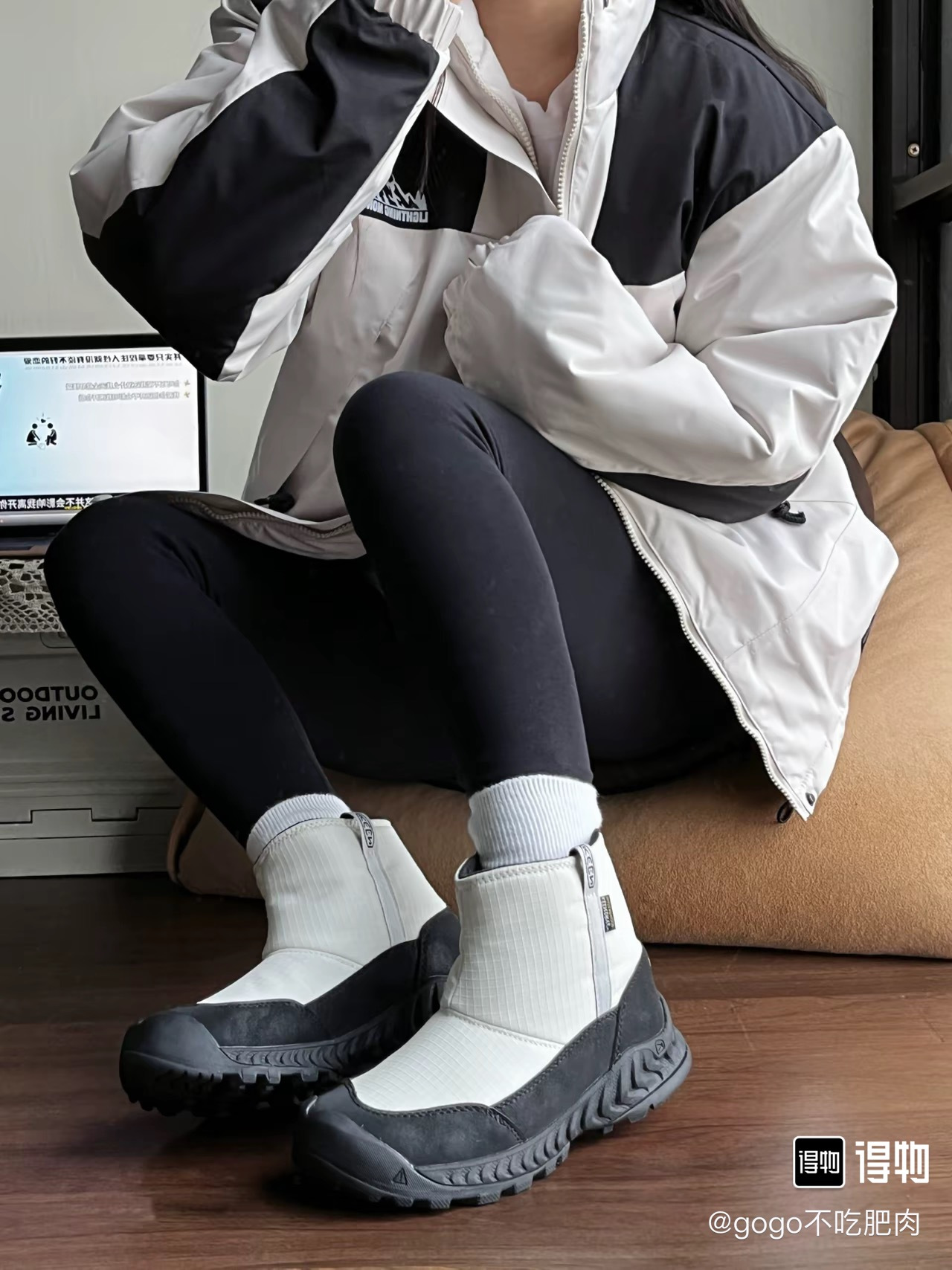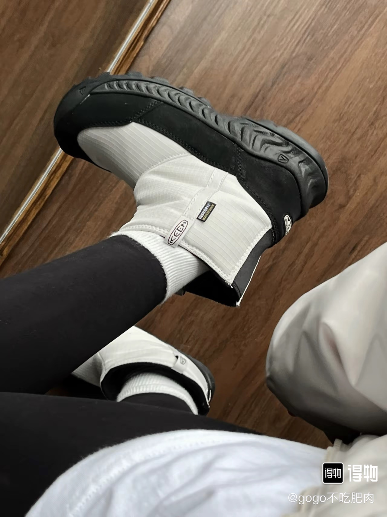 内里100g KEEN.WARM隔热保暖材料⚠️有效锁住暖气 !能够抗住-20度的低温!!!!还有回收PET做的抓绒内衬,软乎乎!脚伸进去瞬间被包裹住 ,像踩在云朵里一样暖呼