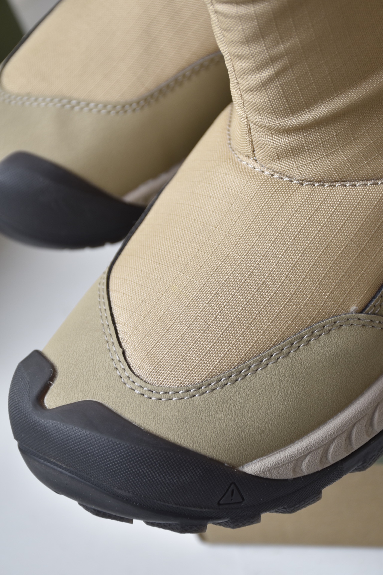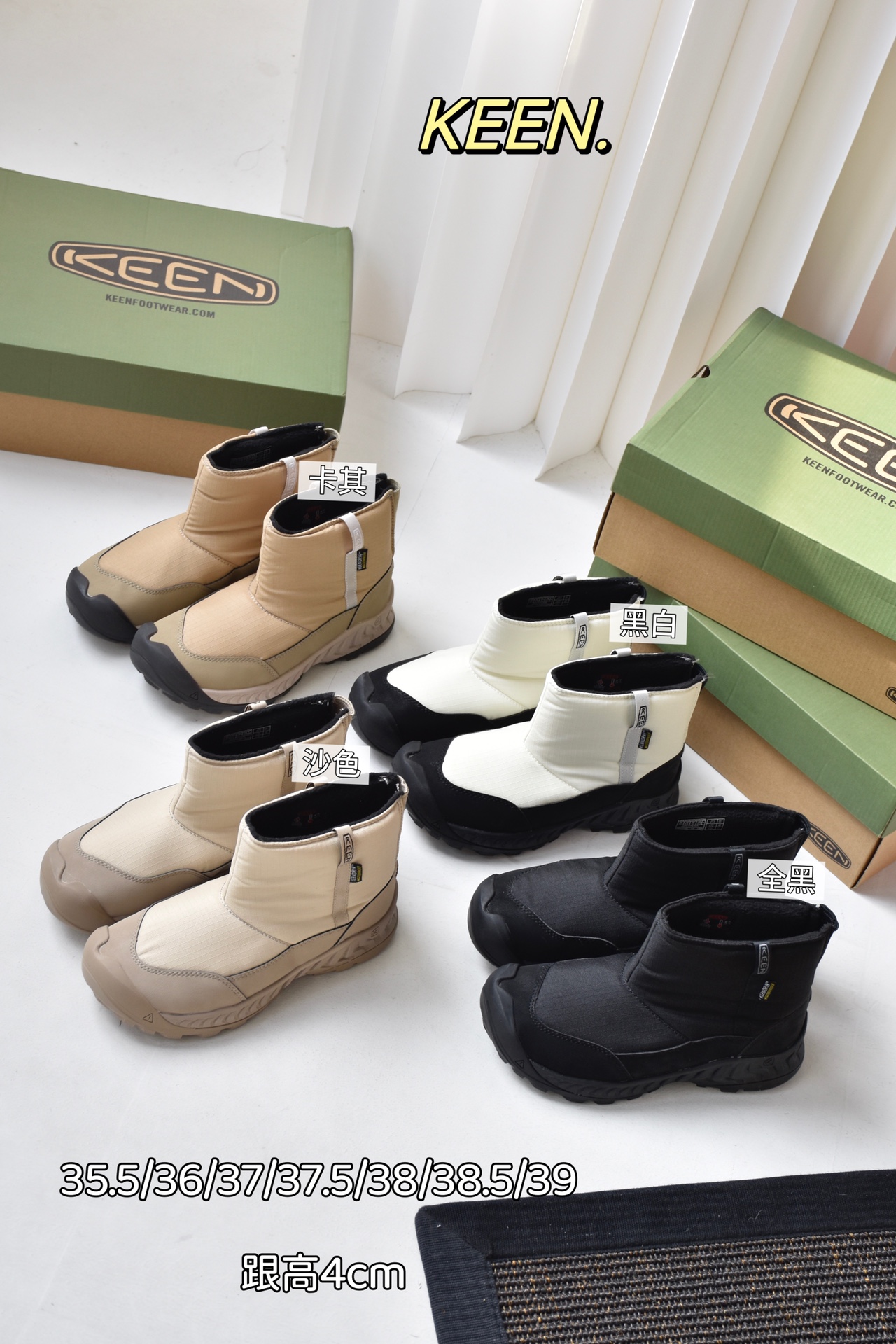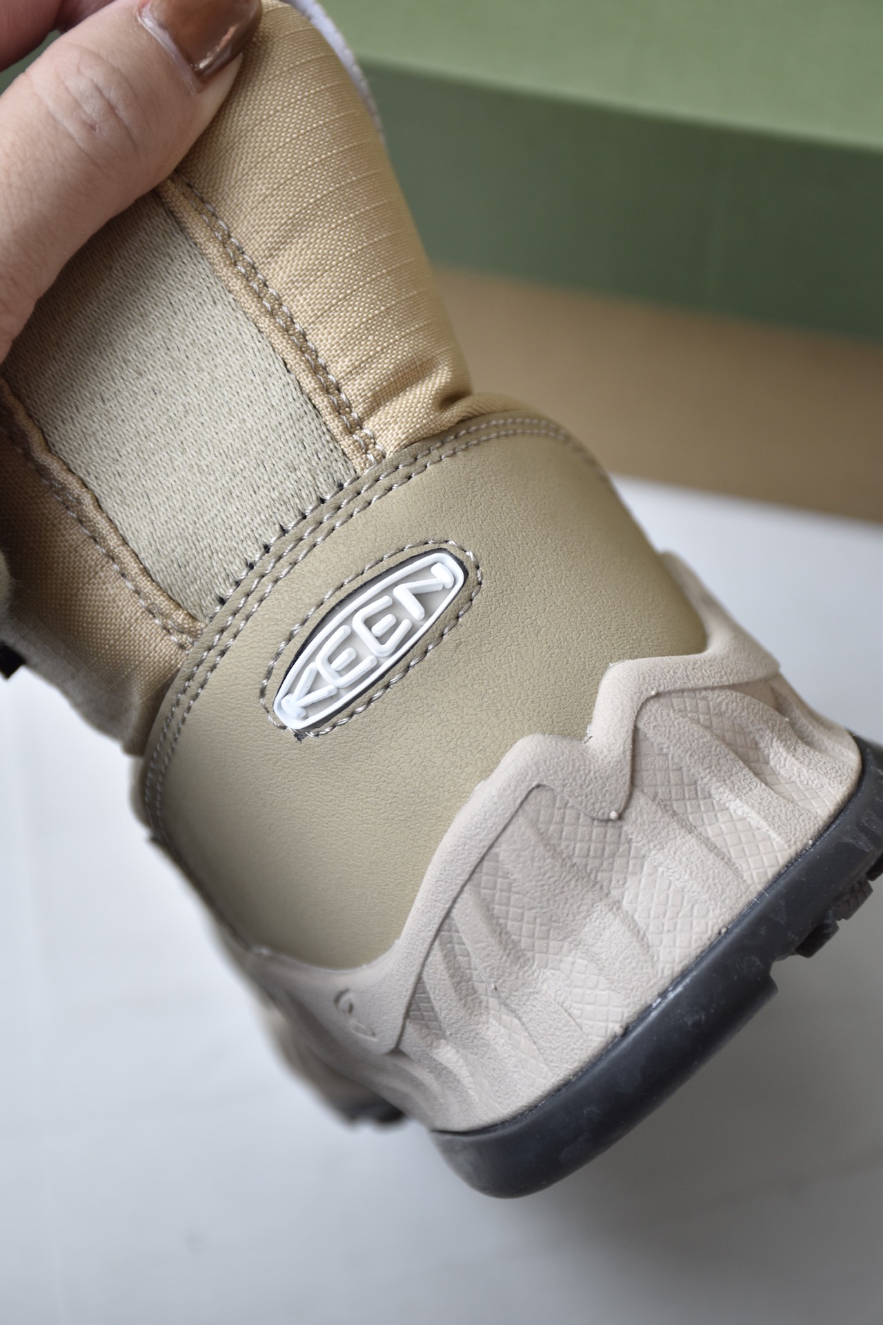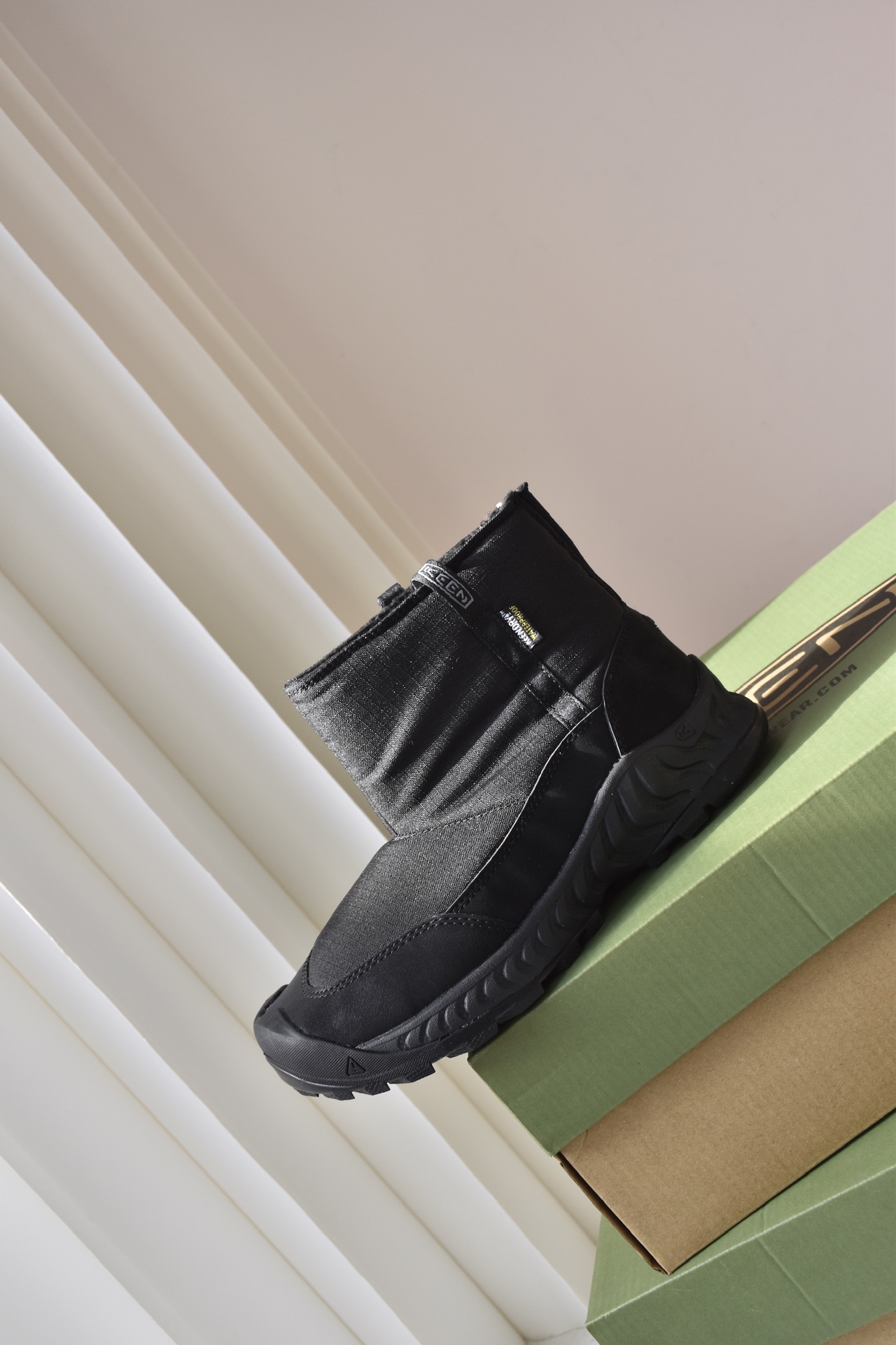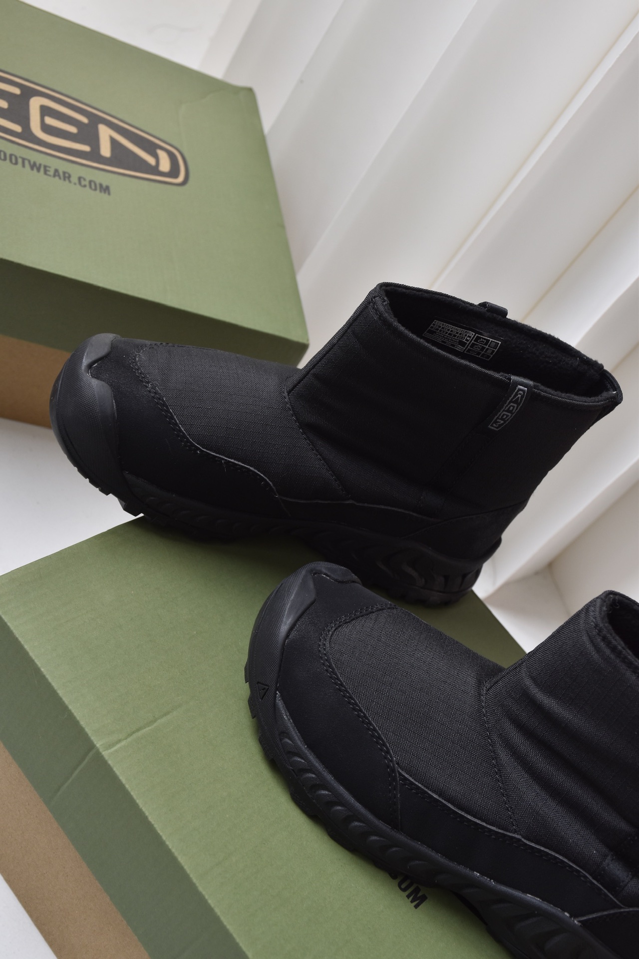 搭载KEEN.DRY防水透气薄膜和100g KEEN.WARM再生PET保温材料,可抵御-4°F/-20°C低温,采用Original Fit宽楦设计,前脚掌空间充足,配有可调节后跟带和FIDLOCK扣具,方便穿脱并提供定制化贴合感,配备压缩成型泡沫中底和可拆卸Luftcell空气注入鞋垫,提供良好的缓冲效果,KEEN.ALL-TERRAIN橡胶外底配4mm多向凸纹,提供卓越抓地力,适应各种复杂地形。