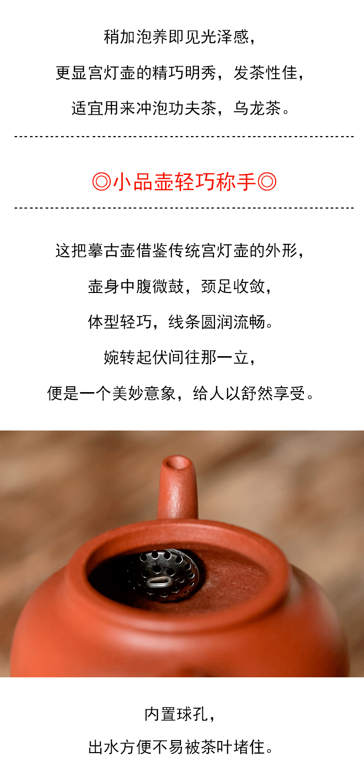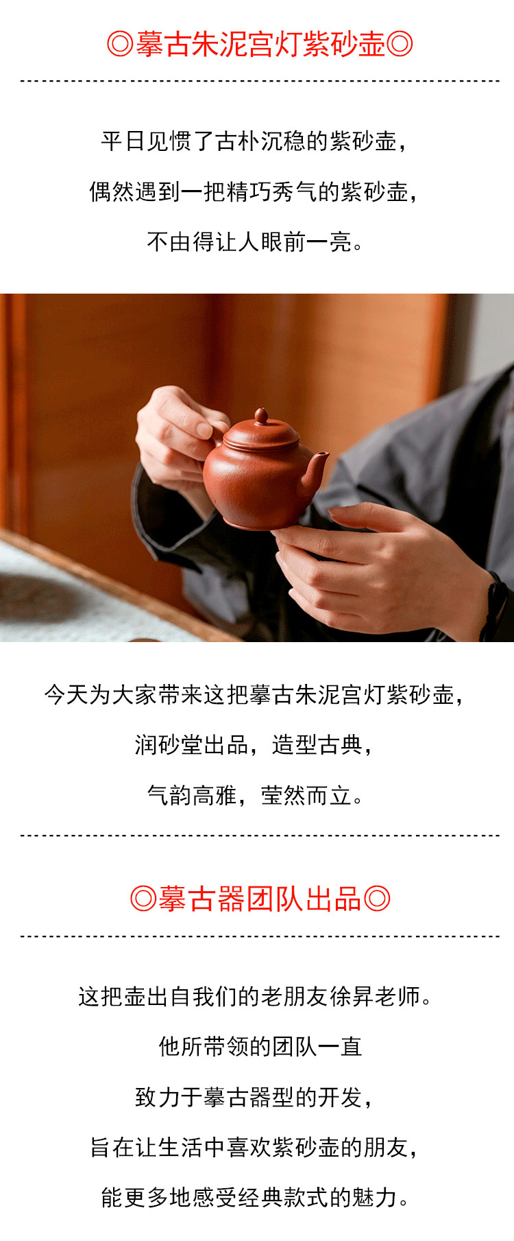 茶香记 摹古朱泥宫灯紫砂壶 复刻经典 摹古清代经典款 原矿朱泥料 器型百搭 轻巧称手