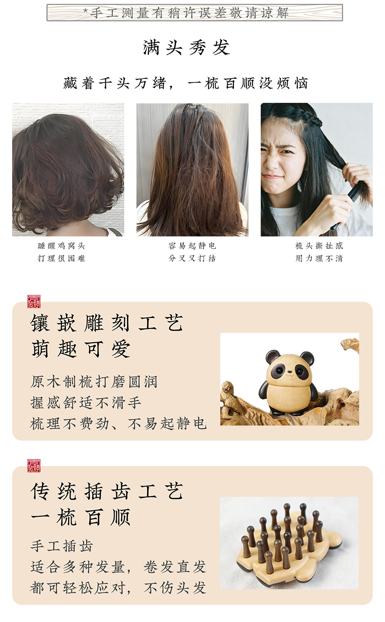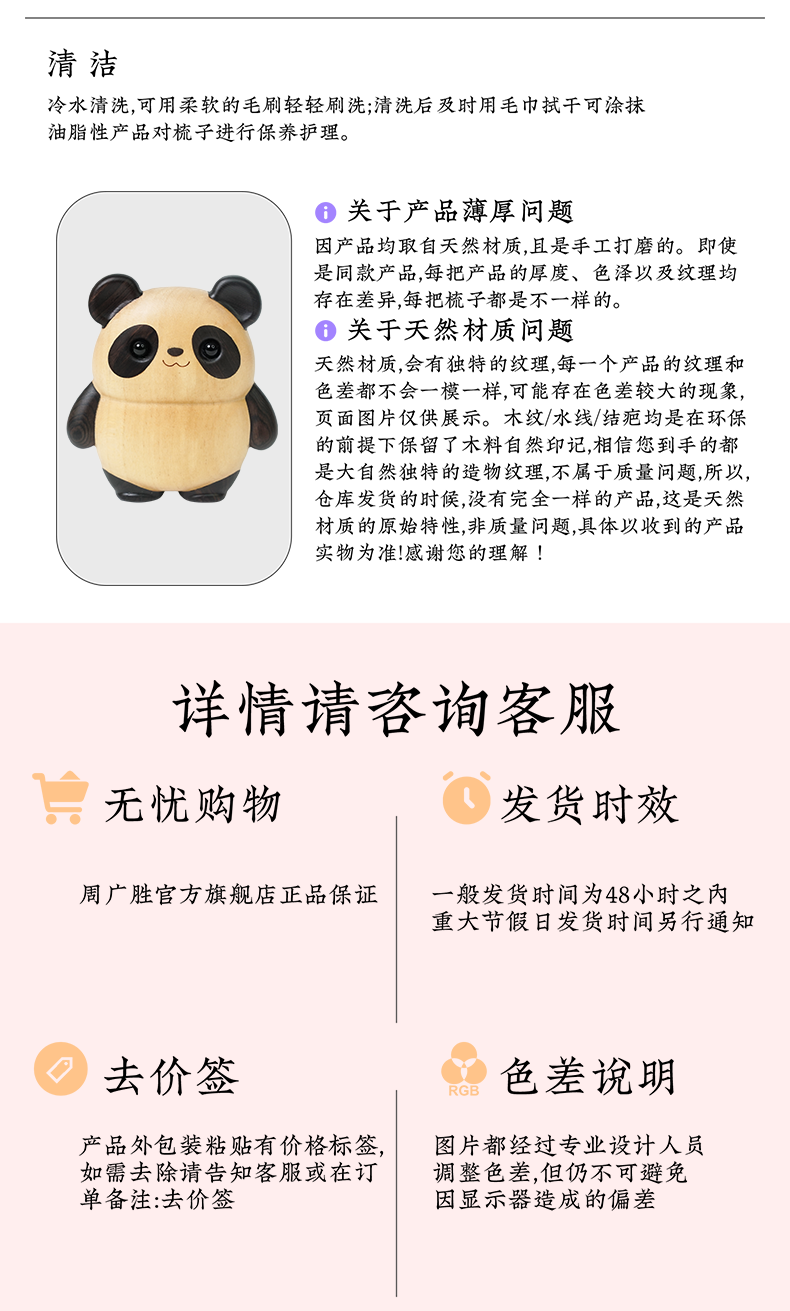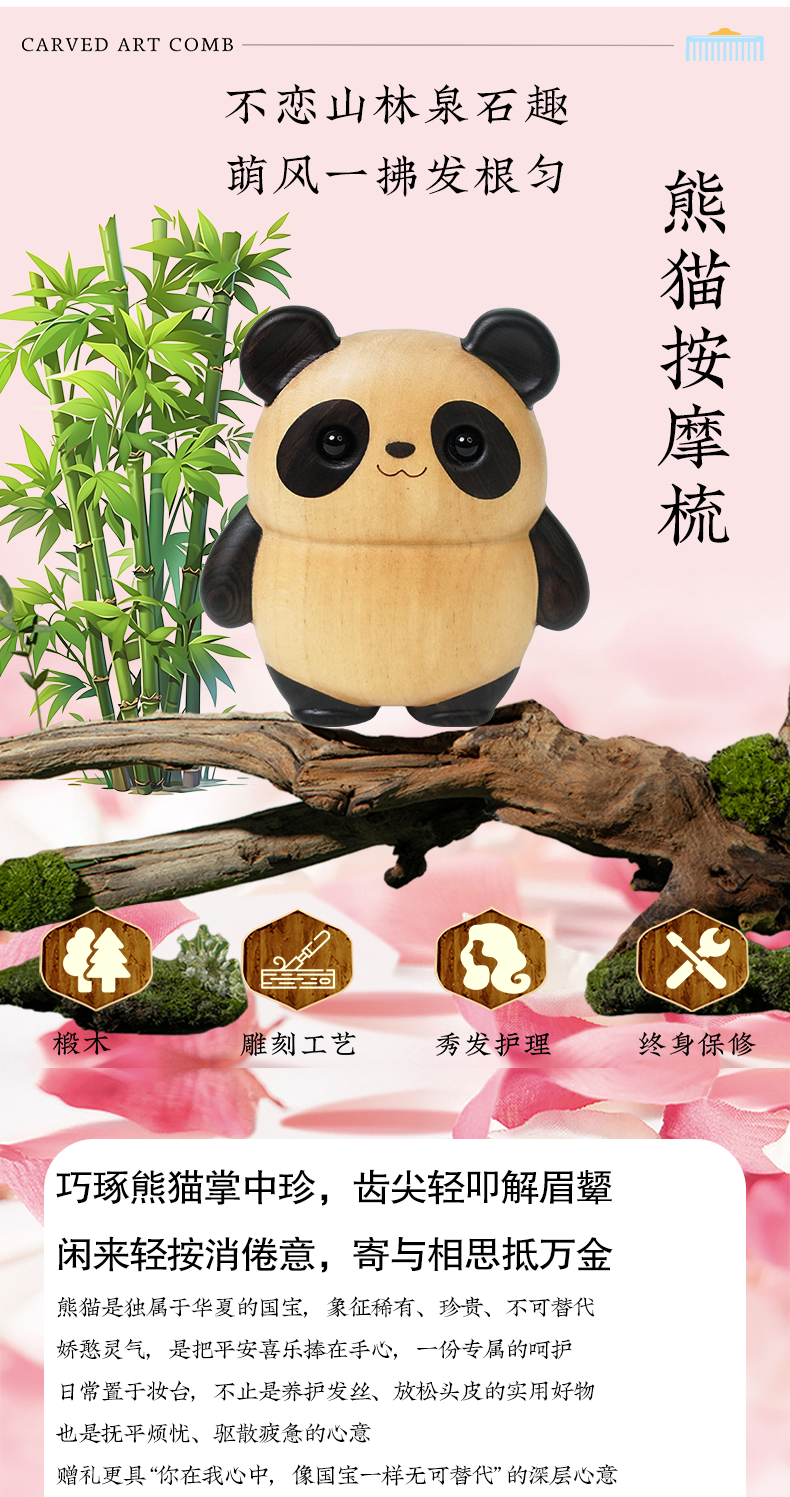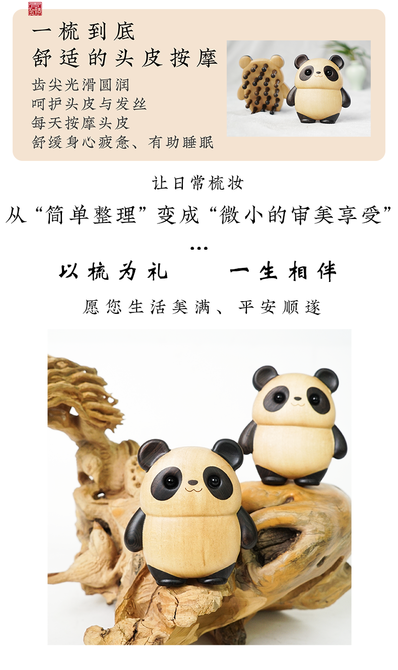 周广胜新品创意熊猫造型经络按摩梳家用护发蓬发礼盒女士专用送礼