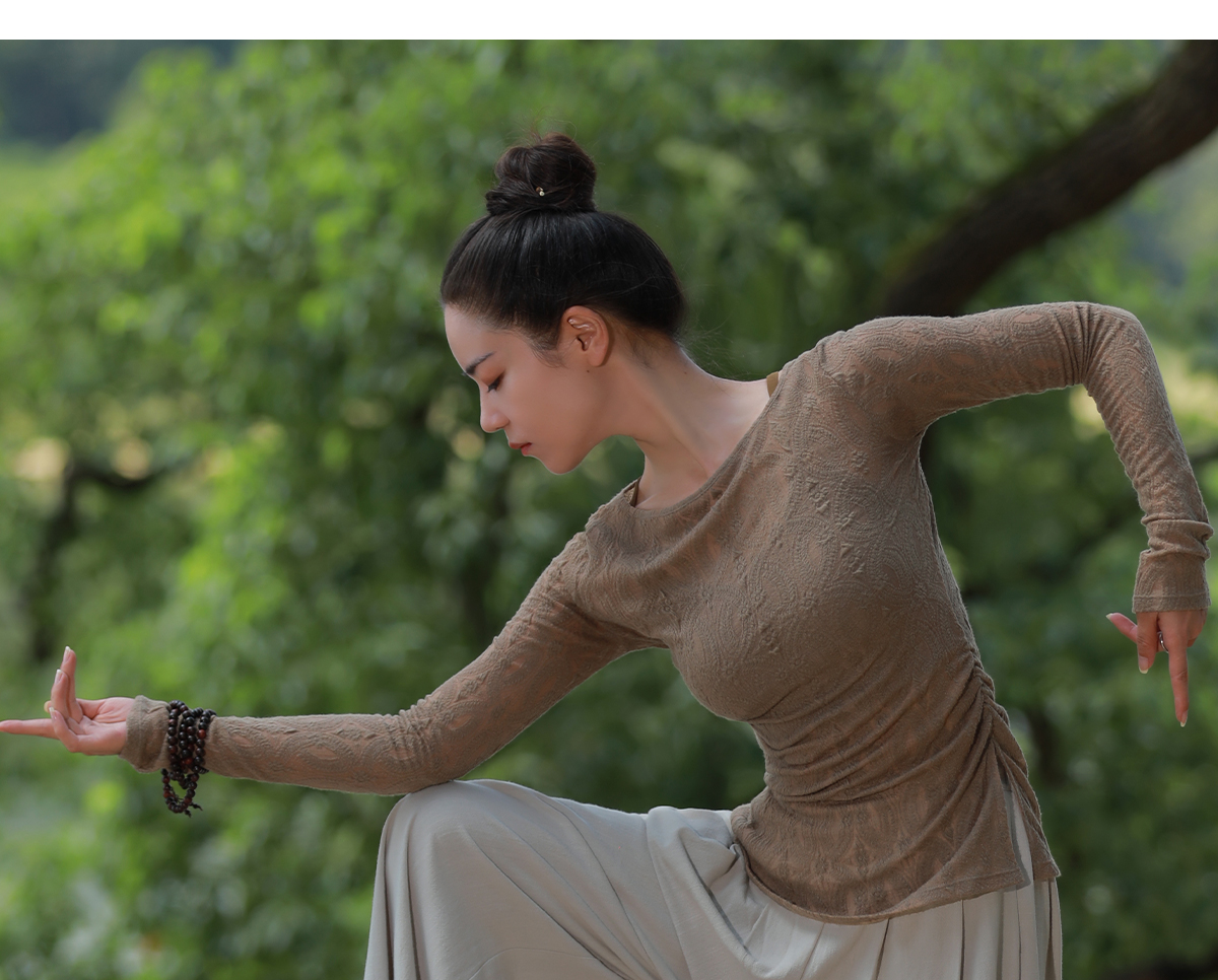 爱暇步国风新中式瑜伽上衣长袖女2025秋冬新款修身运动健身衣T恤