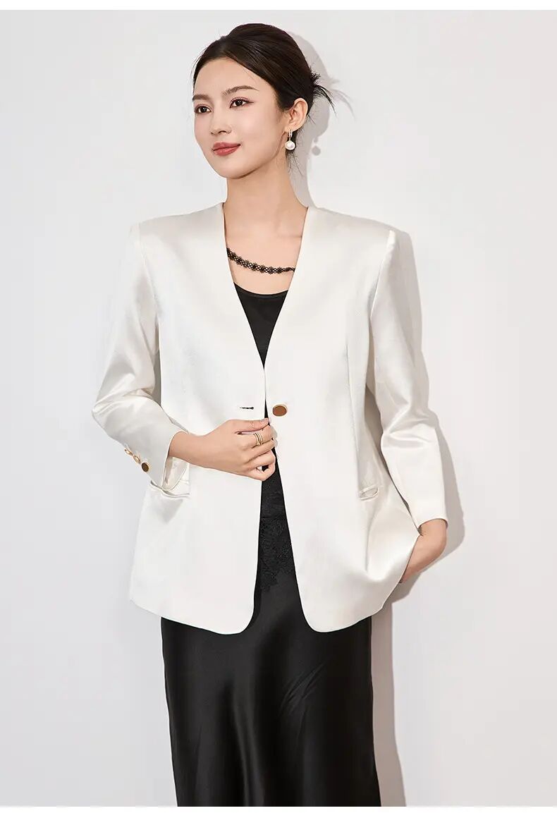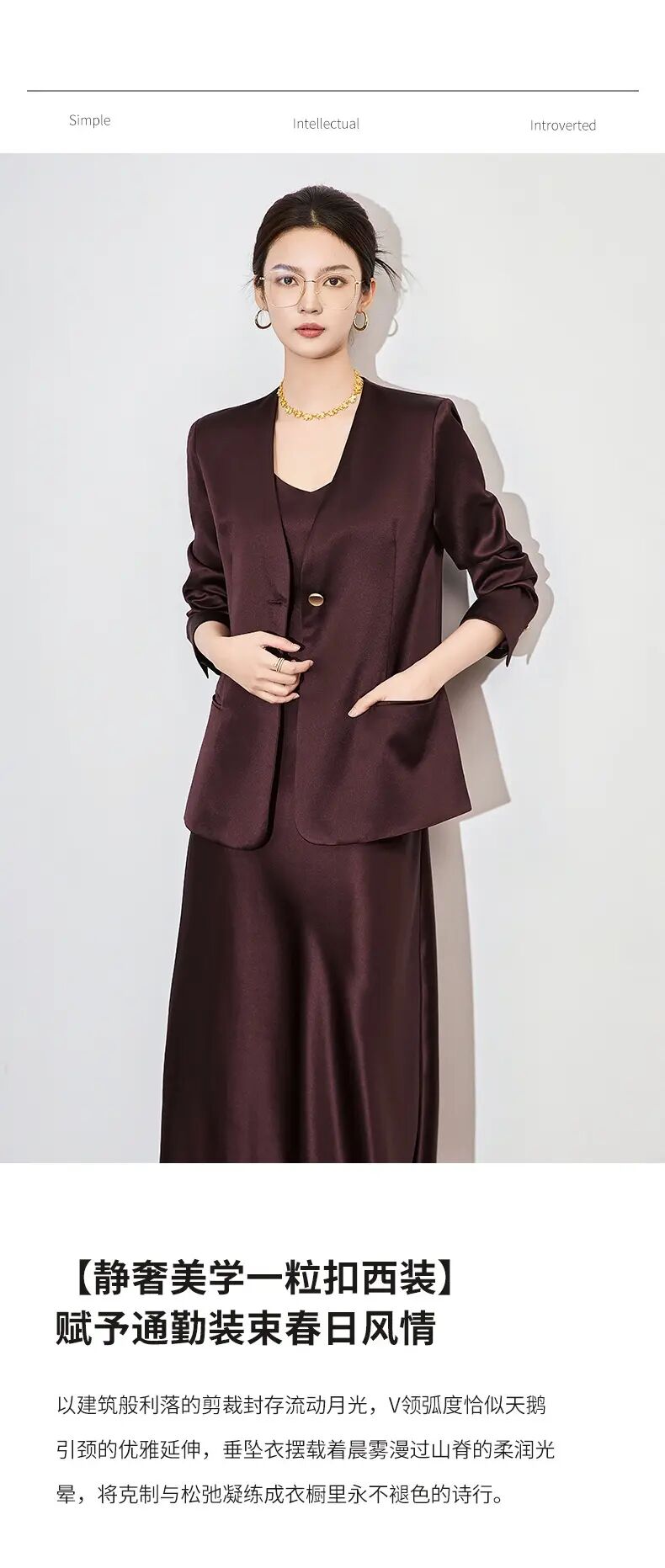 【高货wl】全新升级【铂金会员385/天猫519/差价134】(05441) 洛诗琳新款静奢高级感醋酸垂坠立裁V领简约气质女西装外套