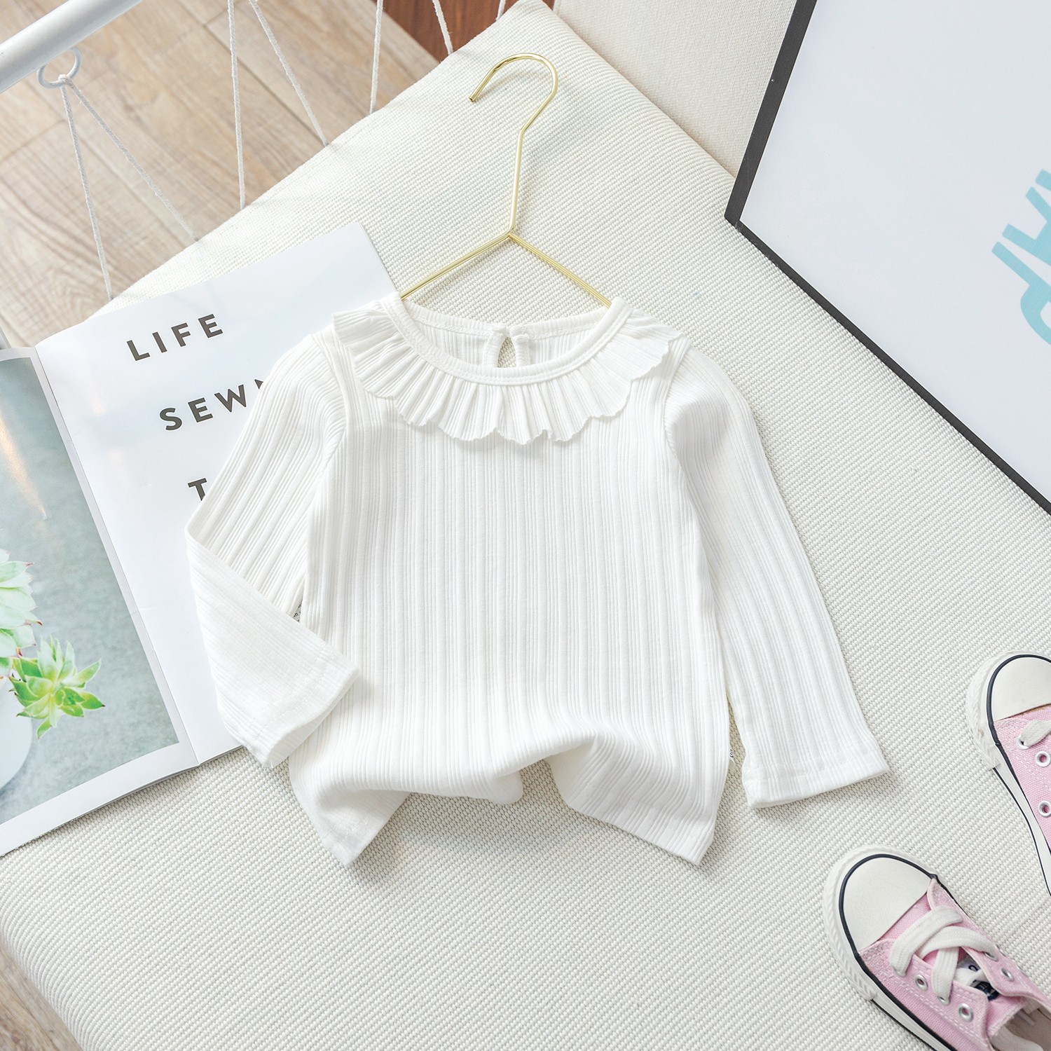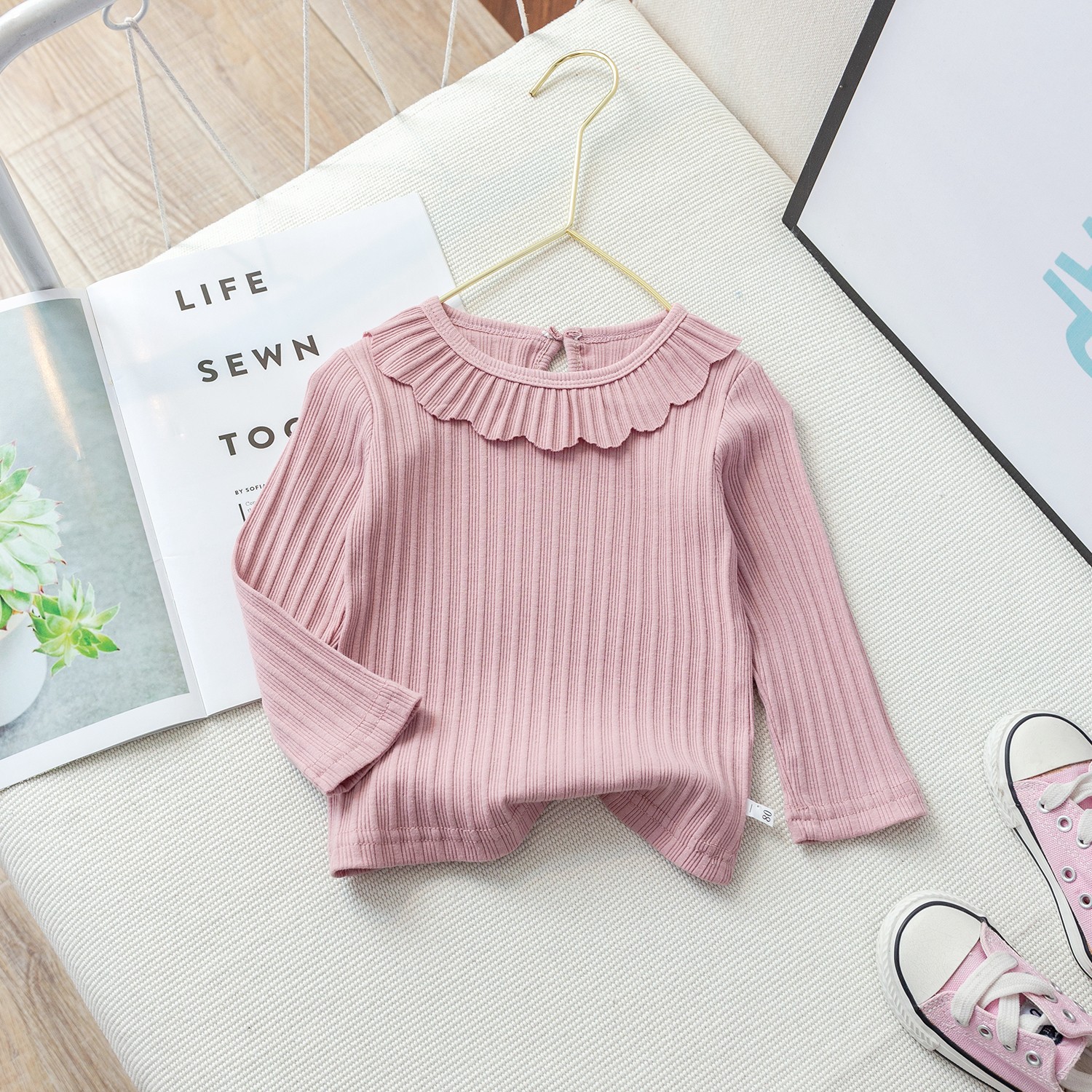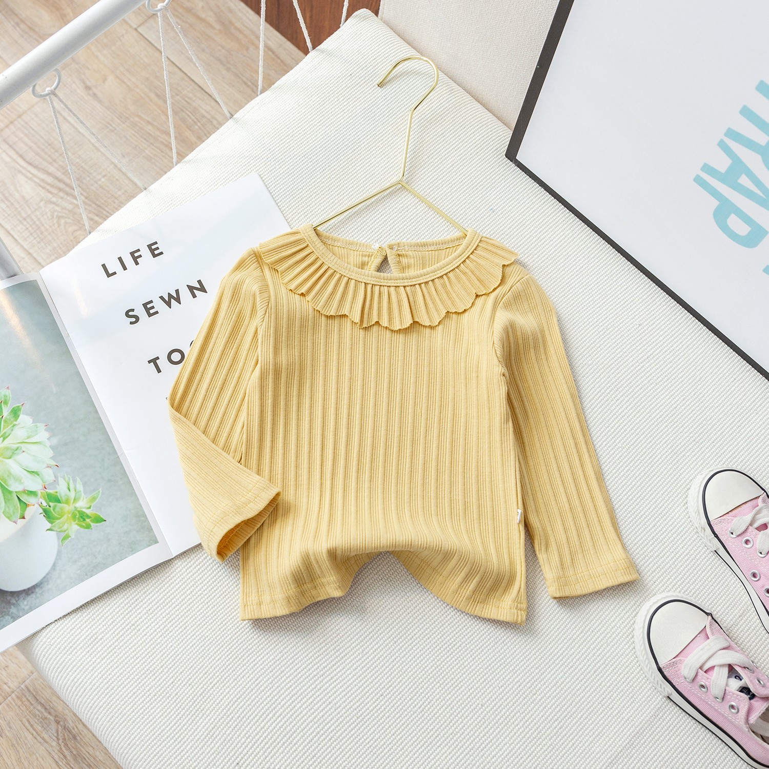 【采用纯棉面料制成,质地薄款透气!】女童长袖T恤2023春季新款儿童纯色薄款长袖打底衫中小童纯棉翻领Tlm