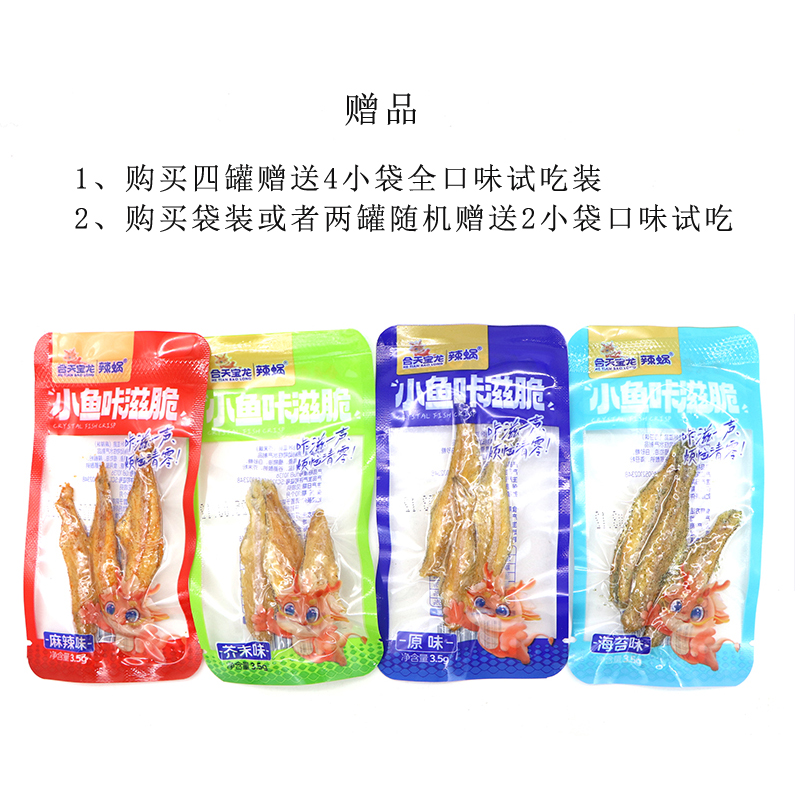 品名:小鱼咔滋脆规格1、35g*2罐,原味 规格2、35g*2罐,海苔味 规格3、35g*2罐,芥末味 规格4、35g*2罐,辣味 规格5、35g*2罐,原味+海苔各1罐 规格6、35g*2罐,原味+辣味各1罐 规格7、35g*2罐,海苔+辣味各1罐 备注:2罐装送3.5g/袋*2袋小鱼咔滋脆,四口味随机发,活动到8.31号晚上12点结束规格8、35g*4罐,原味规格9、35g*4罐,海苔味 规格10、35g*4罐,芥末味 规格11、35g*4罐,辣味 规格12、35g*4罐,四口味各1罐 规格13、35g*4罐,原味+辣味各2罐 规格14、35g*4罐,海苔+辣味各2罐 备注:4罐装送3.5g/袋*4袋小鱼咔滋脆,四口味随机发,活动到8.31号晚上12点结束 包装方式:罐装 快递:中通,极兔; 运费模板: 【不发货地区】新疆、西藏、内蒙古、港澳台 【加费区域】青海、宁夏、甘肃、黑龙江、吉林、辽宁+2元; 发货时效:48小时内 发货地/产地:广西北海市 保质期:10个月 销售售卖期:全年 周六周天、节假日除外,早上十点之前的订单是48小时发货 ,到货时间约为2-5天,请您耐心等待 |