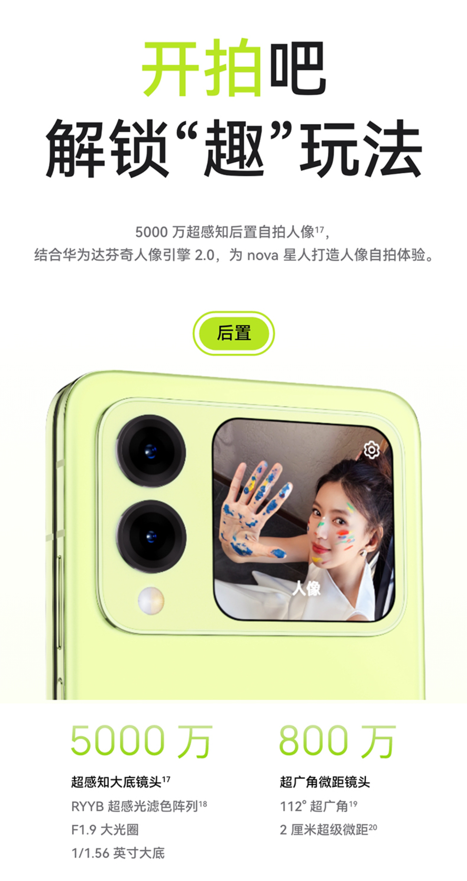 华为(HUAWEI)nova Flip S 小折叠 120万次弯折耐久认证 鸿蒙AI趣玩 悬停自拍智能