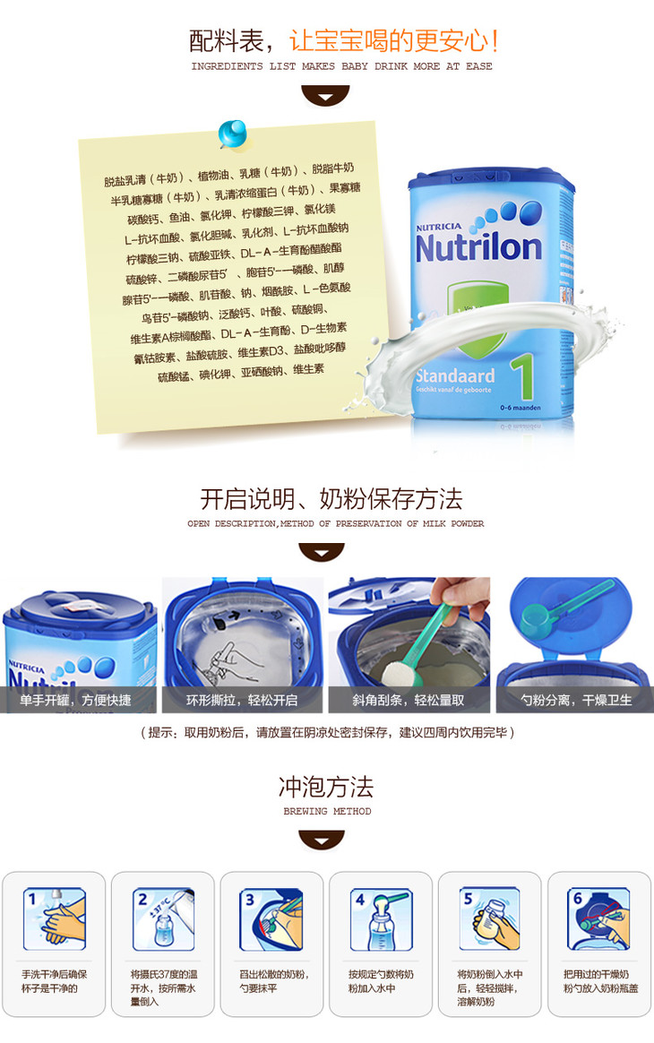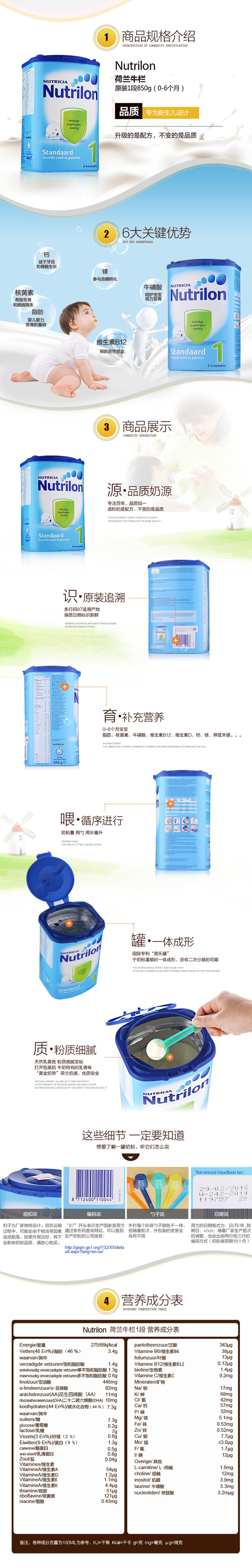 【海外直邮】荷兰牛栏奶粉Nutrilon 1段(0-6个月)850g