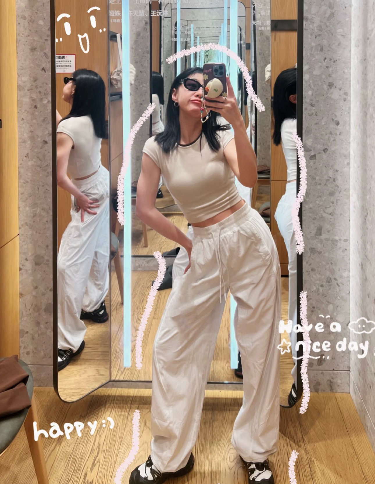 以高包容性为核心 适合多场景切换。轻盈丝滑的体感上身超舒适 仿若无物!面料自带褶皱纹理感 非常复古时尚,宽松版型裁剪休闲松弛无任何束缚感 轻松解决跨宽腿粗等问题 基础百搭不挑人!臀线设计让臀部更加圆润有型 轻松提臀优化比例,休闲通勤或健身运动都超好穿~