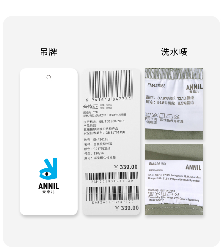男女童全腰梭织长裤防蚊裤夏季新款安奈儿童装EM426183