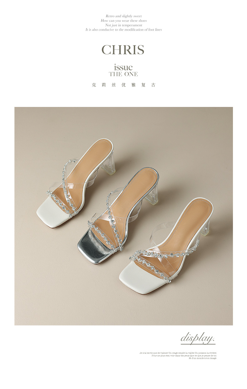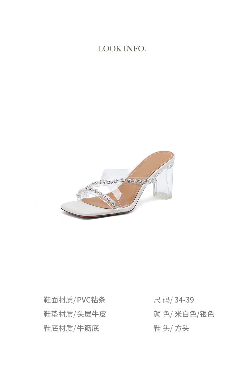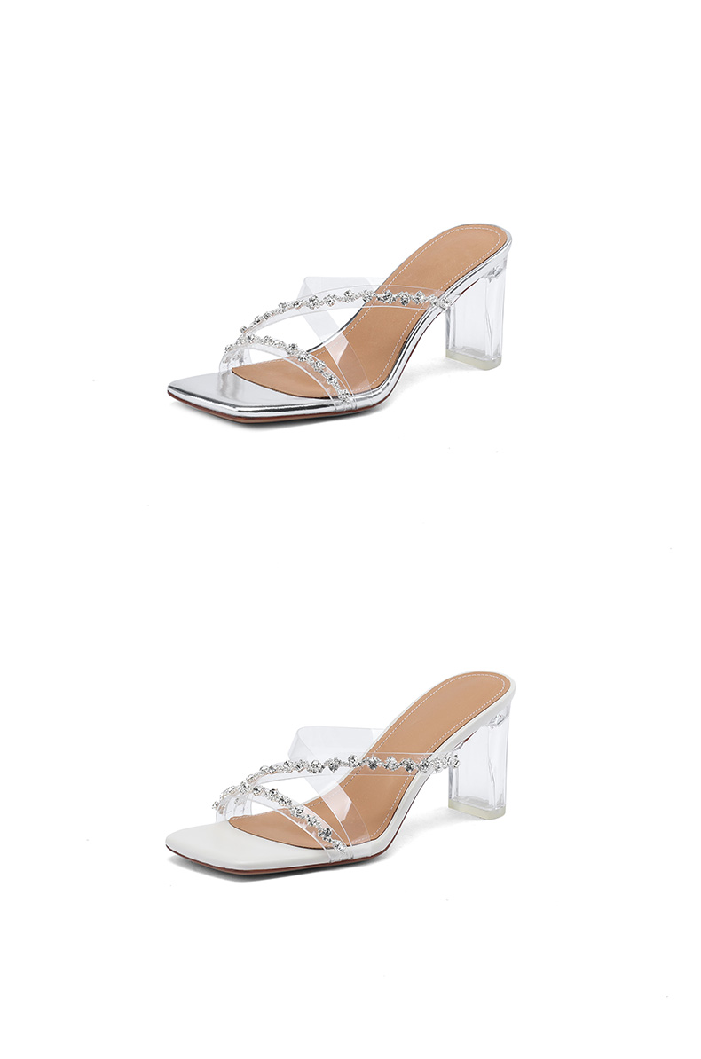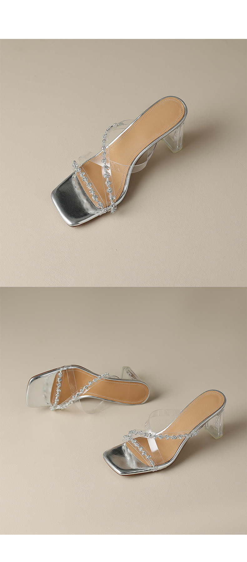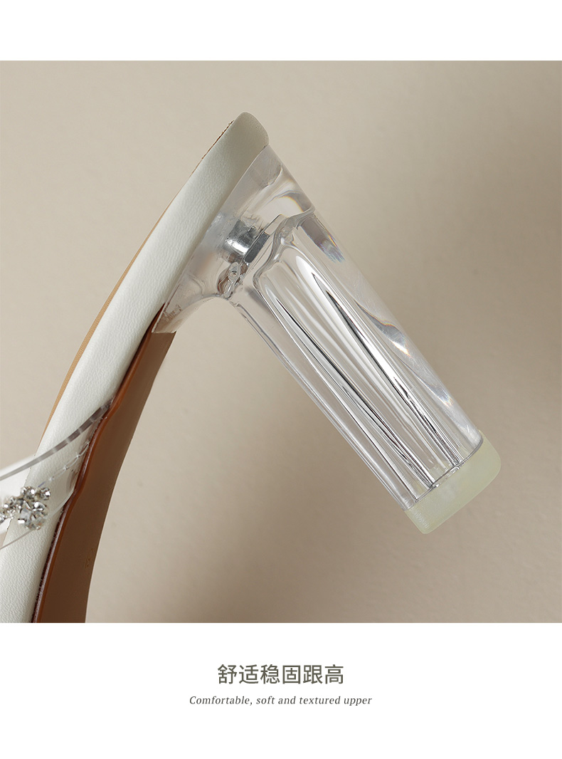 时尚优雅,PVC钻条水晶跟高跟凉拖HBP-5373