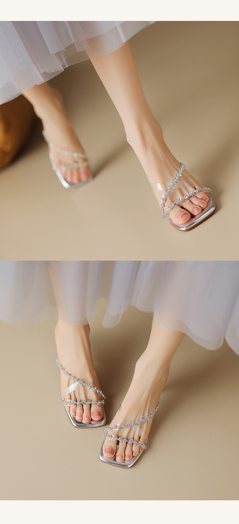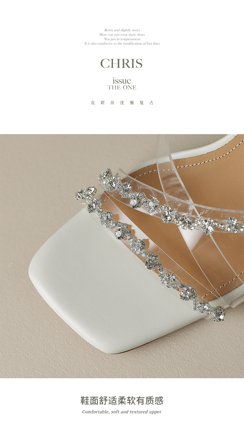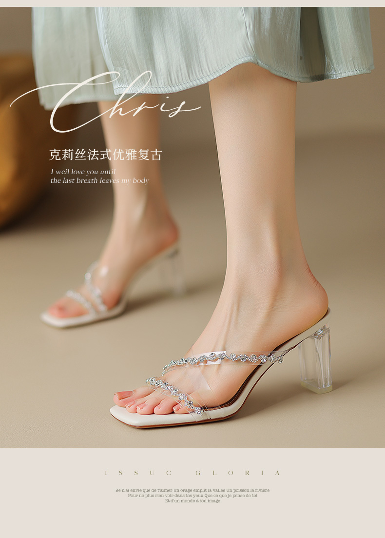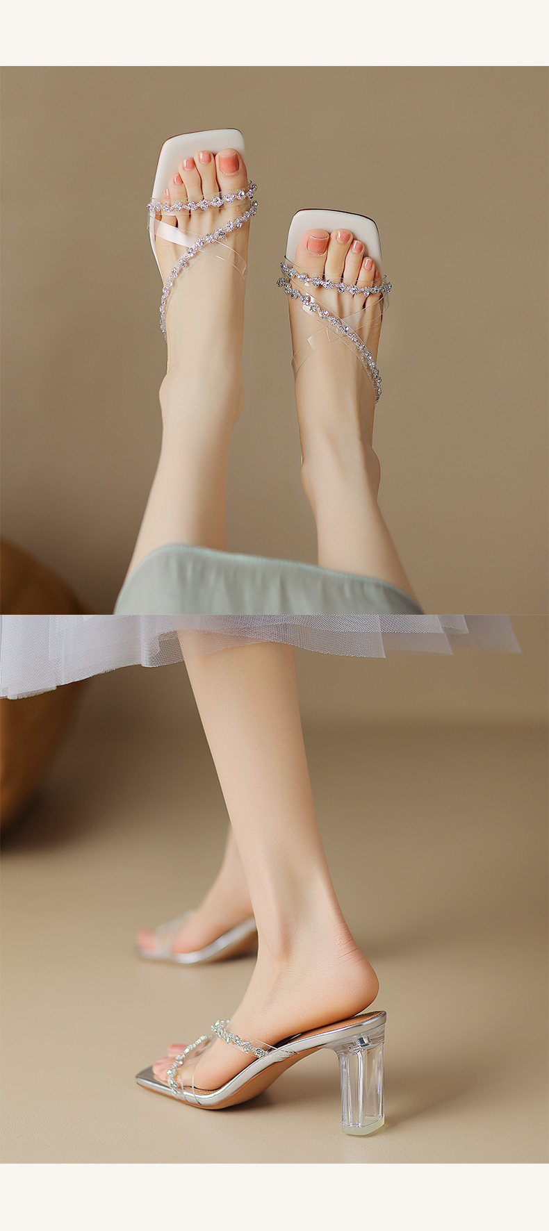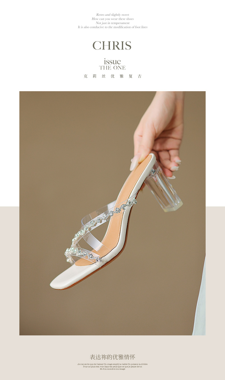 时尚优雅,PVC钻条水晶跟高跟凉拖HBP-5373