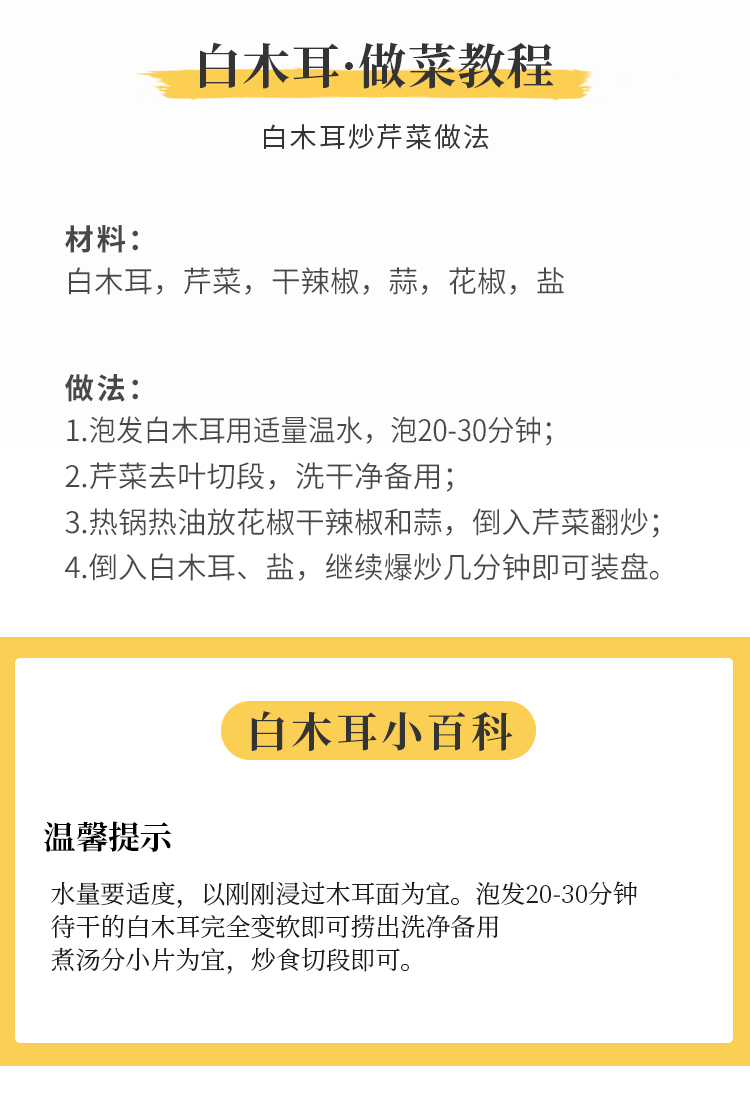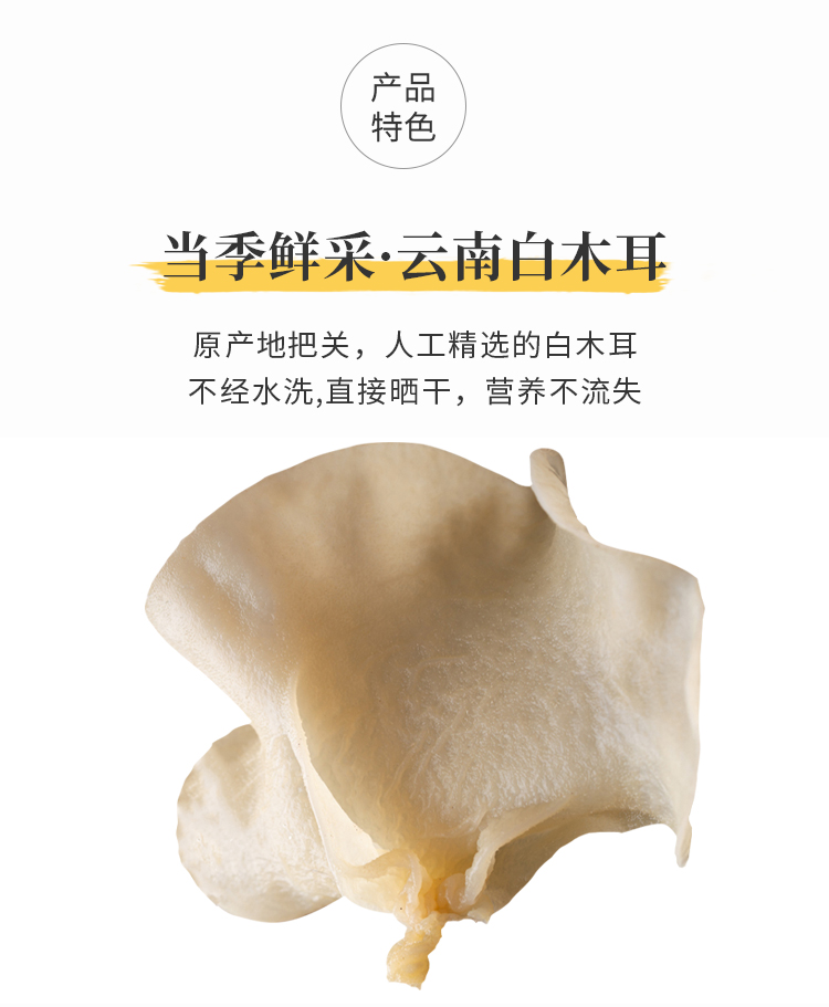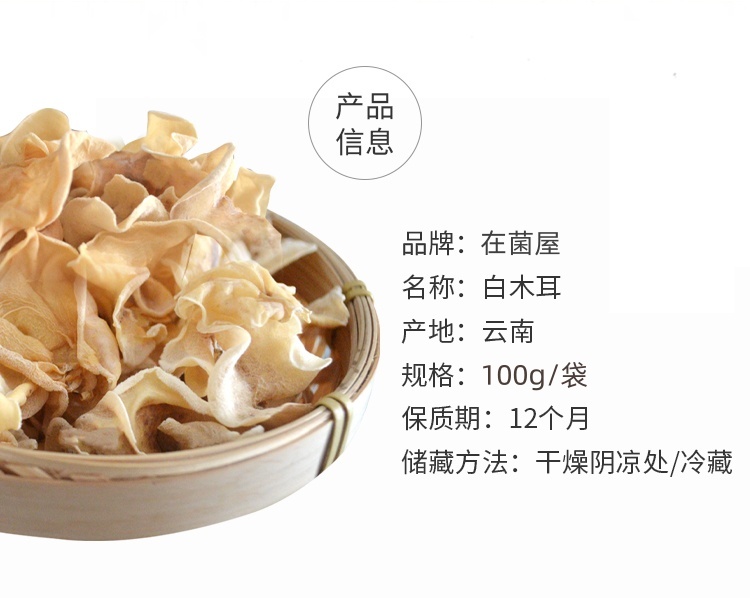 在菌屋 云南农家白玉木耳100g/袋 10斤鲜耳晒1斤干玉耳