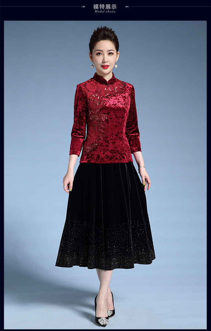 MY-5878秋装新款喜婆婆婚宴丝绒两件套套装
