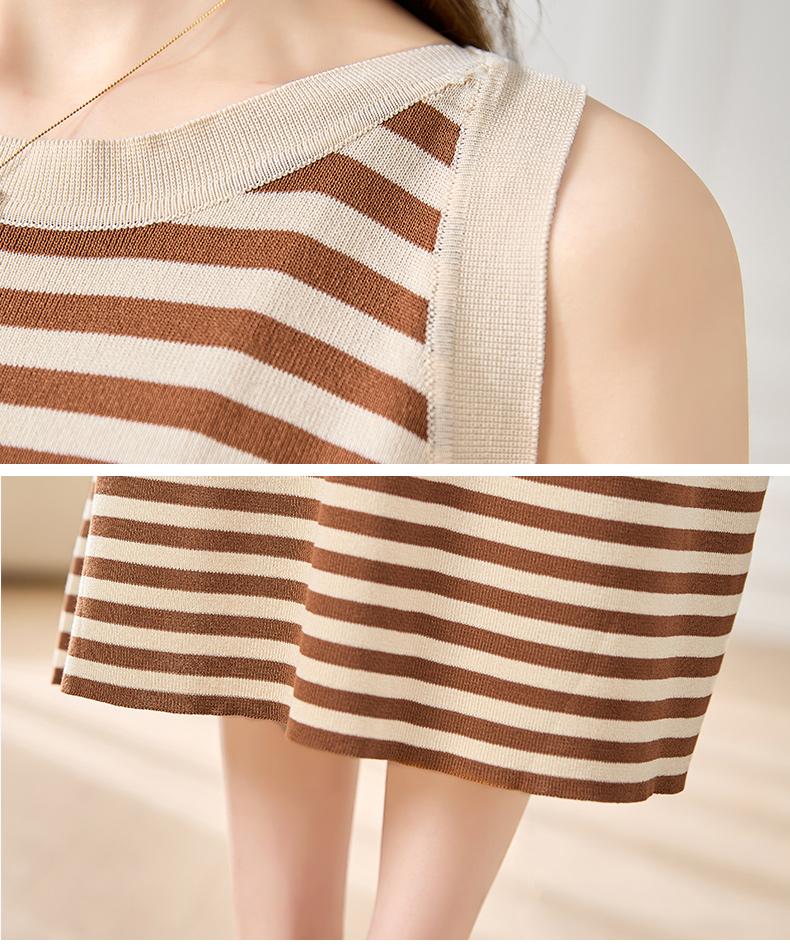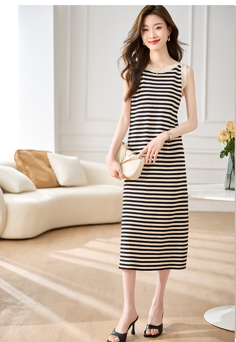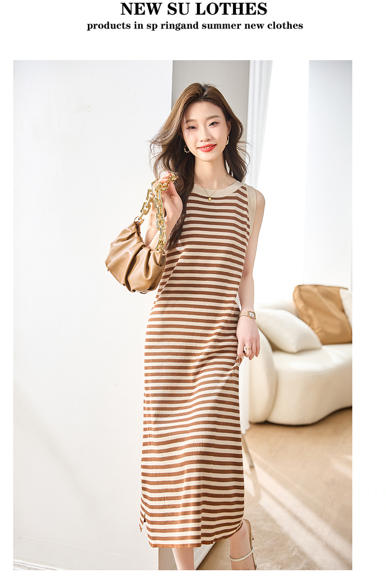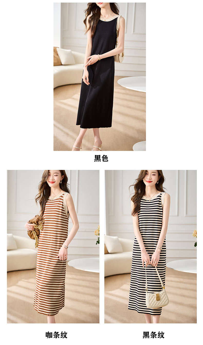 条纹针织连衣裙,新款夏季冰丝长款过膝遮肚子显瘦裙子背心裙CC-AB86075
