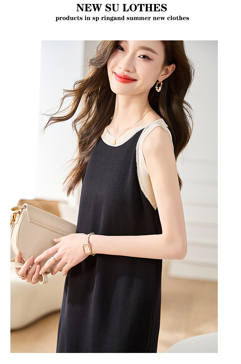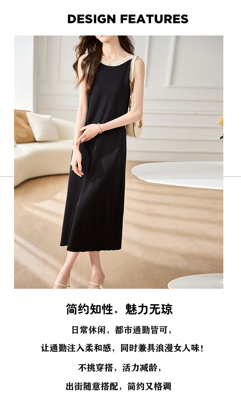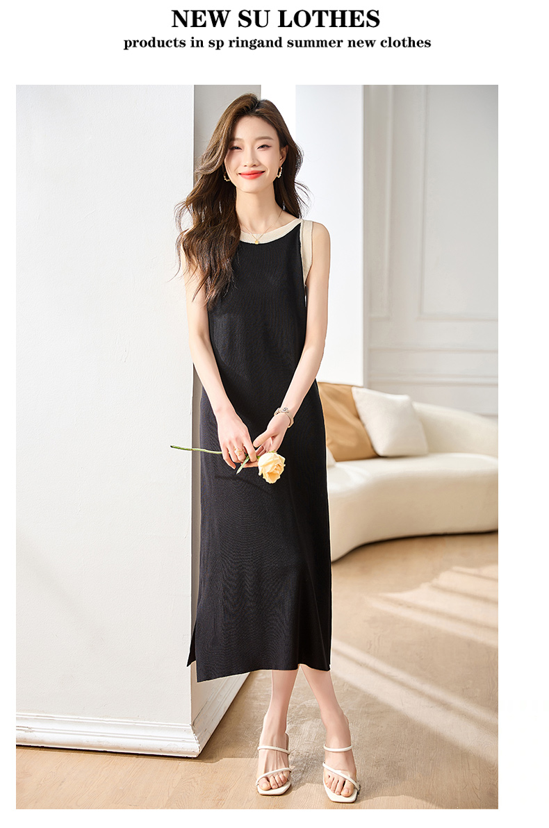 条纹针织连衣裙,新款夏季冰丝长款过膝遮肚子显瘦裙子背心裙CC-AB86075