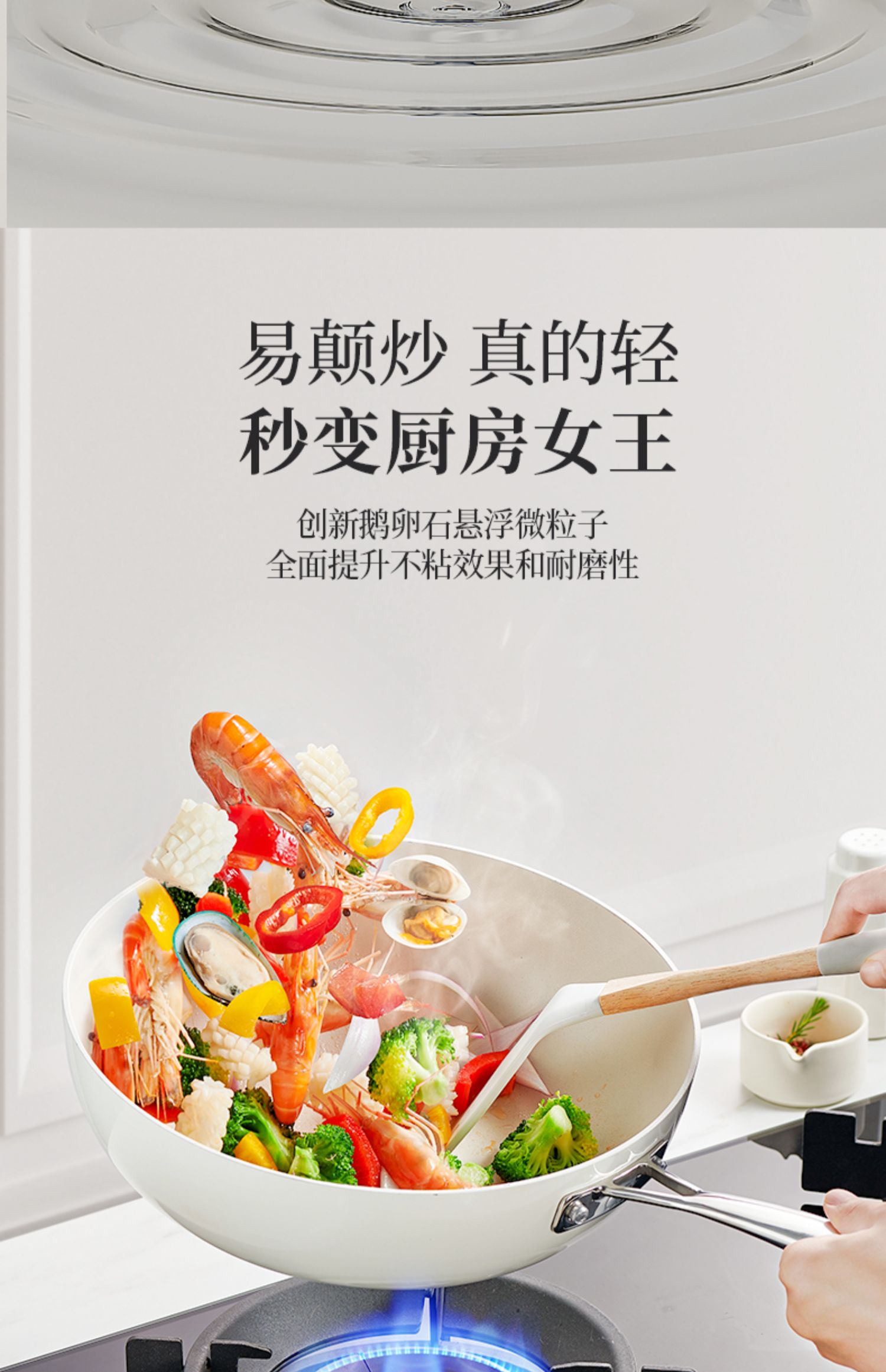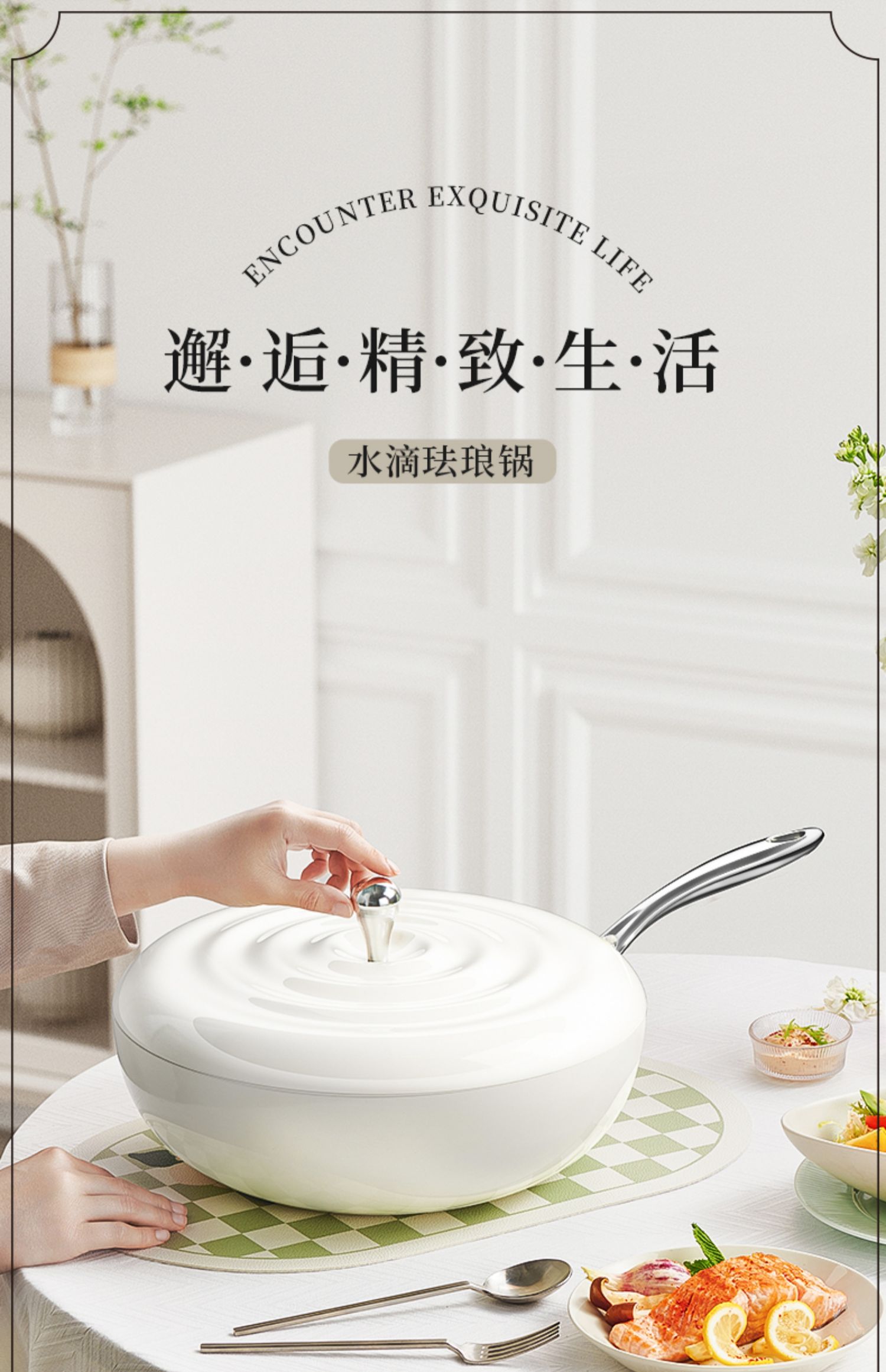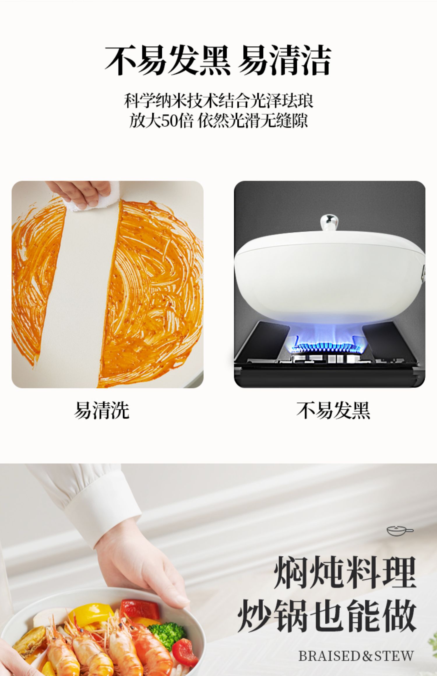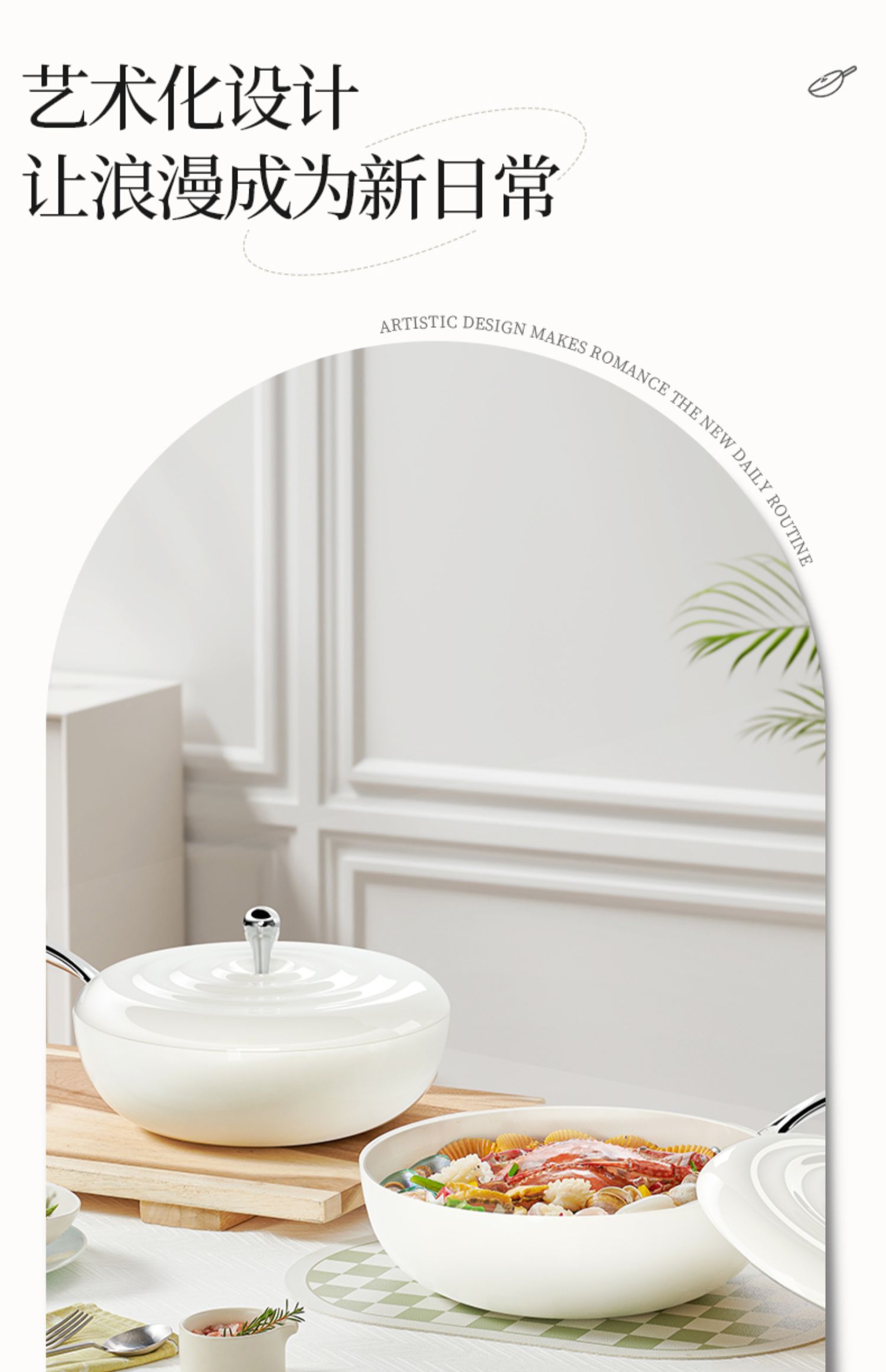 摩登主妇珐琅锅家用炒菜炒锅电磁炉燃气灶通用煎煮锅平底锅