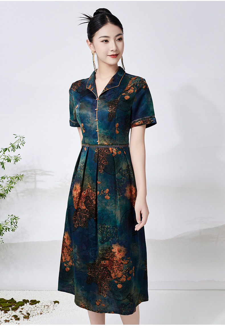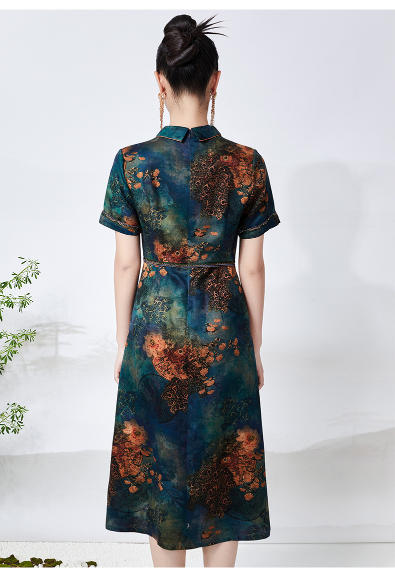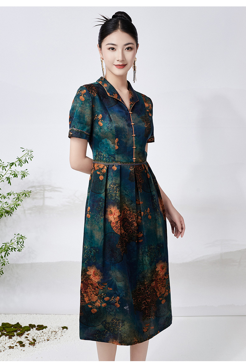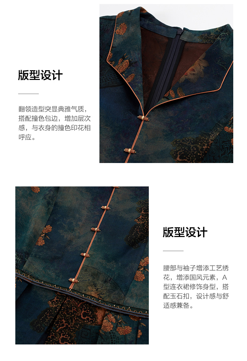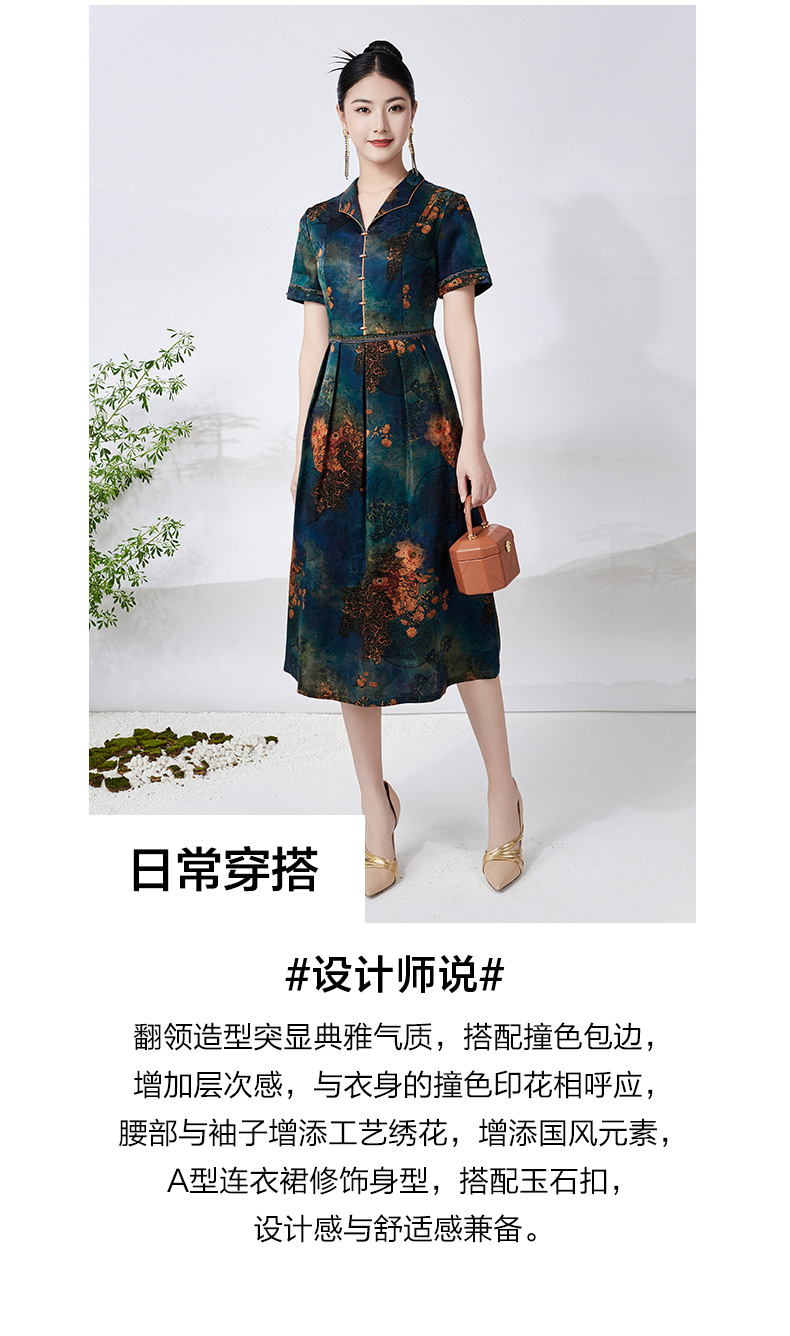 【静荷听雨图】【香云纱】乔万尼真丝连衣裙重磅26mm桑蚕丝收腰气质富贵感ET2E282
