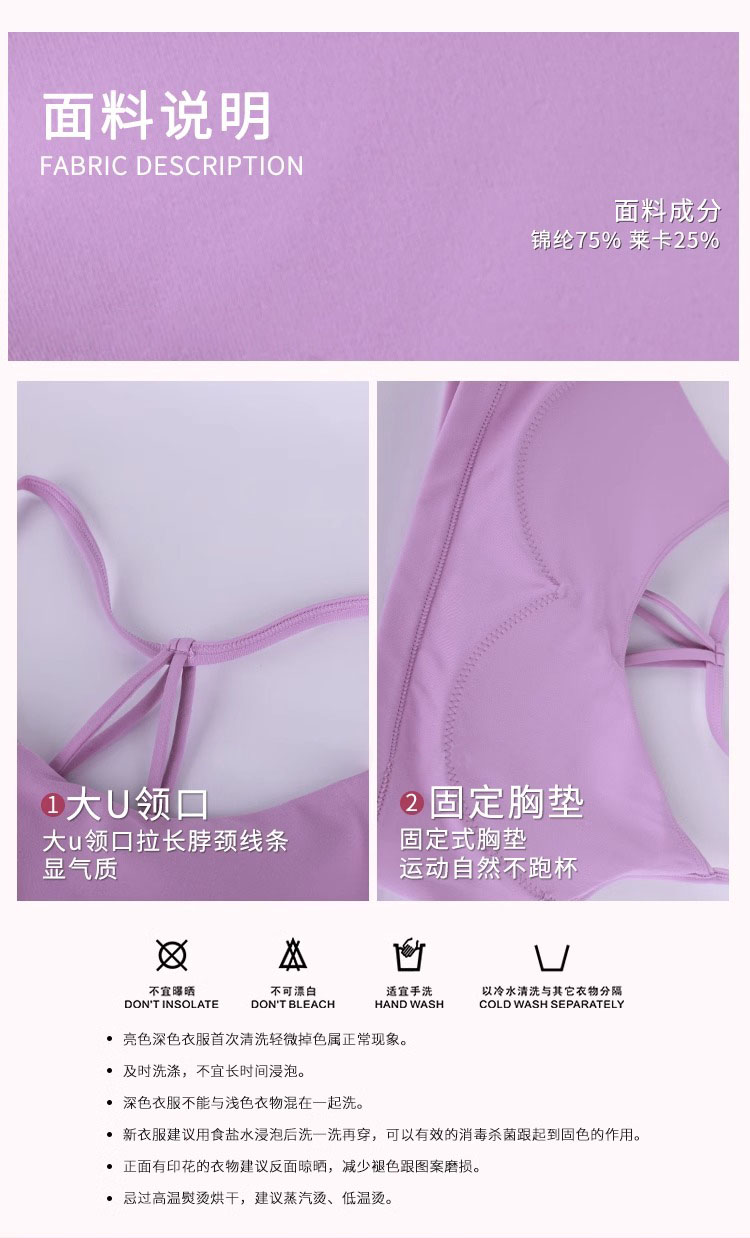 跃牌【周游世界系列】2025春夏新品细肩带固定杯运动内衣交叉美背瑜伽内衣女士BR1605