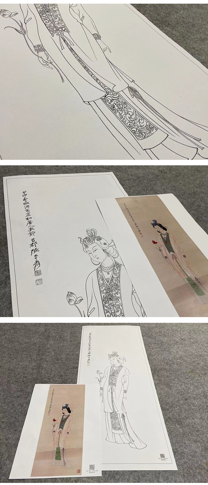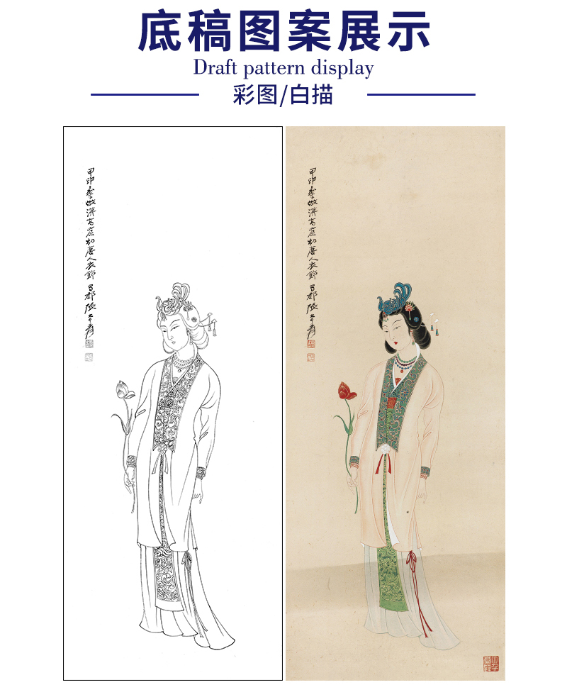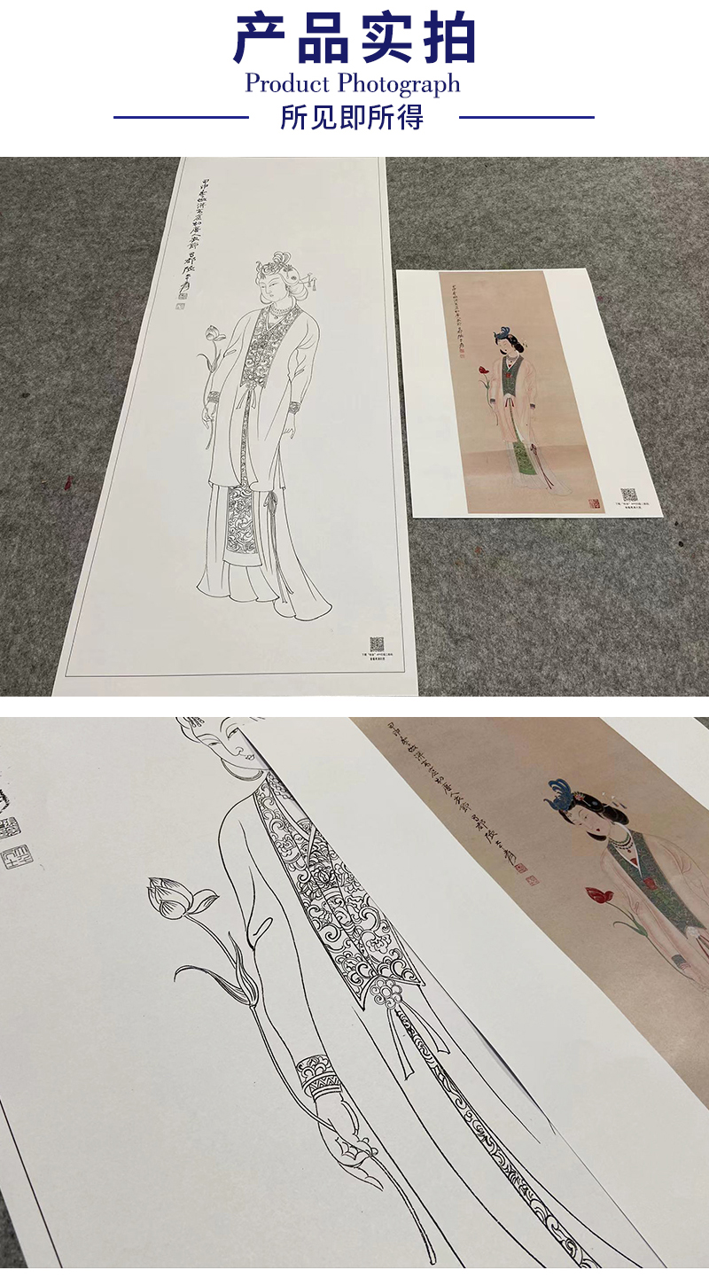 张大千竖幅工笔传统仕女人物白描底稿-仕女图-QD54