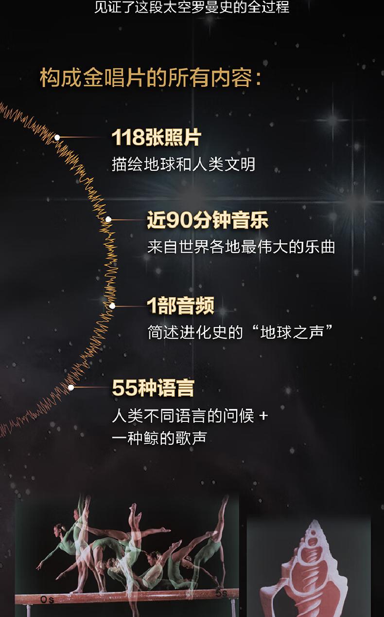 为完成这项浪漫的使命,萨根与各领域的专家在6个月内不断尝试,力求用少的介质承载尽可能多的珍贵信息。终,一张代表人类文明的金唱片诞生了:118张描绘地球和人类文明的照片、近90分钟来自世界各地伟大的音乐、一部简述进化史的音频——“地球之声”、55种人类不同语言的问候和一种鲸的歌声。