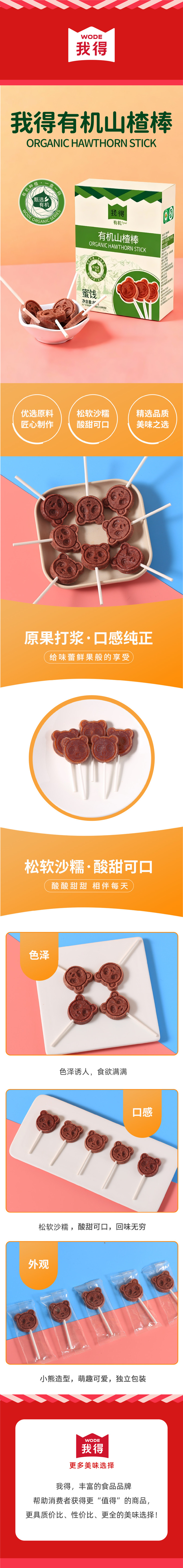 第2盒3折!80g我得有机山楂棒 松软沙糯 酸甜可口RUI