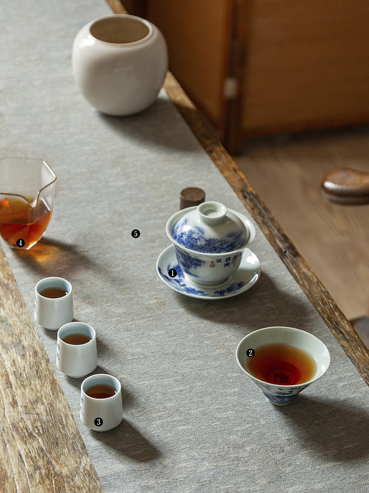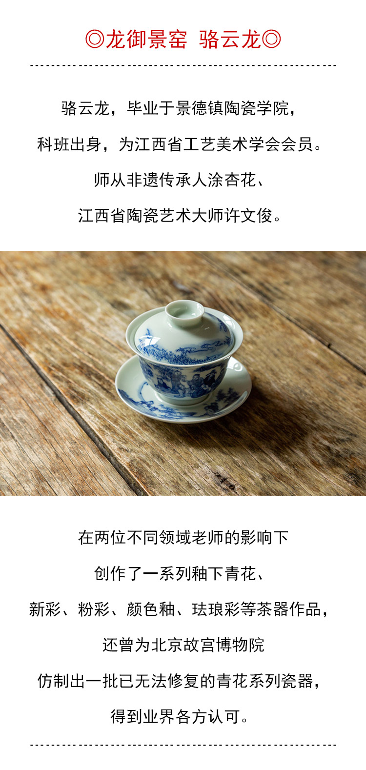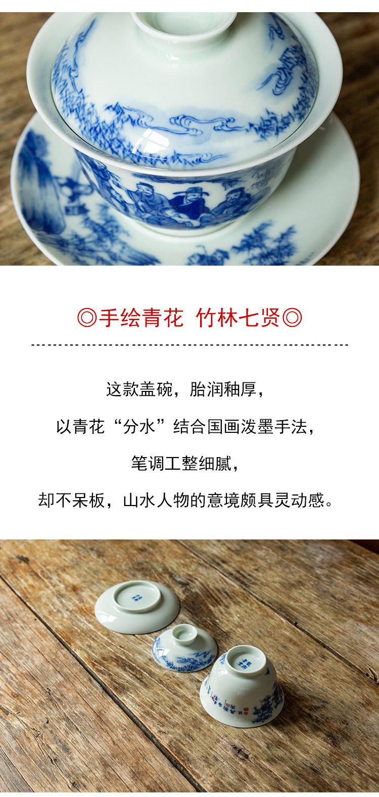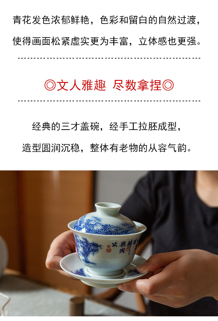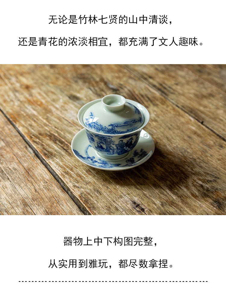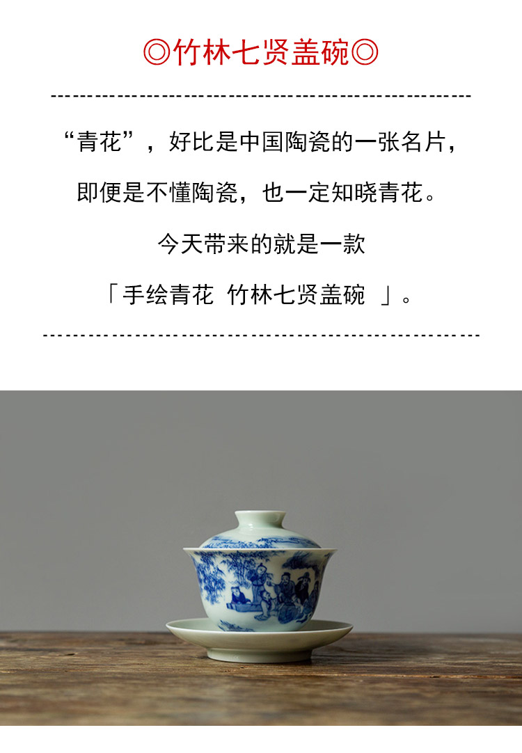 茶香记 手绘青花 竹林七贤盖碗 龙御景窑 骆云龙 三才盖碗