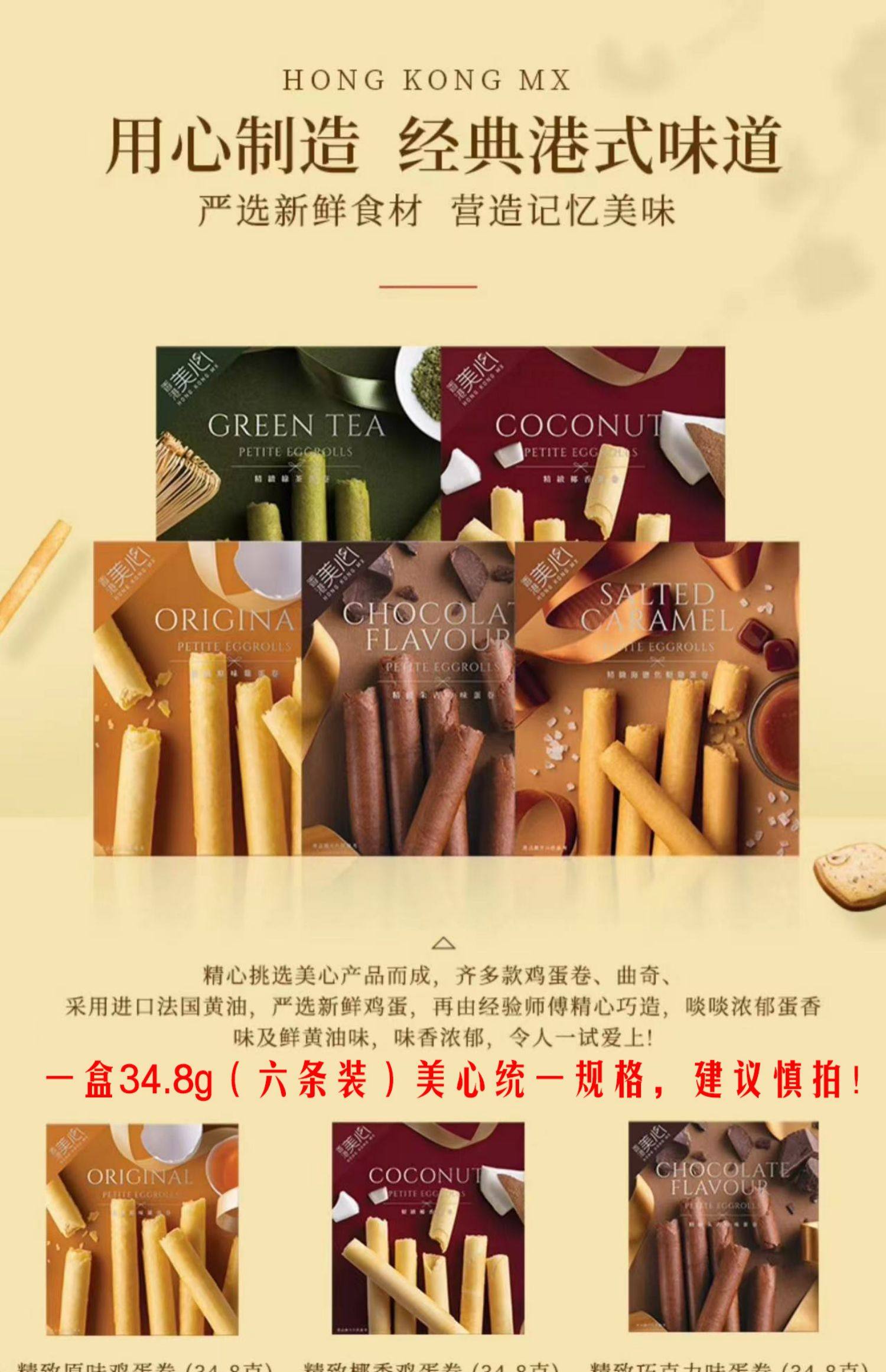 34.8g美心精致蛋卷 (6条装) 草莓/原味/椰香/巧克力/绿茶/海盐焦糖