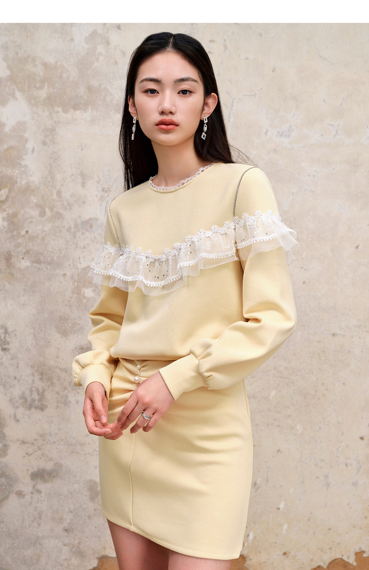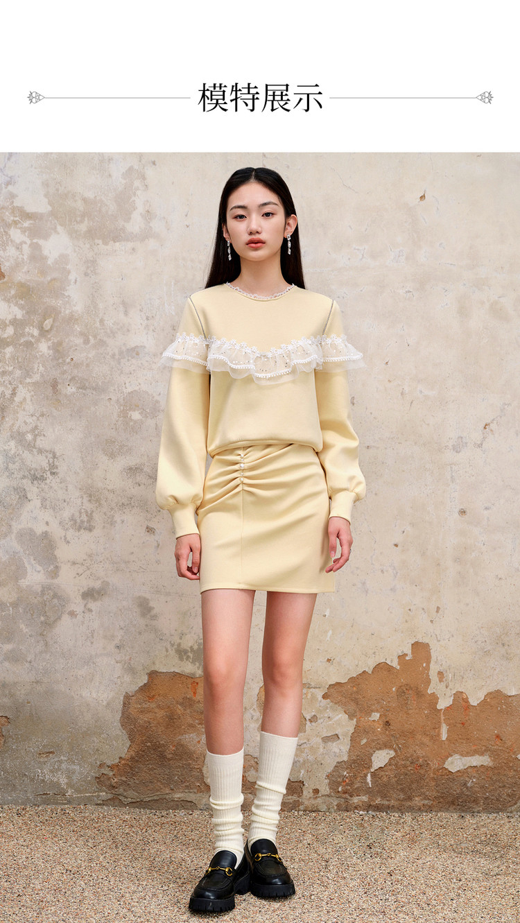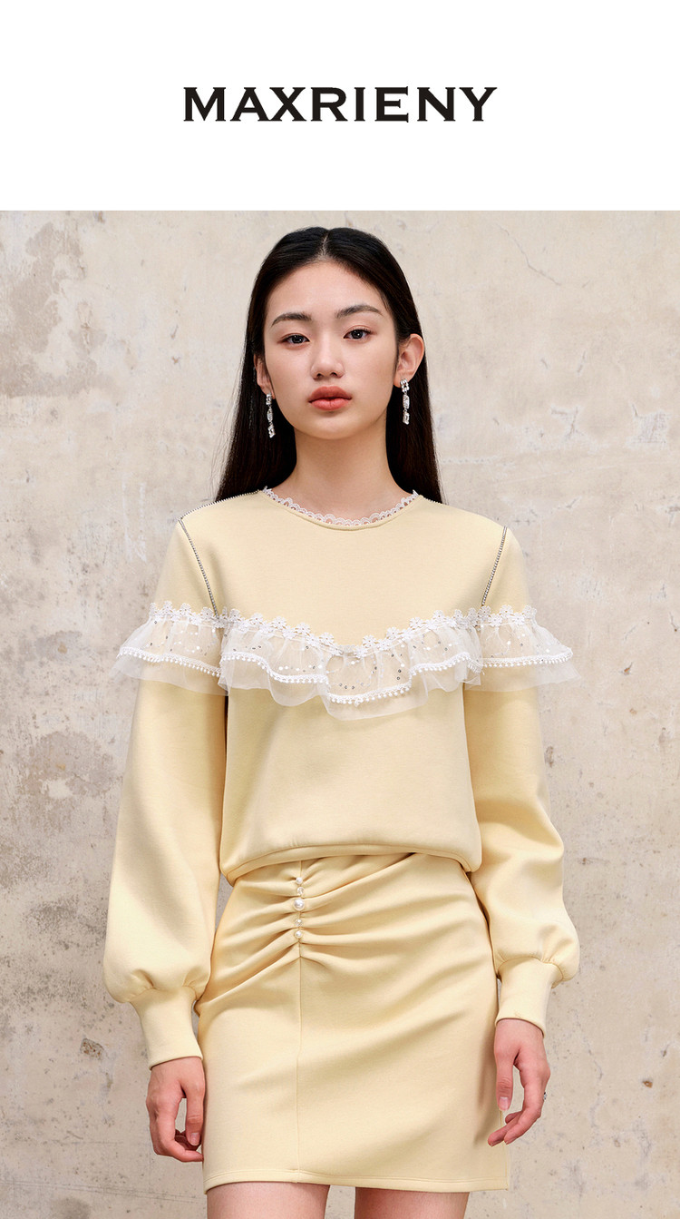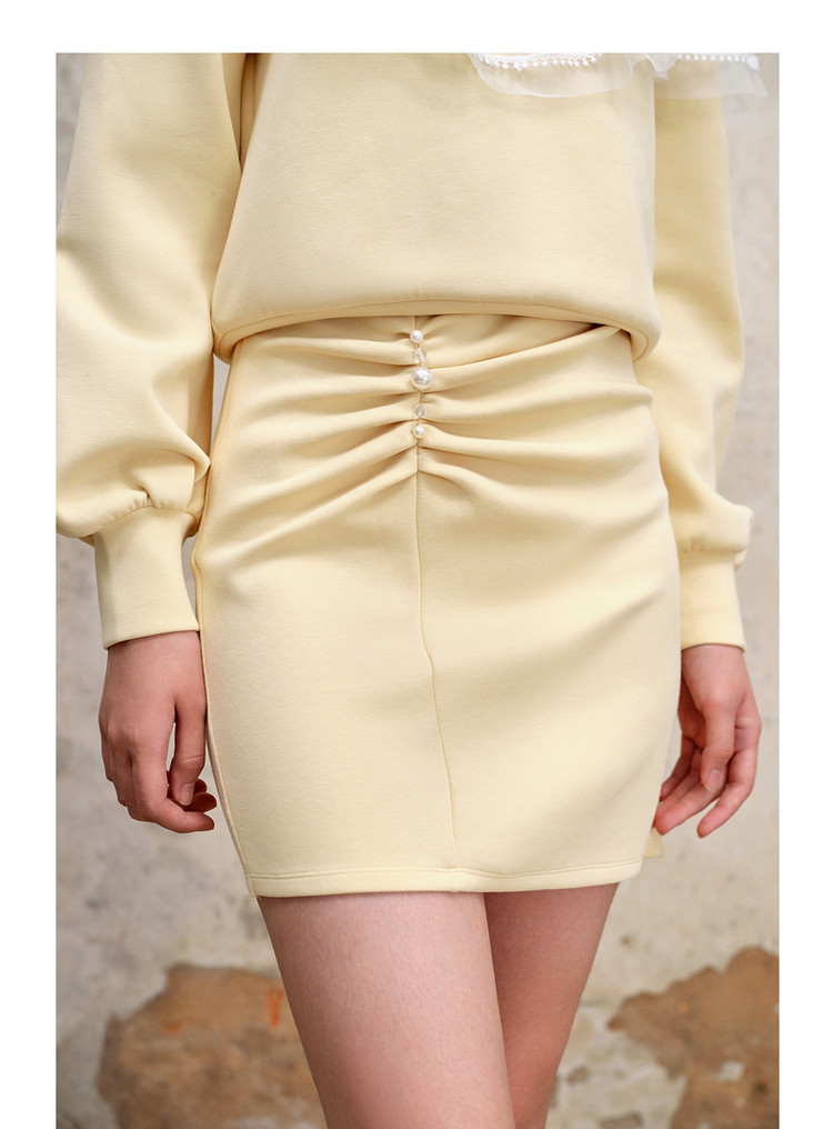 MAXRIENY珍珠抽褶浪漫半裙23早秋修腰显瘦针织卫衣短裙女MS88SK543Y10