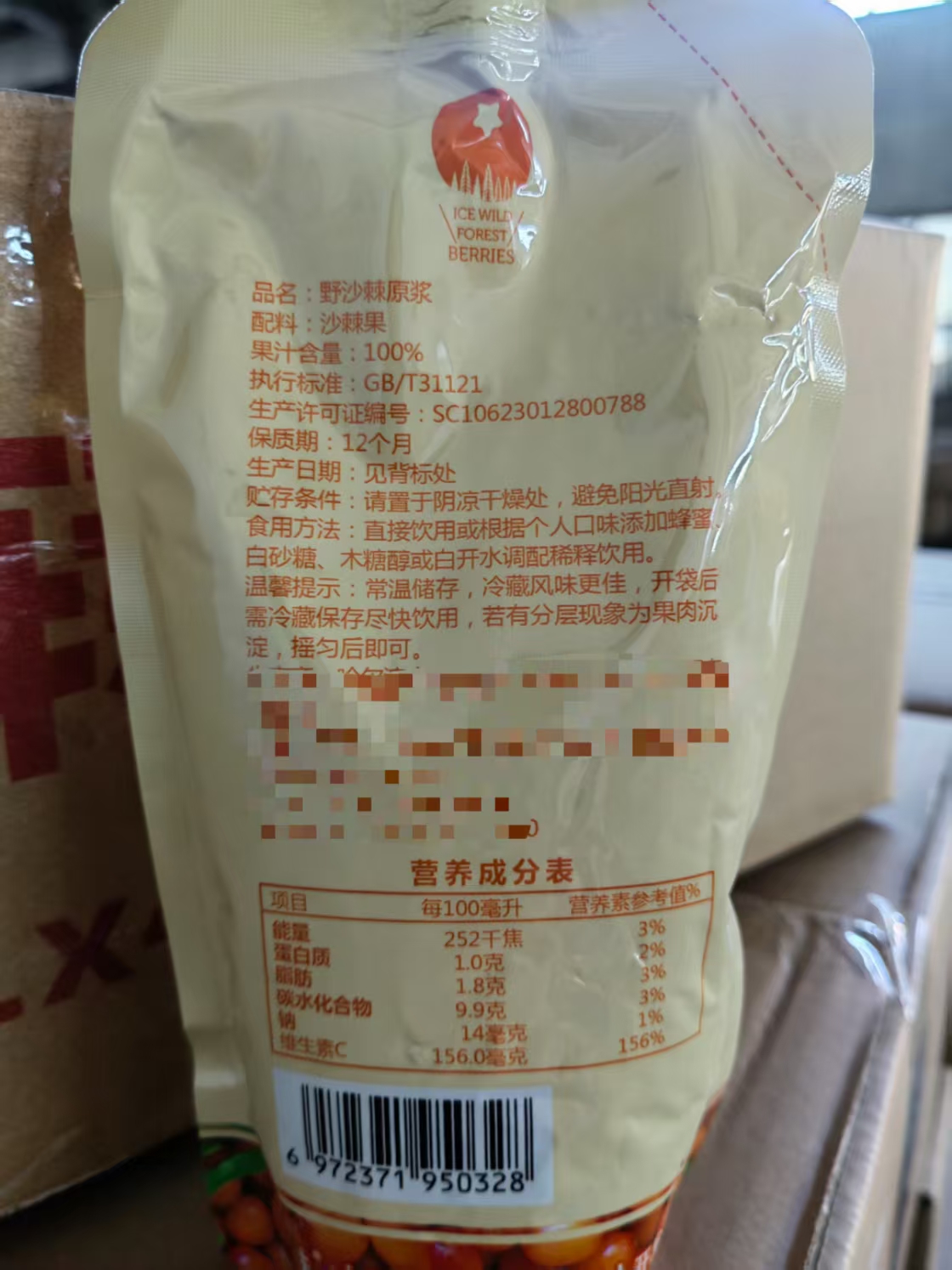 VC王者 血管“清道夫” | 沙棘原浆 原液生榨沙棘不加糖果汁冰野沙棘原浆饮品 300ml*6袋 整箱装