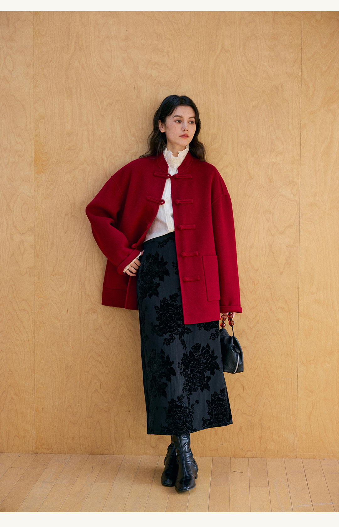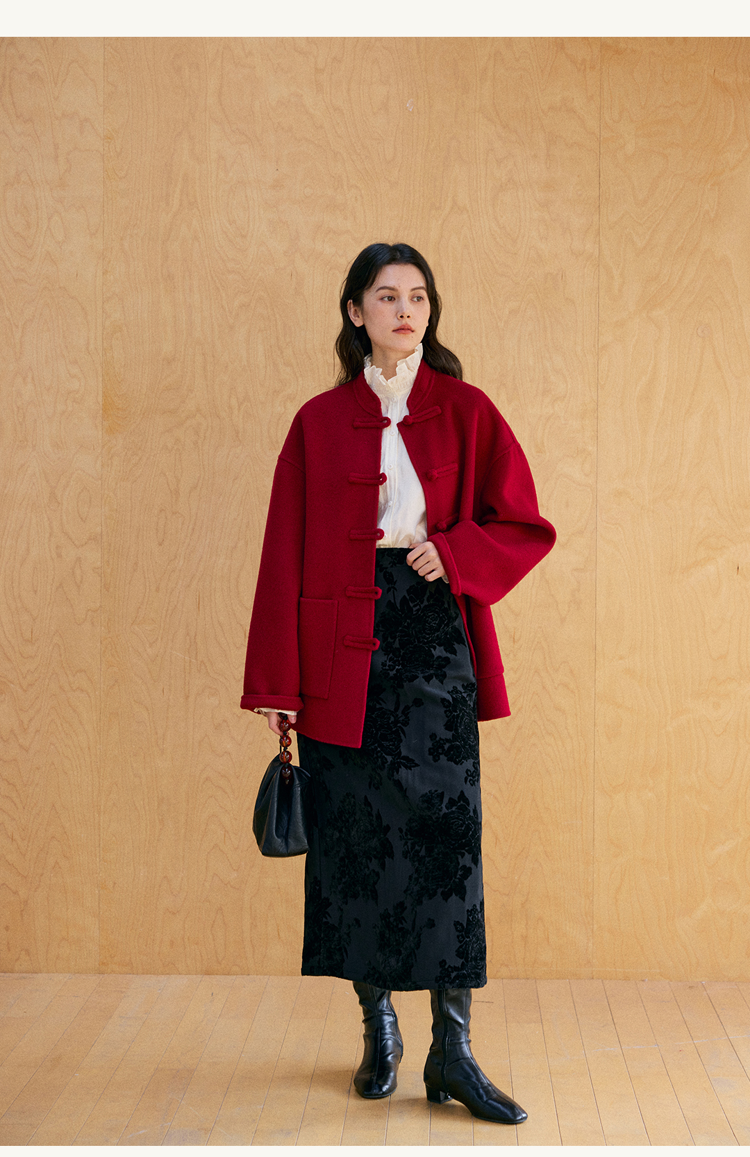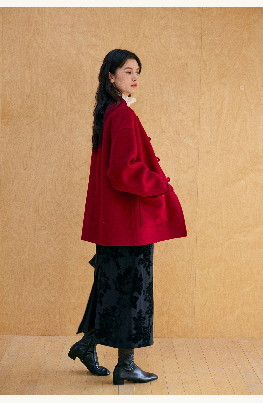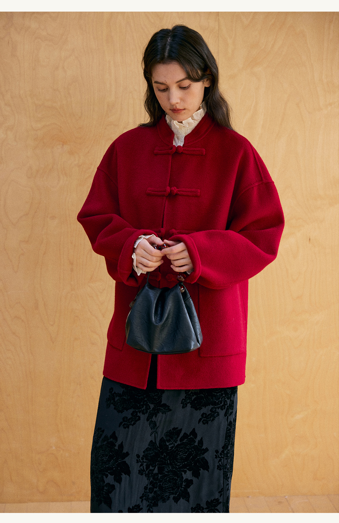 HeyDress新中式宽松立领毛呢外套