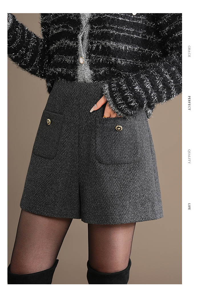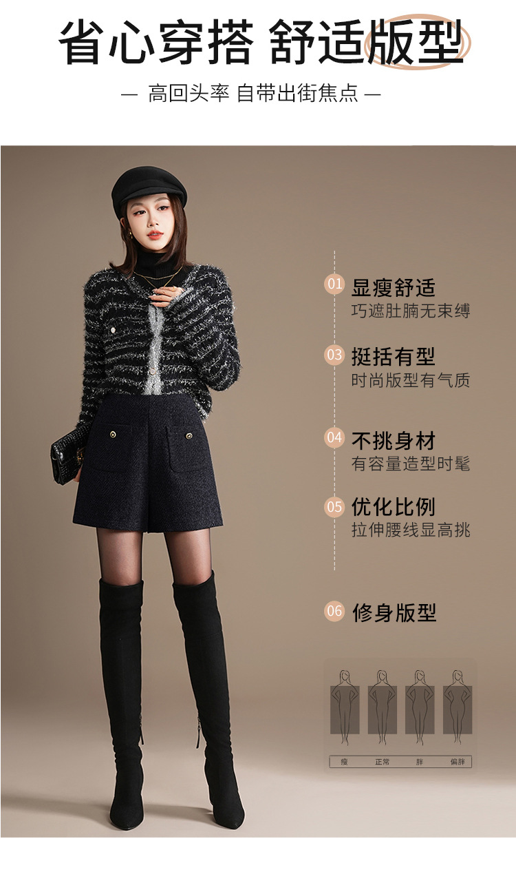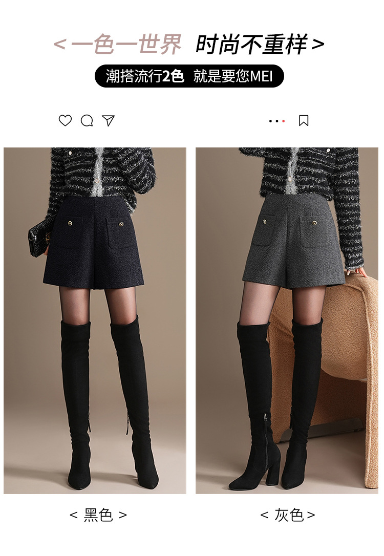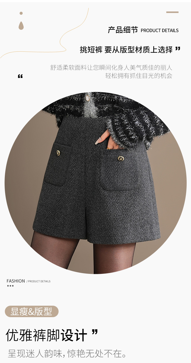 「自」全新升级【铂金会员146/天猫189/差价43】(10326)洛诗琳百搭通勤毛呢A字短裤2025秋冬高腰显瘦小香风阔腿裤