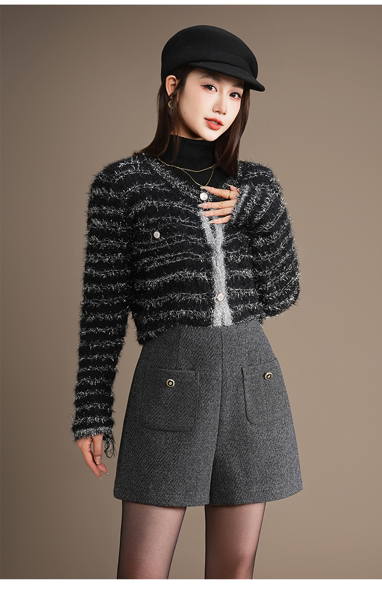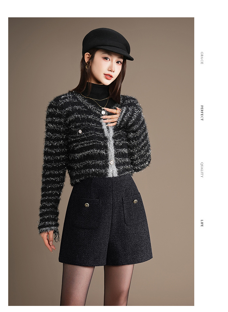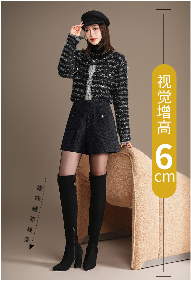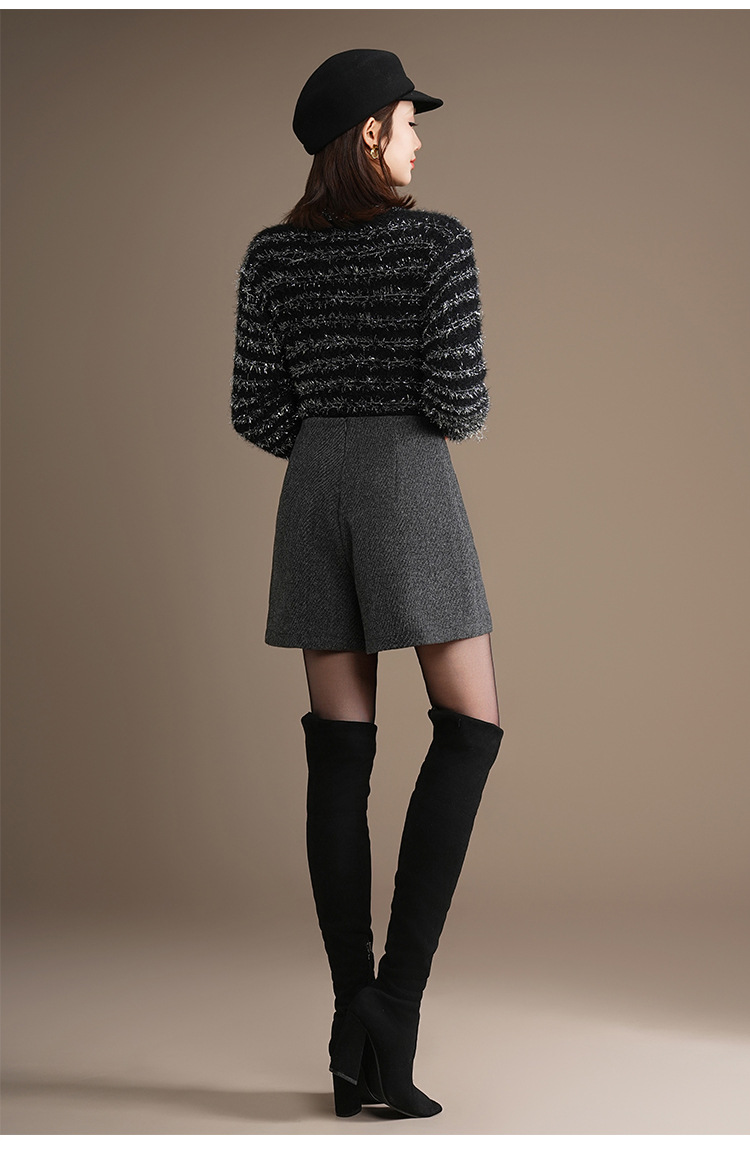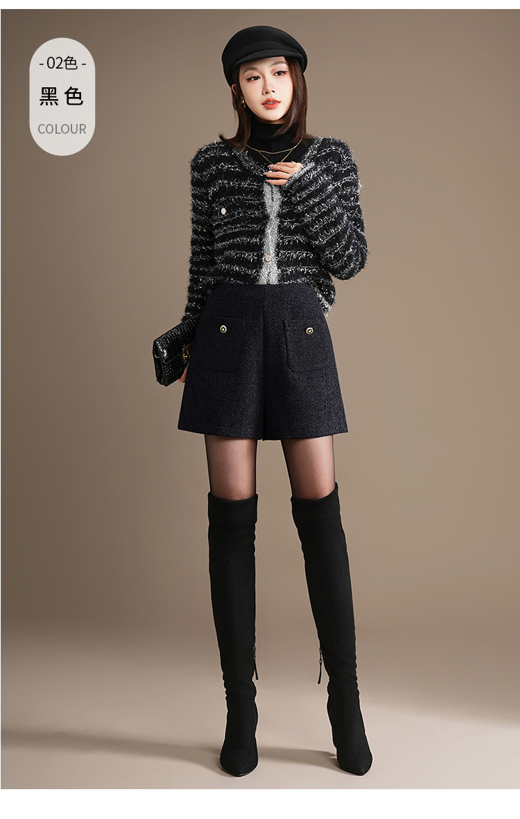 「自」全新升级【铂金会员146/天猫189/差价43】(10326)洛诗琳百搭通勤毛呢A字短裤2025秋冬高腰显瘦小香风阔腿裤