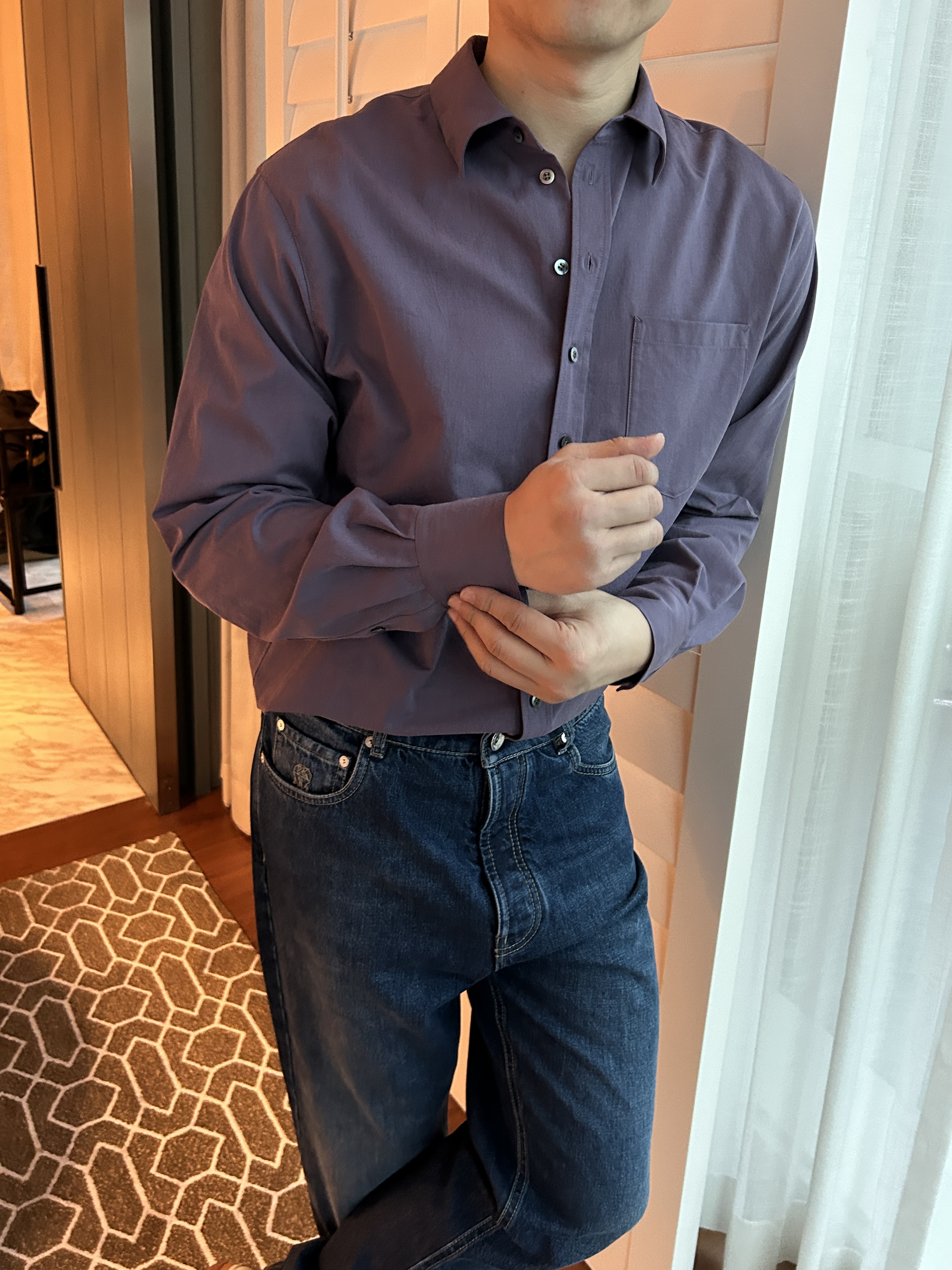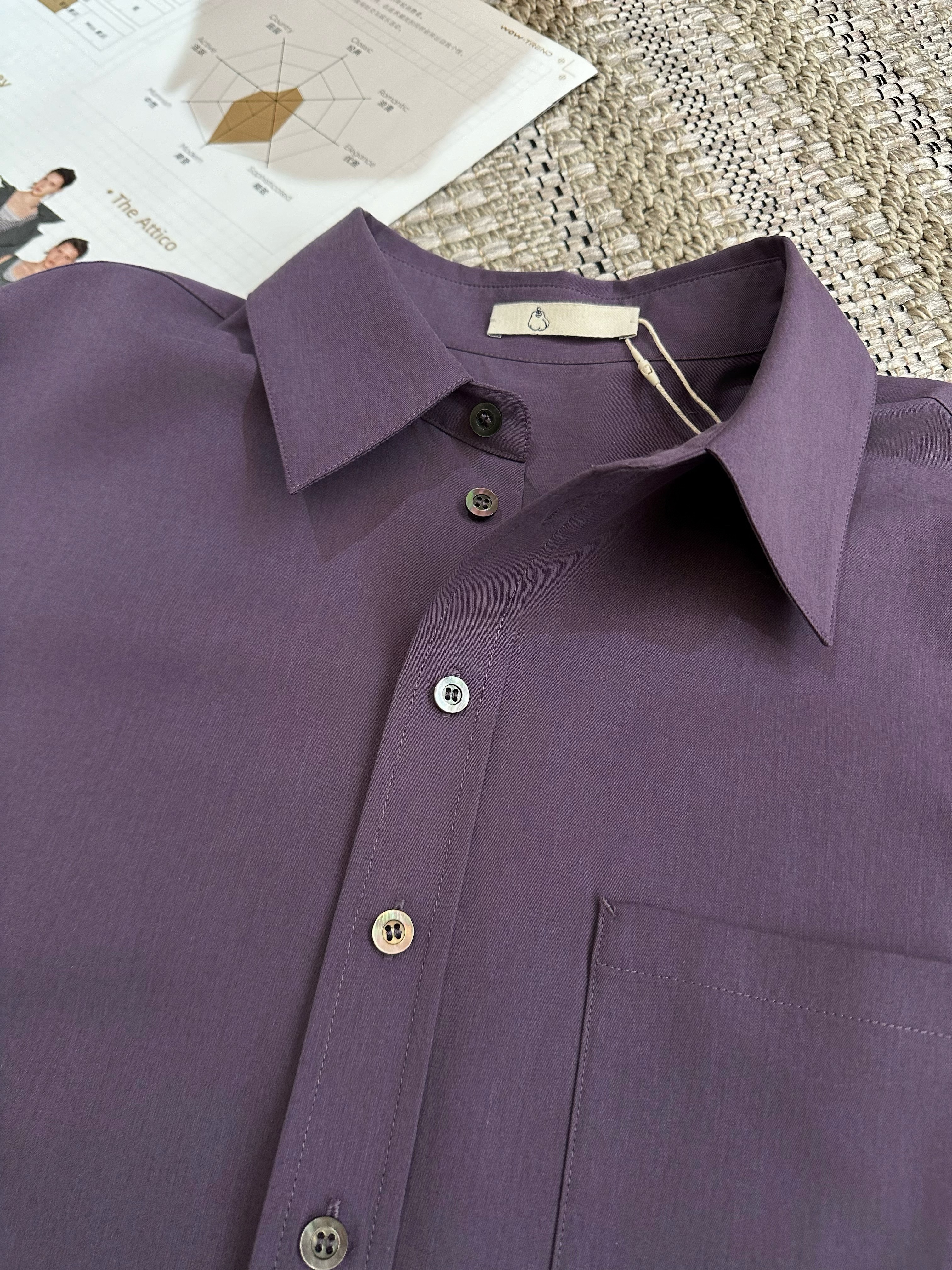 【顺丰包邮】05106【拉夫家同款】复古葡萄紫莱赛尔棉简约百搭男士衬衫 ,丝滑软糯不易皱,穿过的人都会爱上这个触感1015