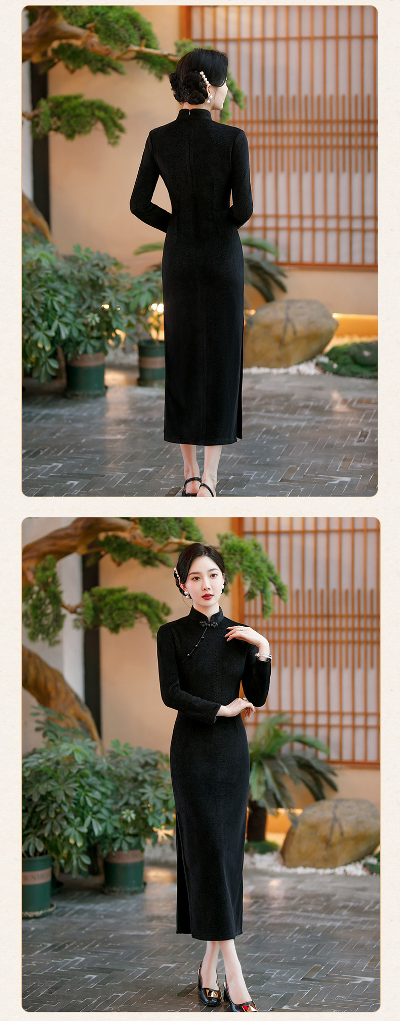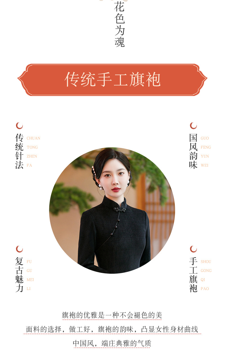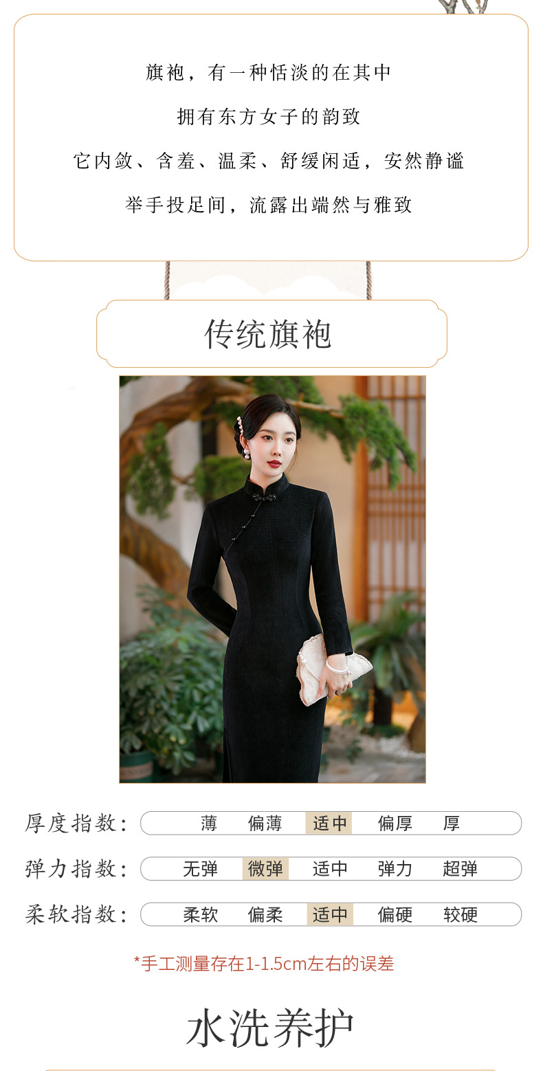 SYG-686长袖旗袍复古民国风改良年轻款少女日常针织连衣裙优雅中长款